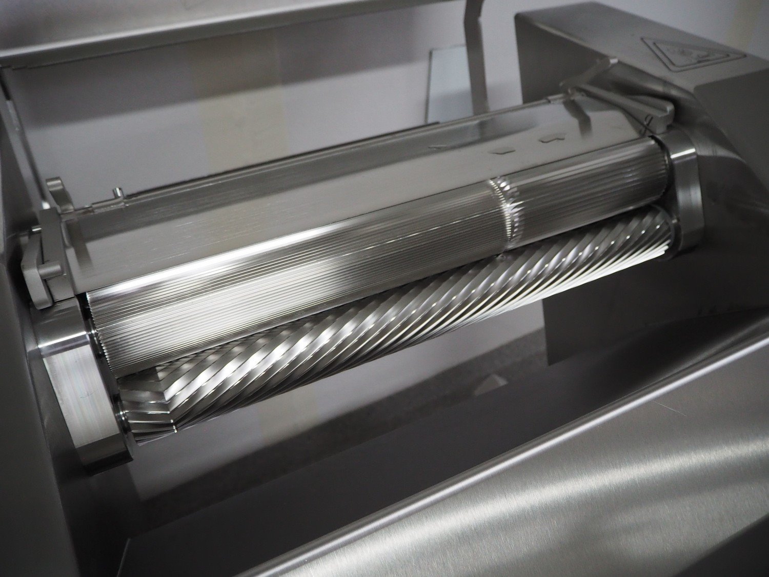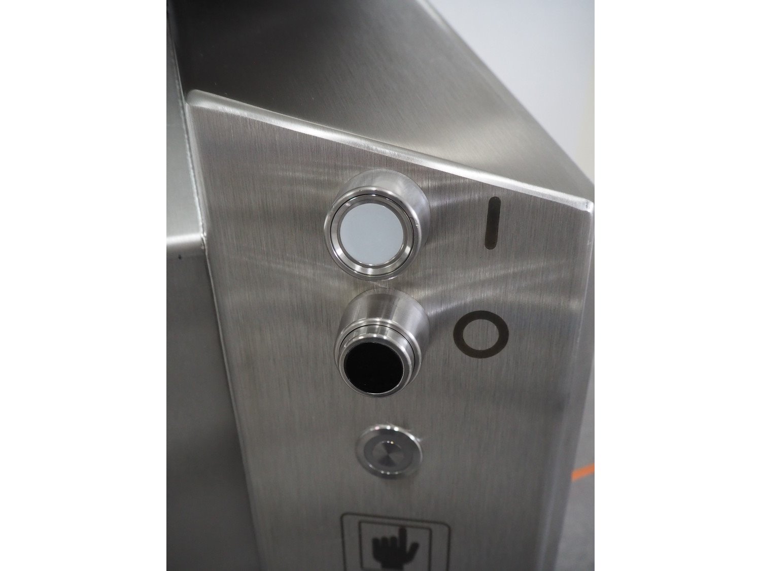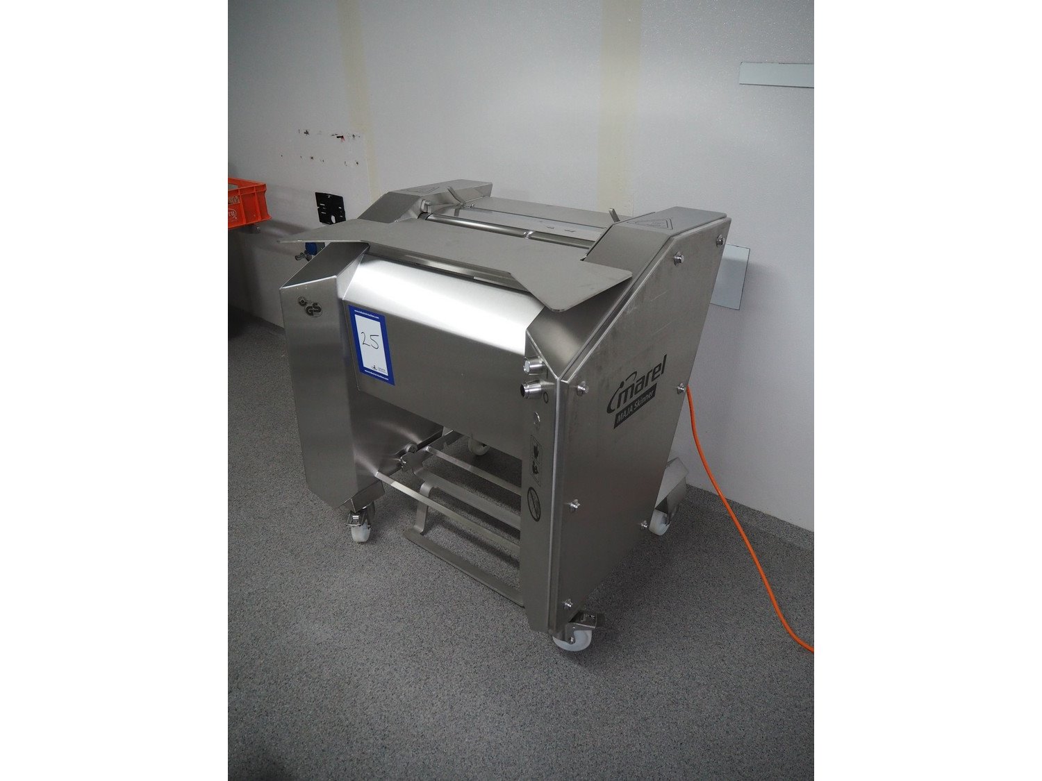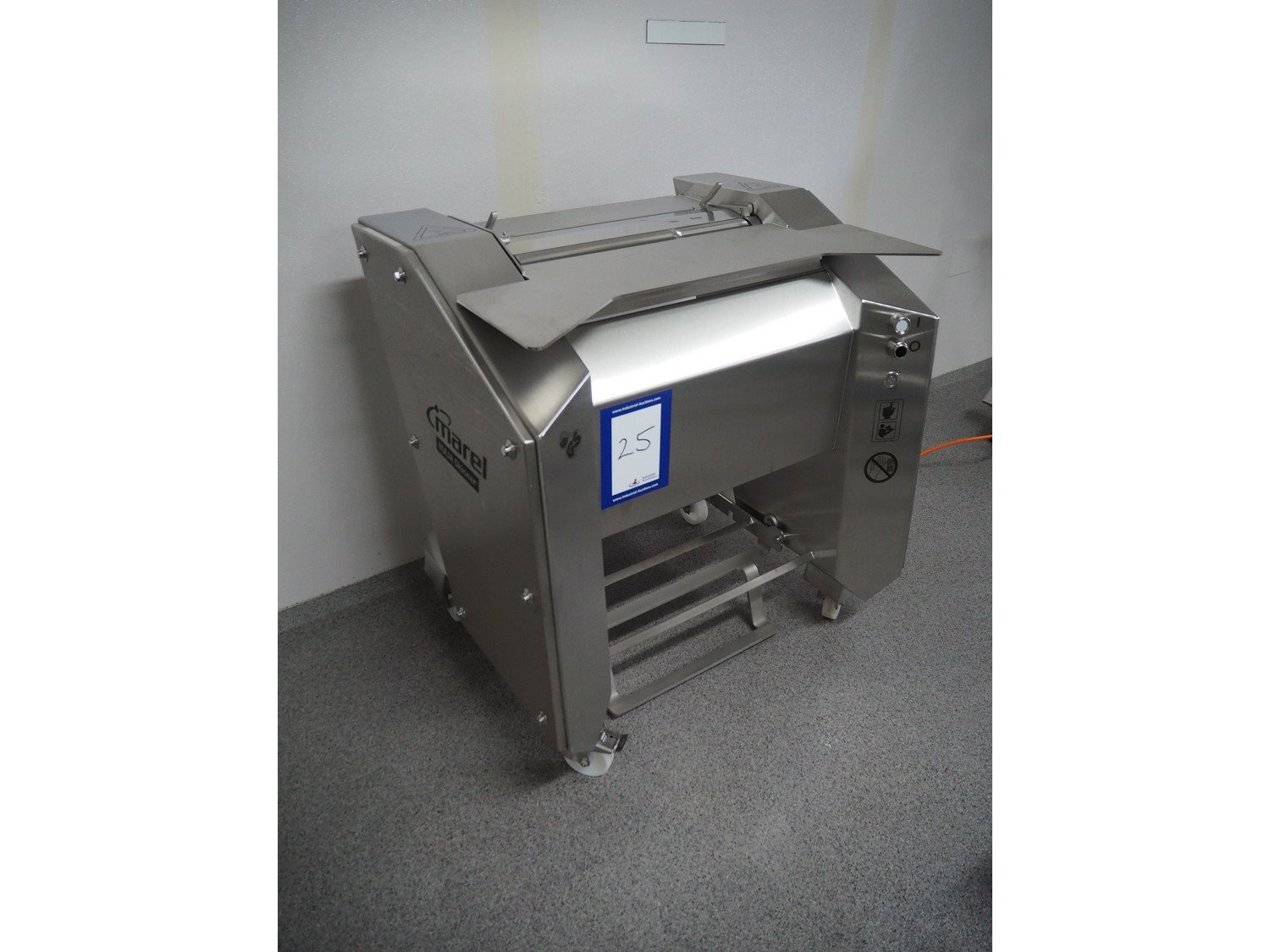Maja-Maschinenfabrik mobile skinning machine, type: EVMsplit 5006, serial number: M-58226, year of construction: 2025, 400 V, 3 Ph, 50 Hz, 2.24 A, 0.55 kW, 6 bar, 280 liter per minute, weight: 200 kg, working width: 540 mm, foot control, total dimensions: 1000 mm x 750 mm x 1050 mm.