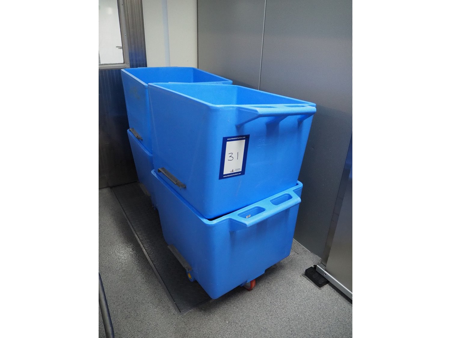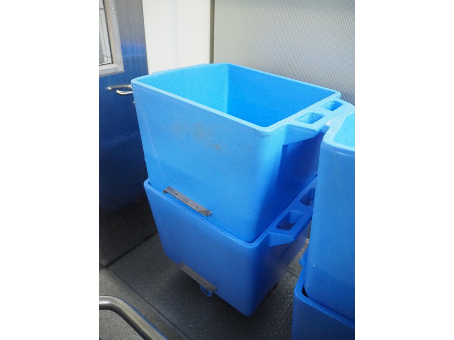 4 Rotogal plastic meat bins, volume: 200 liter, dimensions: (4x) 760 mm x 800 mm x 680 mm.