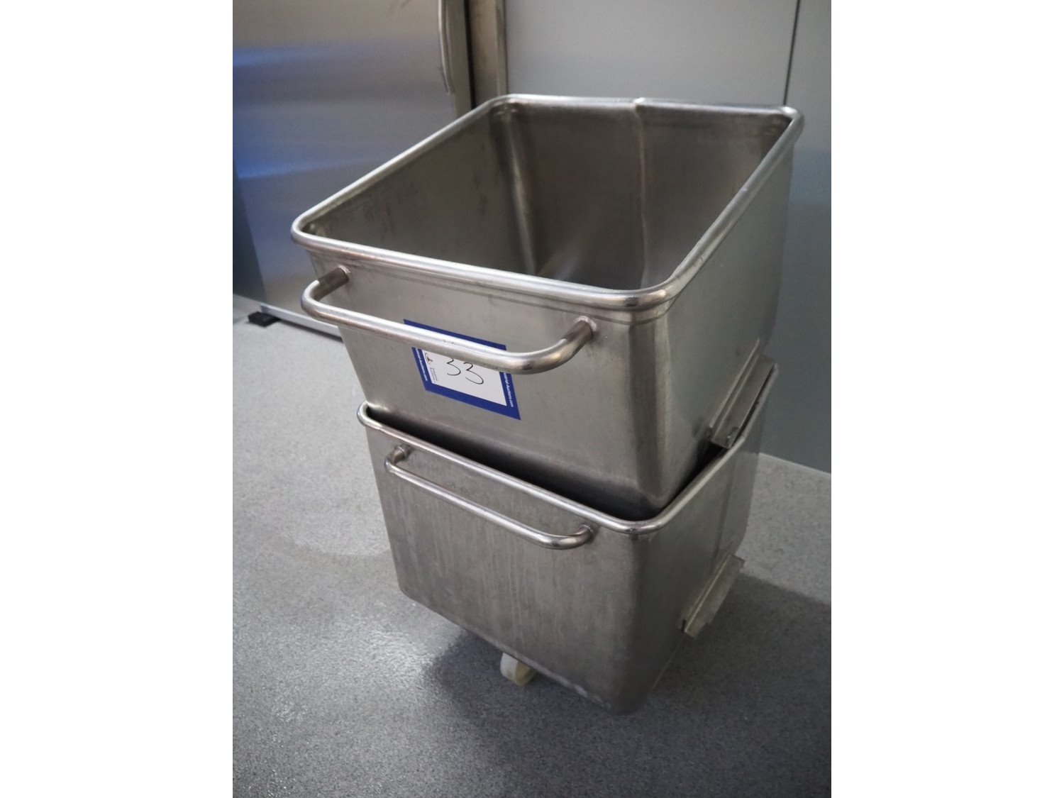 2 s/s meat bins, volume: 200 liter, dimensions: (2x) 760 mm x 760 mm x 700 mm.