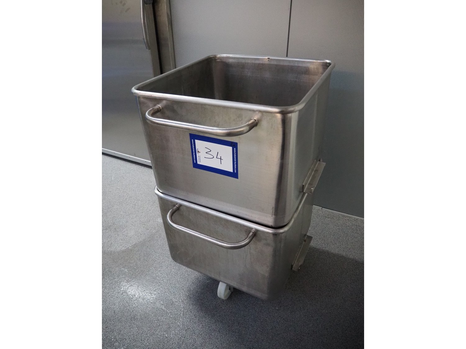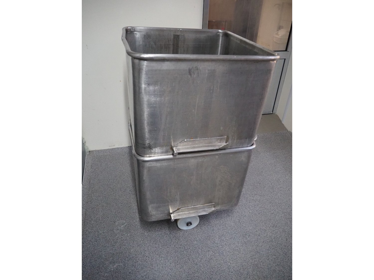 2 s/s meat bins, volume: 200 liter, dimensions: (2x) 760 mm x 760 mm x 700 mm.