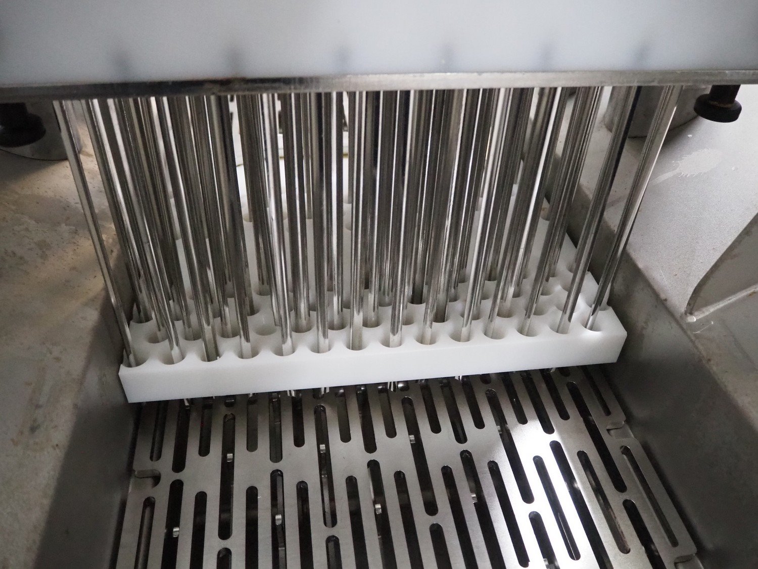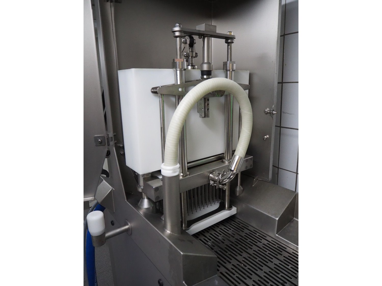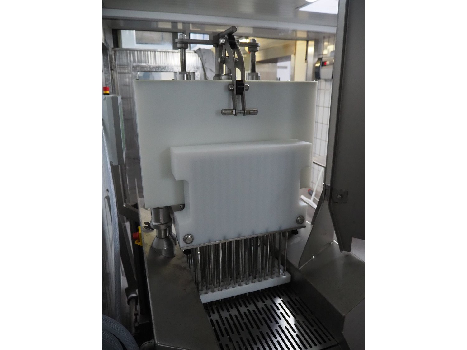 Rühle injector with tenderizer and lifter for E2 crates, model: IR 56, serial number: 30010727, year of construction: 2024, 400 V, 3 Ph, 50/60 Hz, 16 A, 8.7 kW, 56 needles, walking beam, beam width: 350 mm, total dimensions: 1900 mm x 1000 mm x 2050 mm.