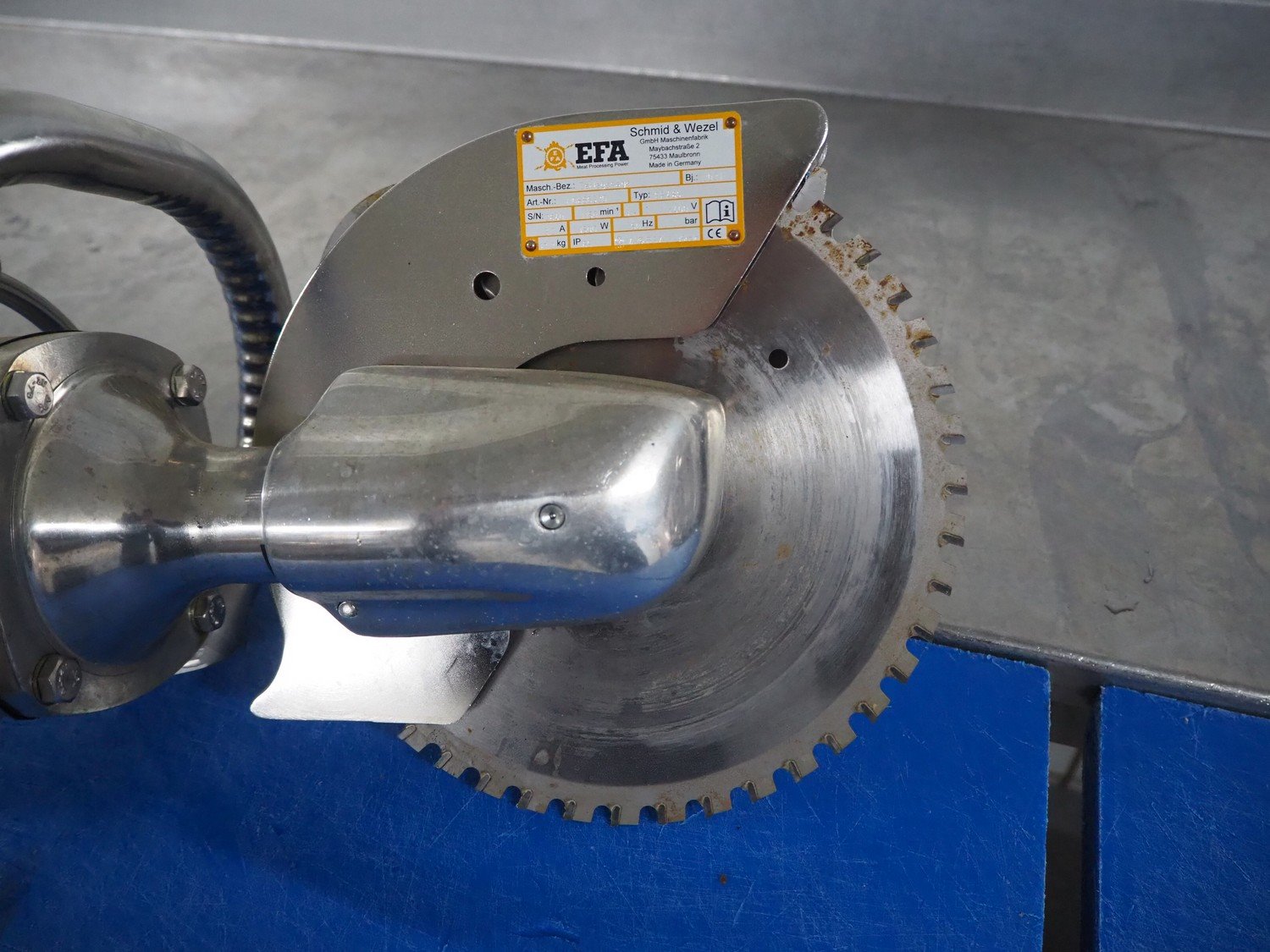 EFA breaking saw, machine type: Zerlegesäge, type: EFA 86, serial number: 2640, year of construction: 2021, 400 V, 3 Ph, 50 Hz, 1500 W, 1150 rates per minute, dimensions: 650 mm x 250 mm x 250 mm.