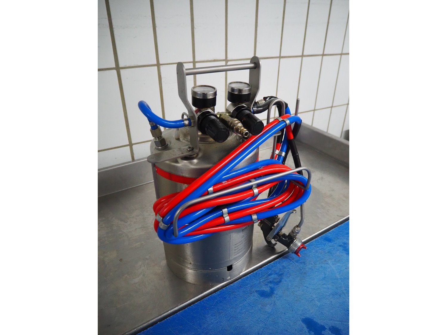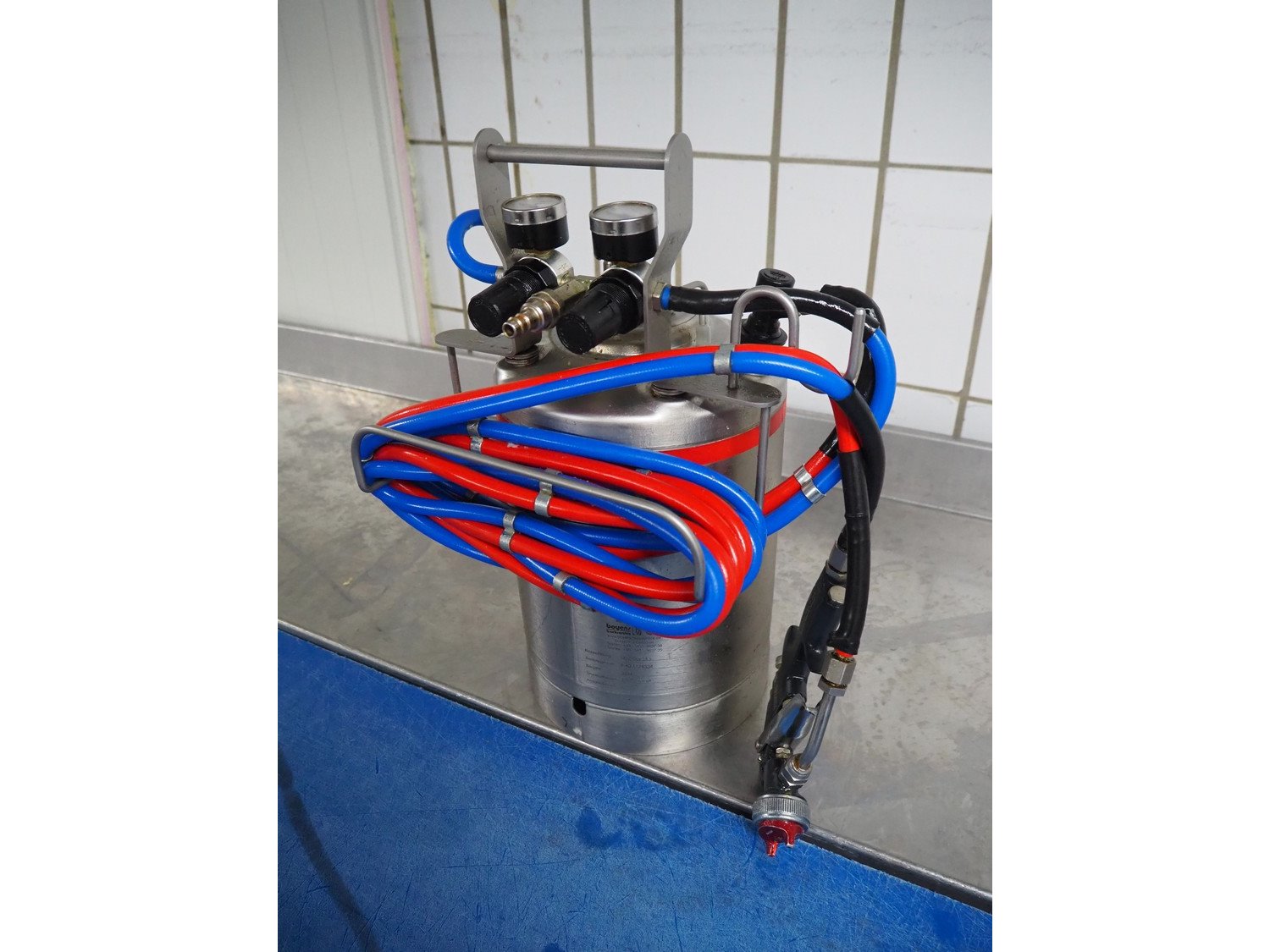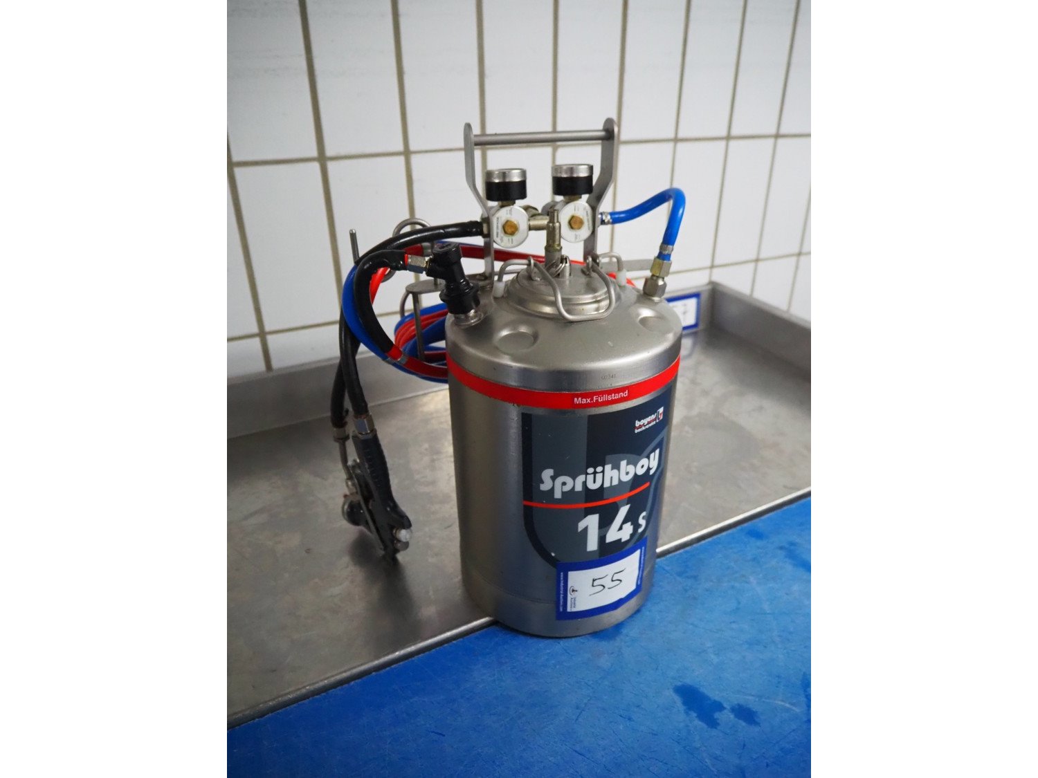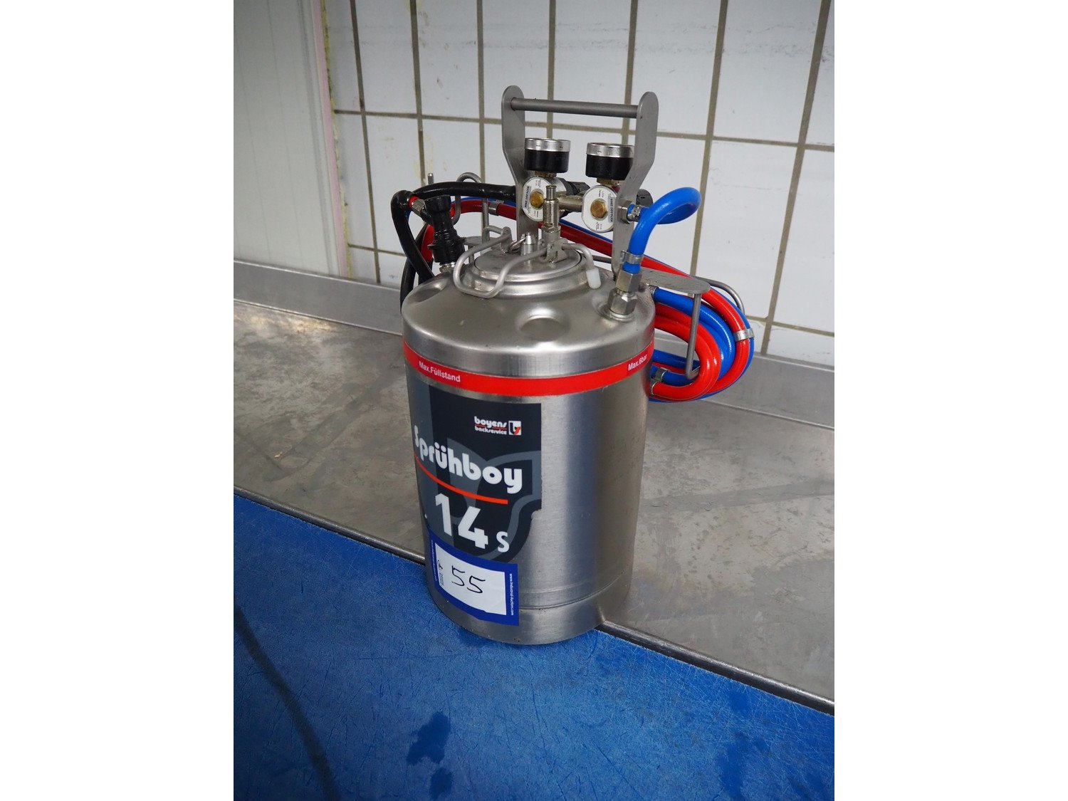 Boyens Backservice spraying unit for spraying release agents or emulsions, model: Sprühboy 14S, container serial number: 2401285, year of construction: 2024, capacity: 10 liter, dimensions: 350 mm x 300 mm x 500 mm.