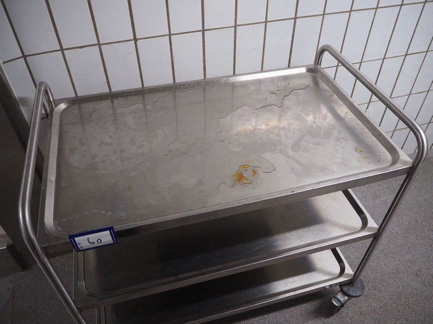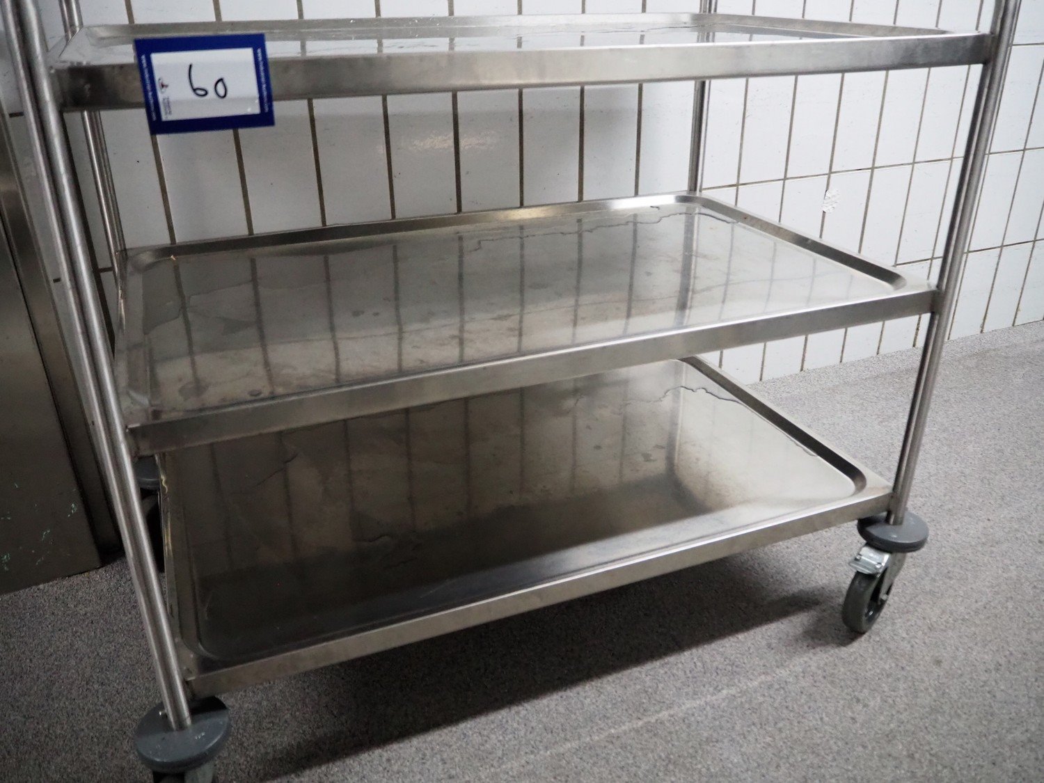 S/s trolley, 3 floors, dimensions: 1020 mm x 630 mm x 930 mm.