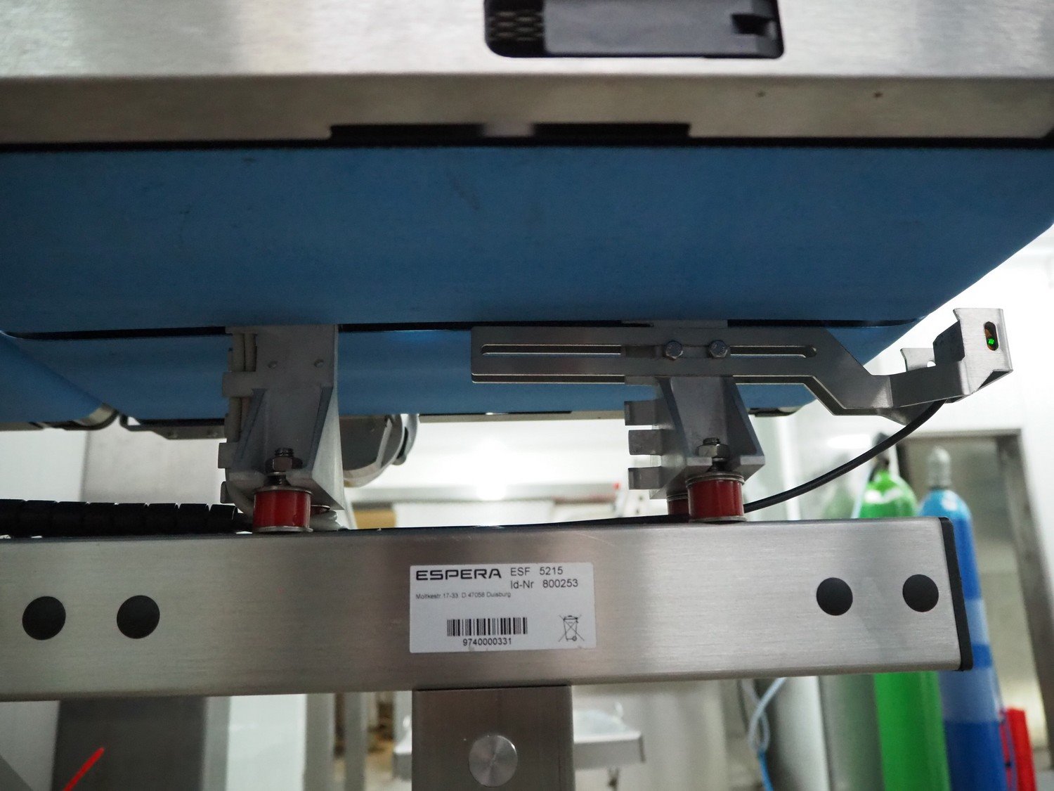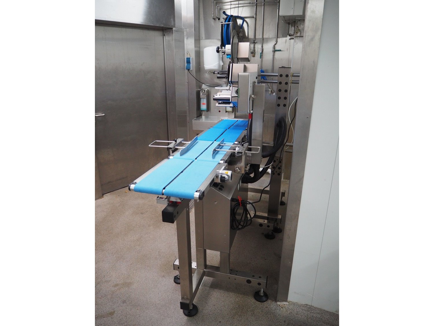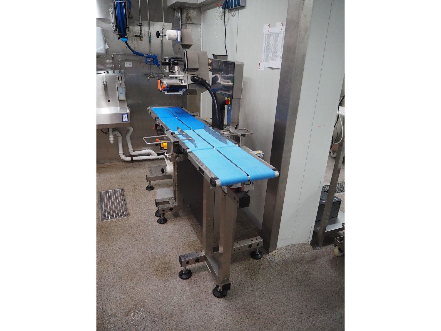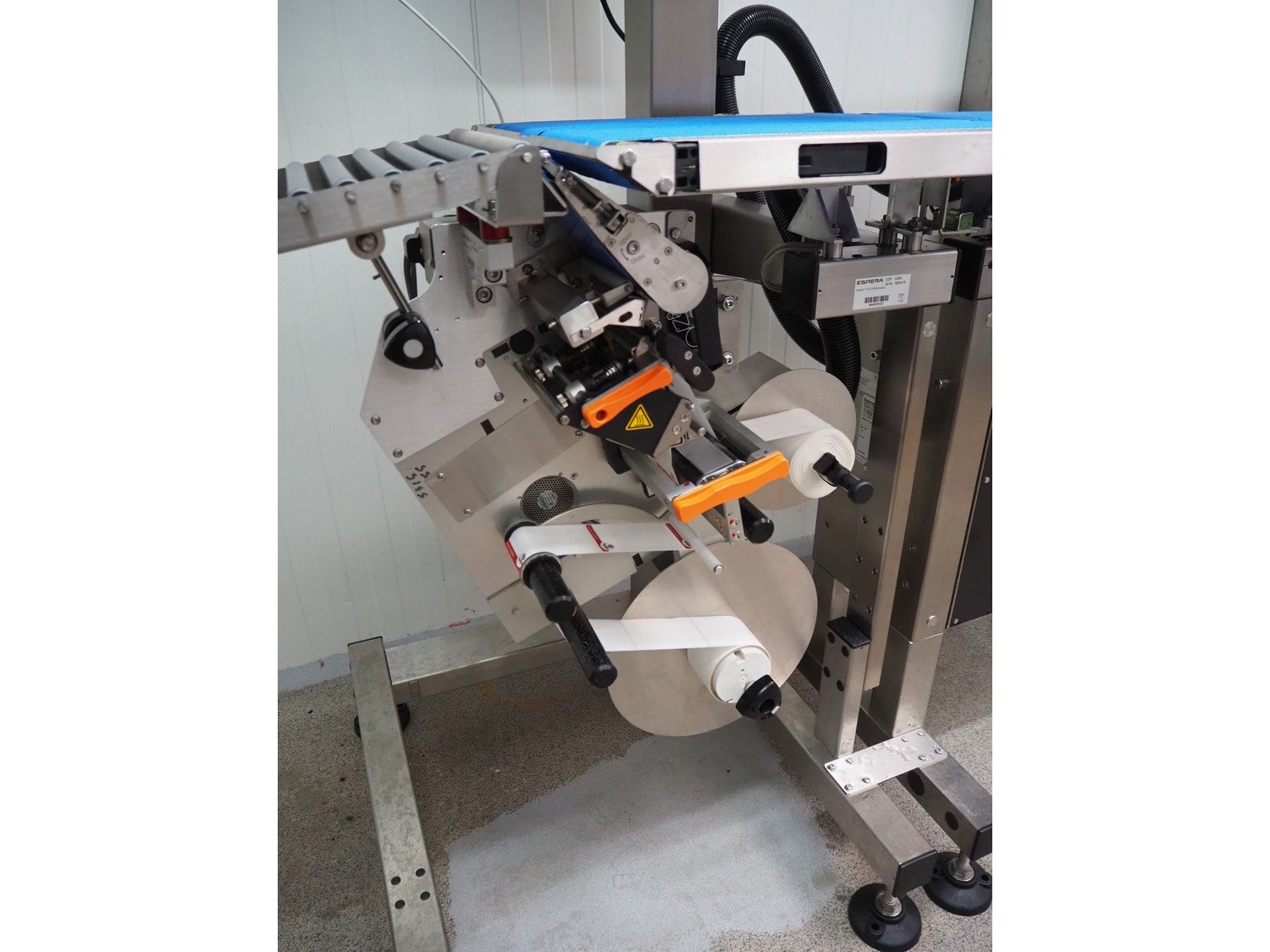 Espera weighing and labelling machine with bottom and top taper, model: ES-B, model checkweigher: ES-E 1000, year of construction: 2025, 110 - 240 V, 50 - 60 Hz, 10 A, maximum: 3 / 6 kg, e: 1/2 gram, plastic belt, belt width: (2x) 145 mm, total dimensions: 2100 mm x 900 mm x 1850 mm.
