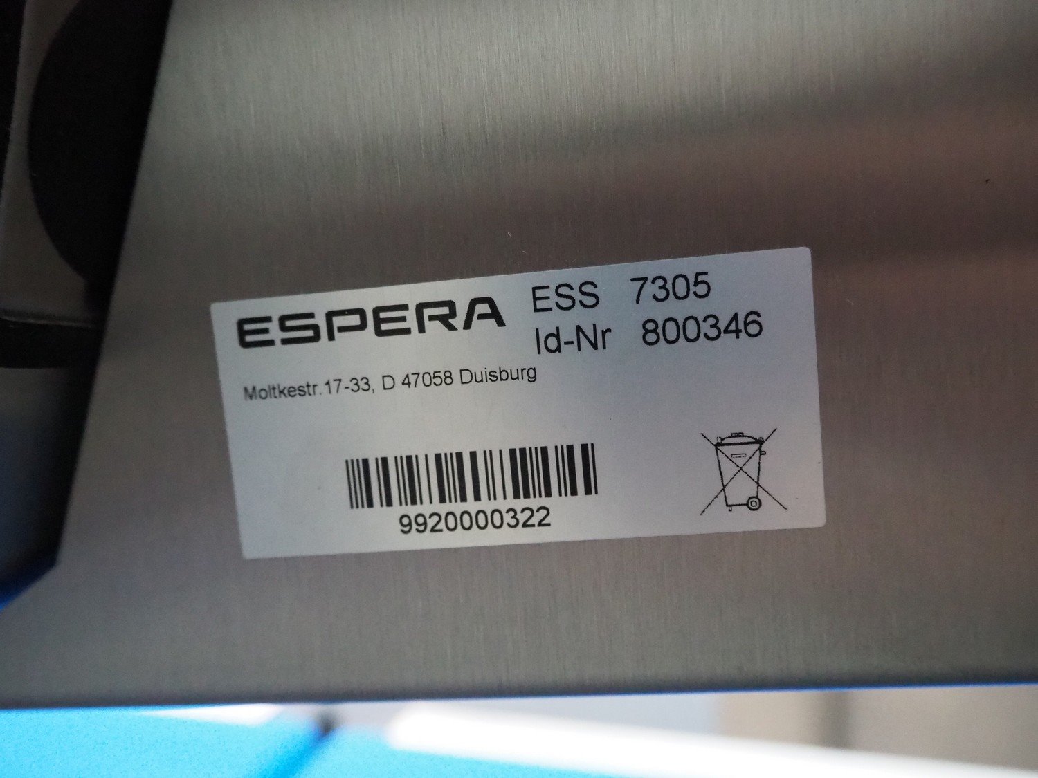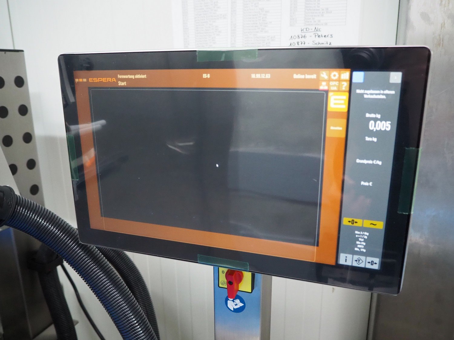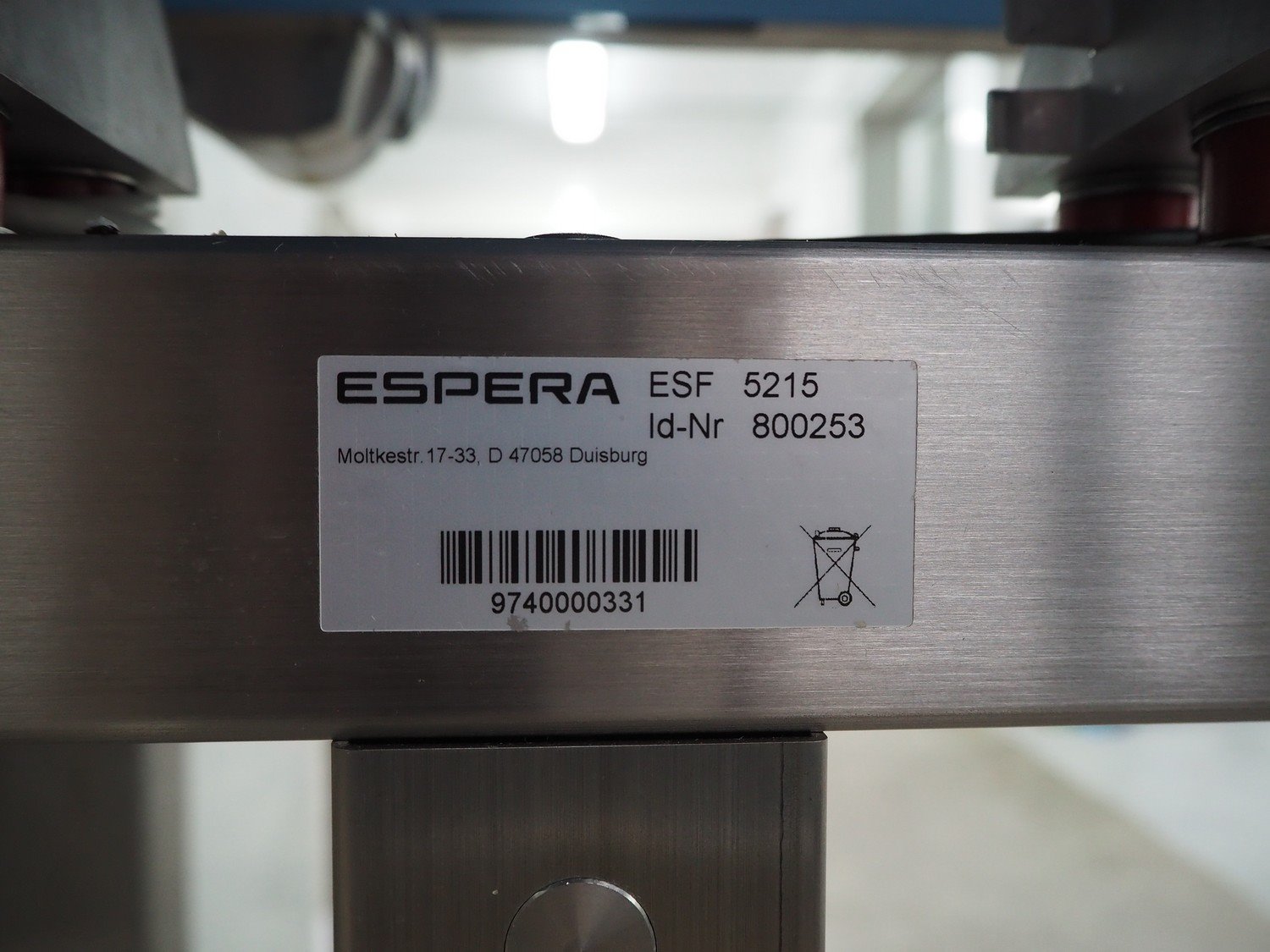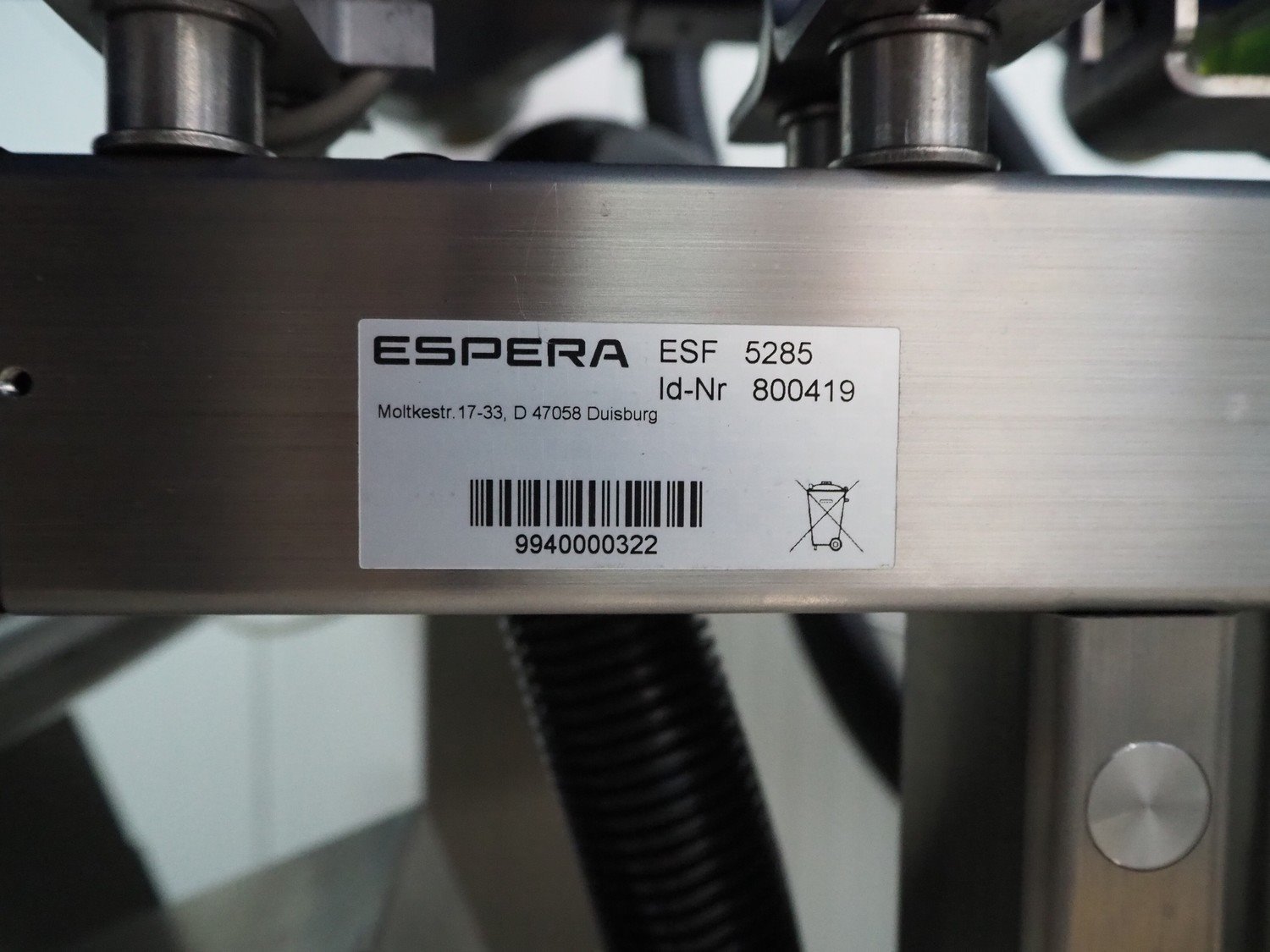 Espera weighing and labelling machine with bottom and top taper, model: ES-B, model checkweigher: ES-E 1000, year of construction: 2025, 110 - 240 V, 50 - 60 Hz, 10 A, maximum: 3 / 6 kg, e: 1/2 gram, plastic belt, belt width: (2x) 145 mm, total dimensions: 2100 mm x 900 mm x 1850 mm.
