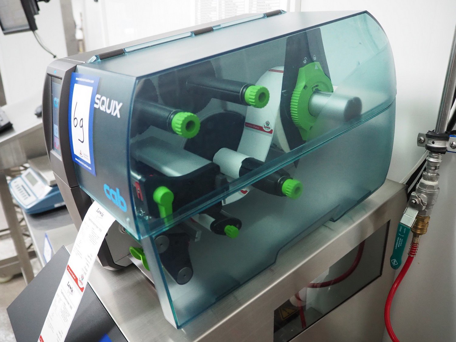 CAB label printer, model: SQUIX 4/300P, serial number: 0130123, 100-240 V, 50-60 Hz, 2 A, dimensions: 250 mm x 380 mm x 300 mm.
