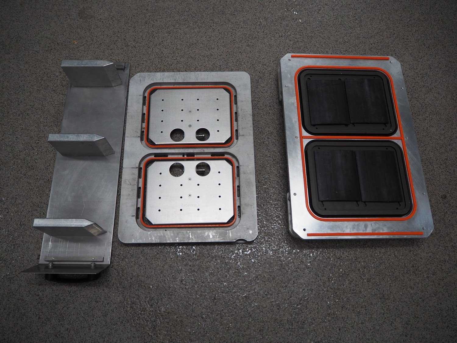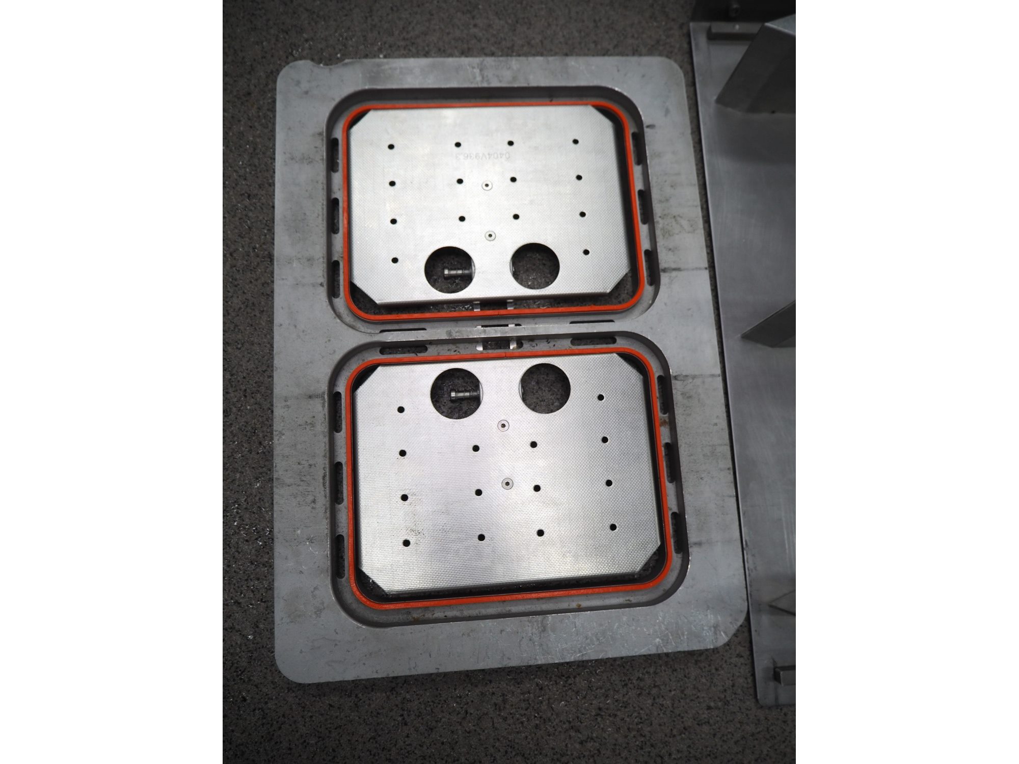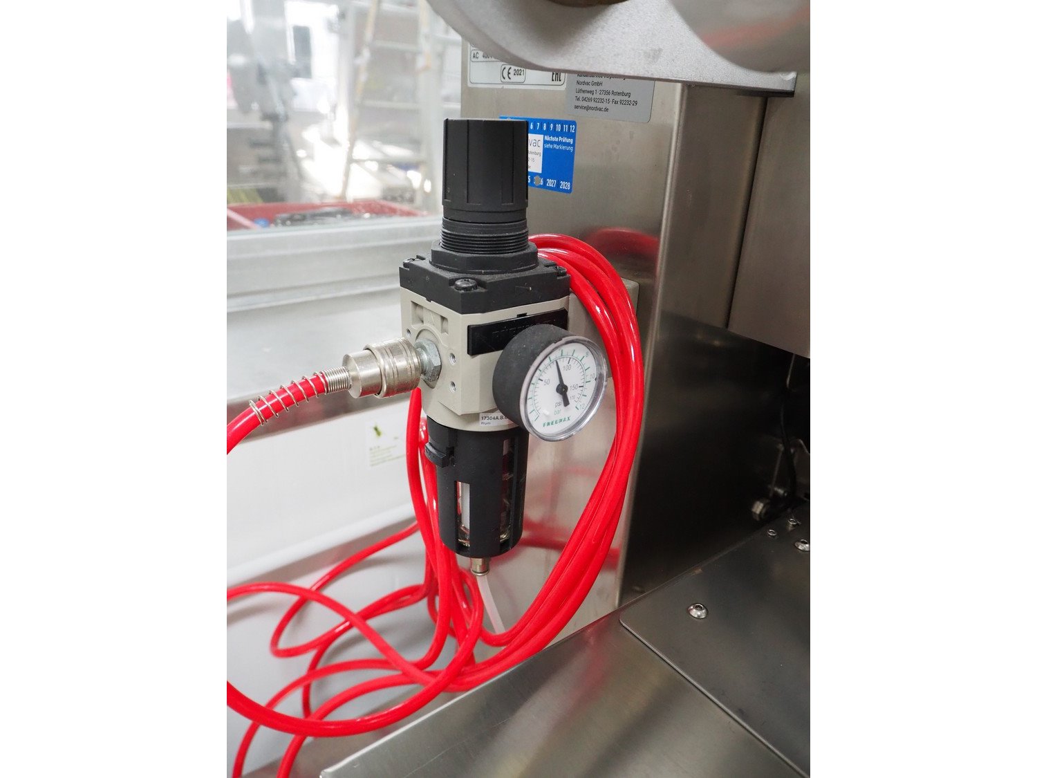 BS Verpackung GmbH/ Boss mobile traysealer, model: BS 47, serial number: 00093-1410V193.11B, year of construction: 2021, 400 V, 3 Ph, 50 Hz, 3.9 kW, film width: 470 mm, dye: (2x) 170 mm x 120 mm, outfeed roller conveyor, roll width: 590 mm, vacuum and gasflush, total dimensions: 2500 mm x 1000 mm x 1800 mm. Including additional dye. Traysealer for tray dimensions 187 mm x 137 mm and 178 mm x 227 mm. Complete overhauled in 2024.