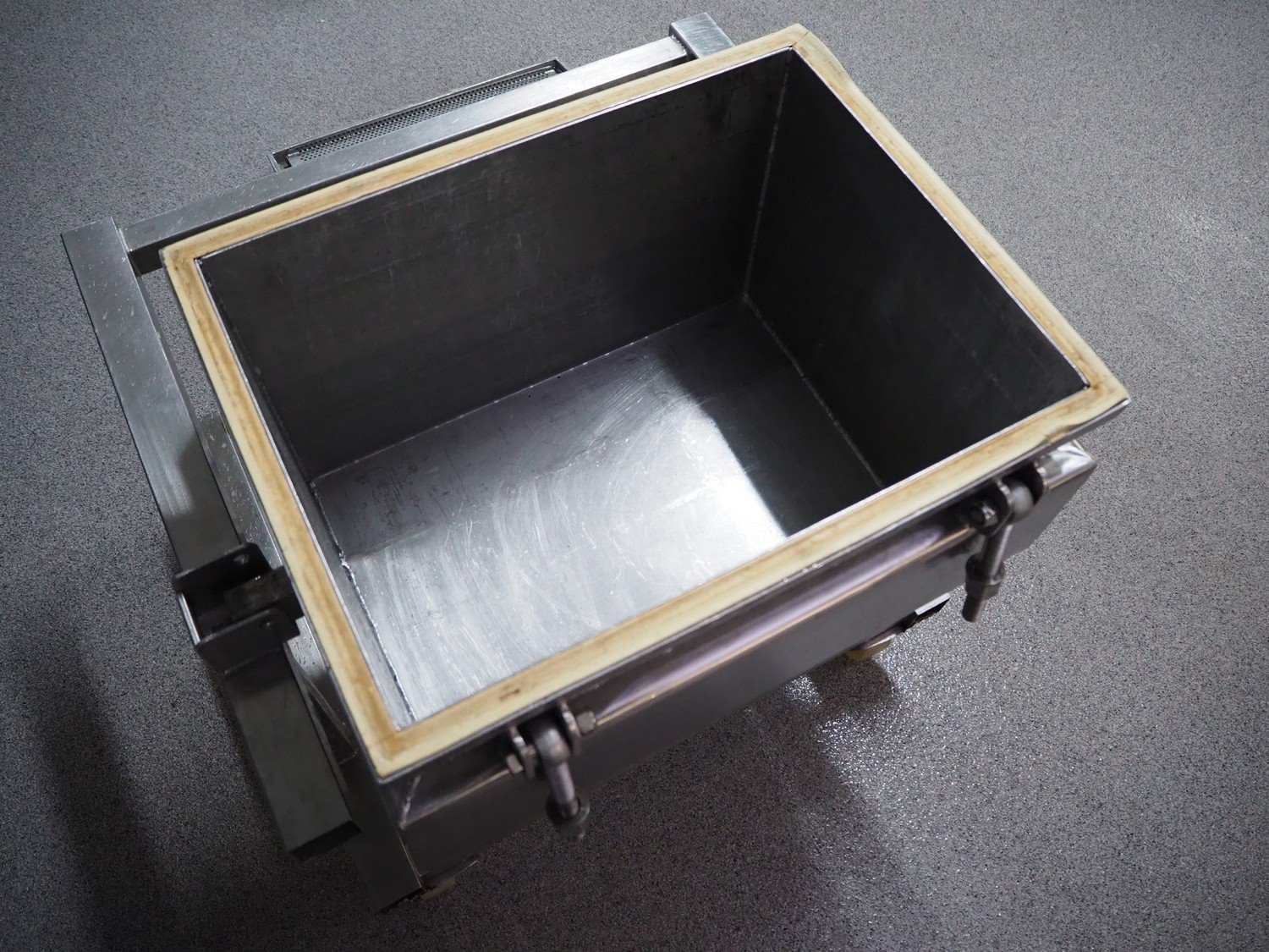 S/s mobile vacuum press, dimensions vacuum press: 550 mm x 440 mm x 300 mm, total dimensions: 720 mm x 700 mm x 770 mm.