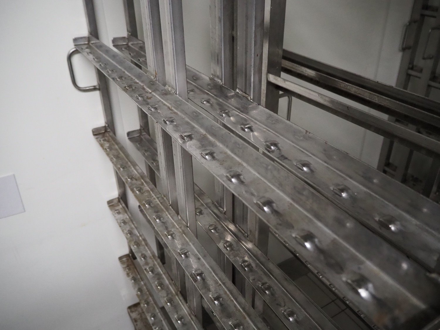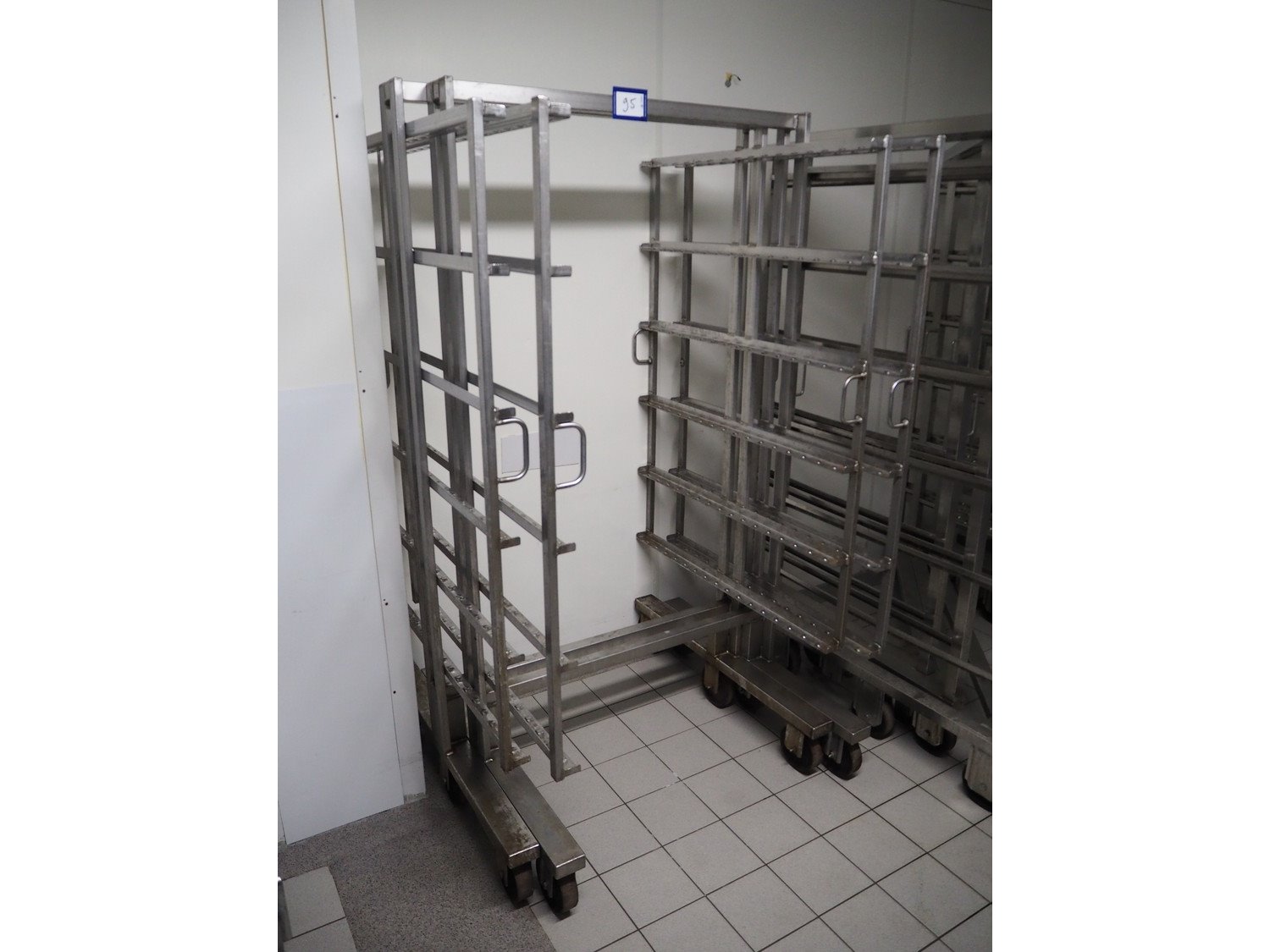 2 s/s smoke trolleys, 6 floors, dimensions floors: (6x) 930 mm x 1000 mm, total dimensions: (2x) 1050 mm x 1020 mm x 1920 mm.