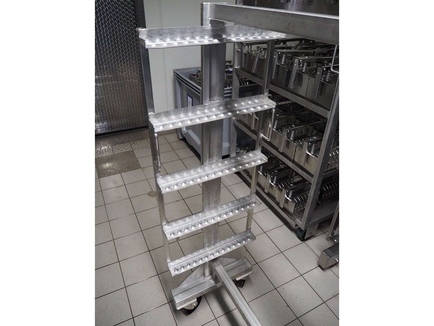S/s smoke trolley, 5 floors, dimensions floors: (5x) 1000 mm x 450 mm, total dimensions: 1050 mm x 460 mm x 1460 mm.