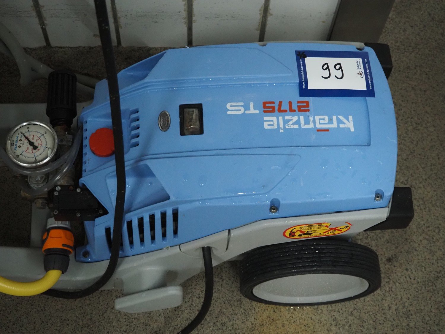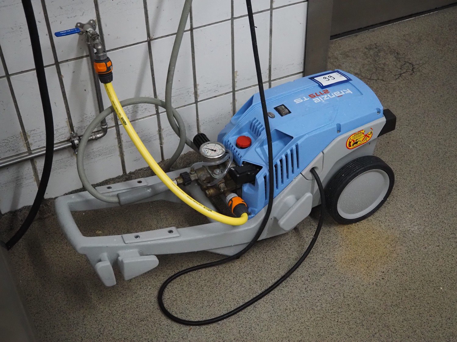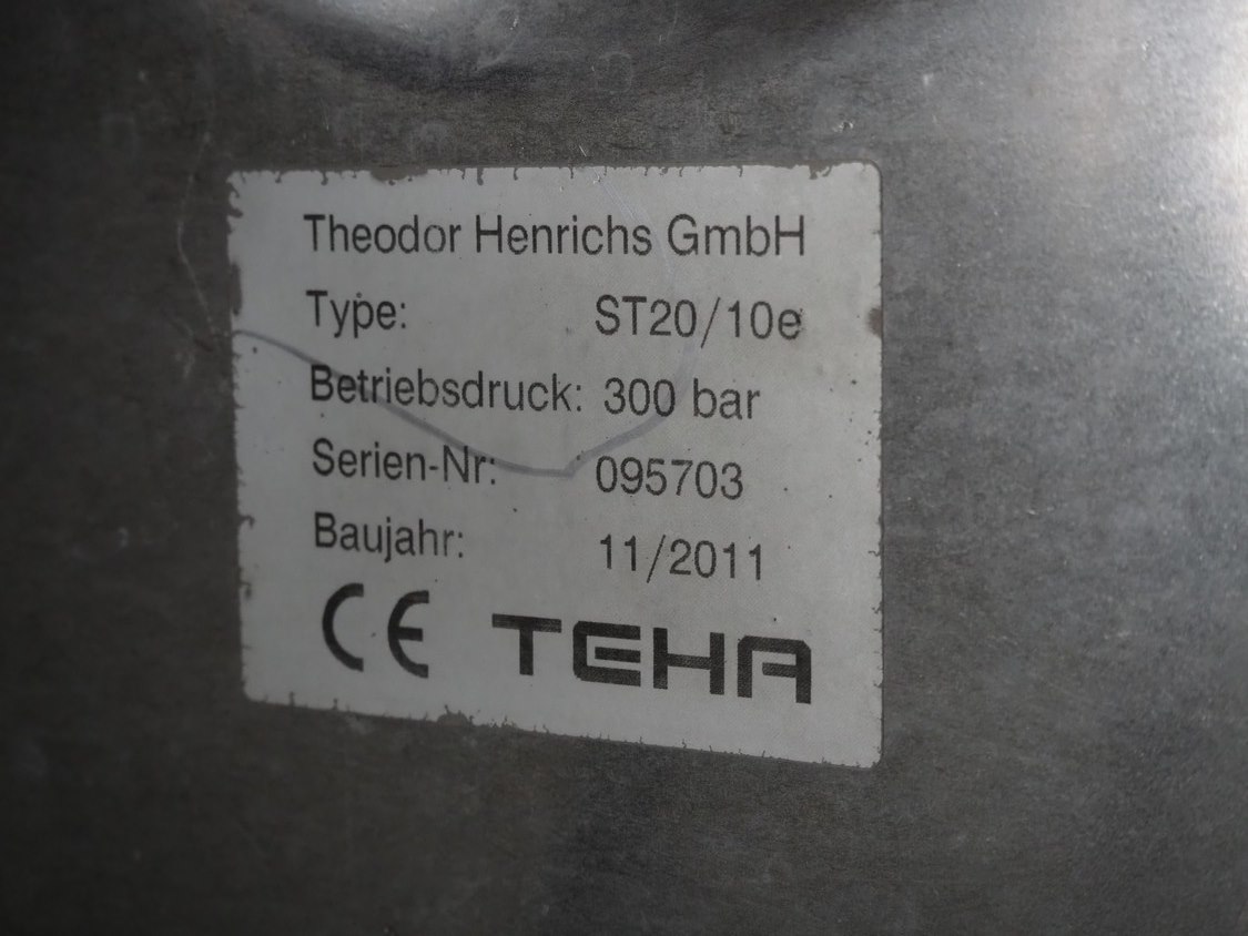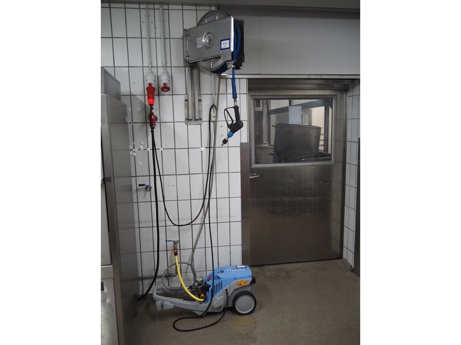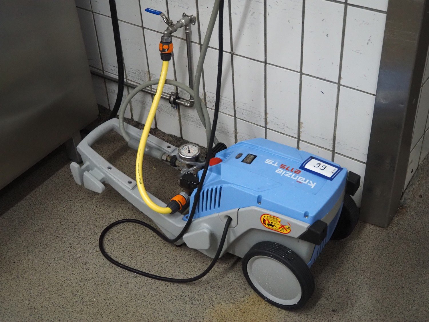 High pressure cleaning installation consisting of Kränzle high pressure cleaner, model: K 2175 TS, year of construction: 2018, capacity: 12 liter per minute, dimensions: 900 mm x 350 mm x 400 mm, Theodor Henrichs GmbH s/s hose reel with hose and spraying gun, type: ST20/10e, serial number: 095703, year of construction: 2011, working pressure: 300 bar, dimensions: 500 mm x 250 mm x 500 mm.