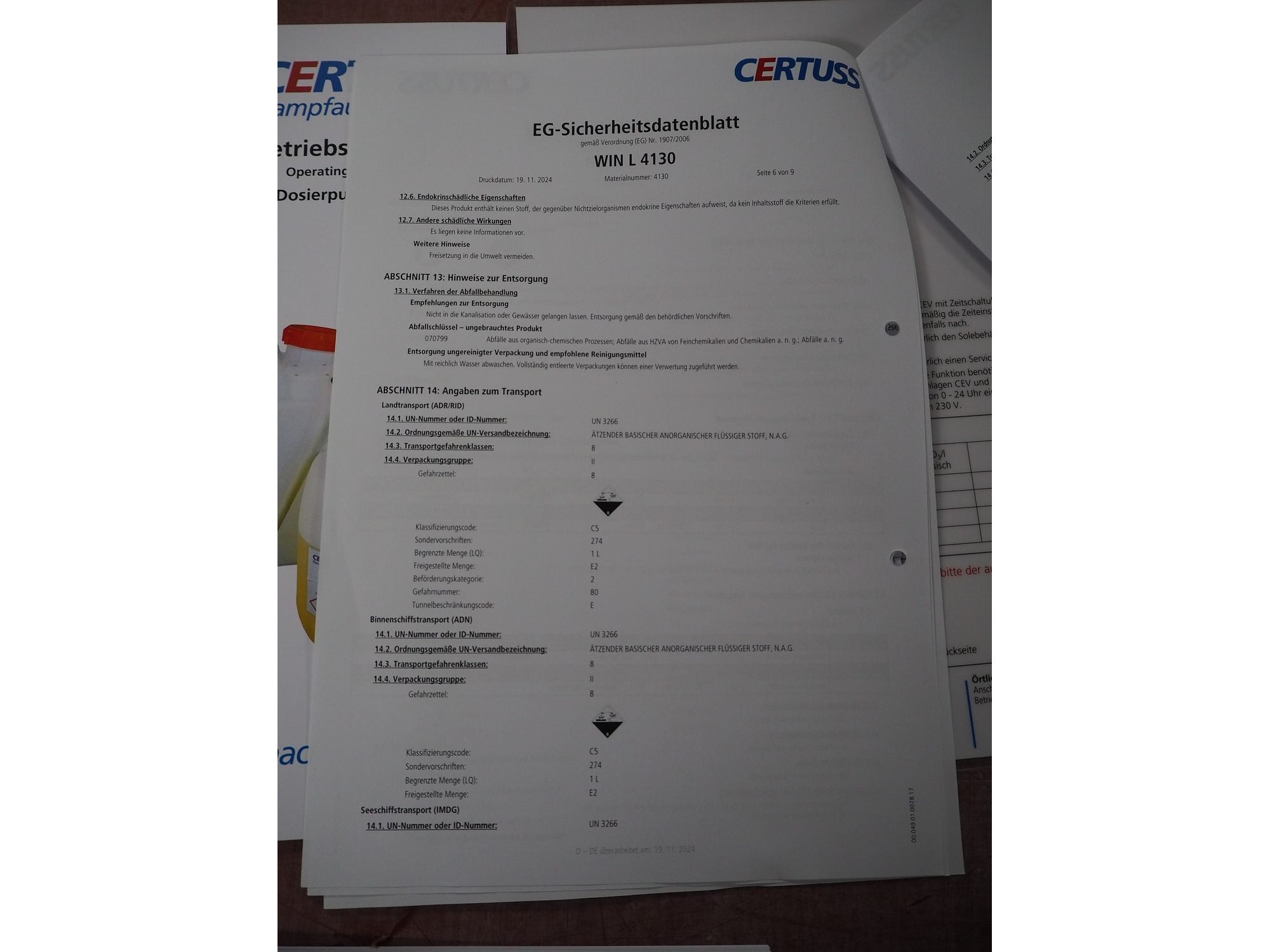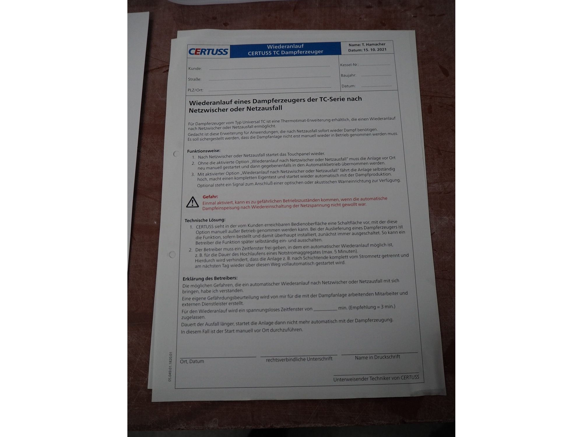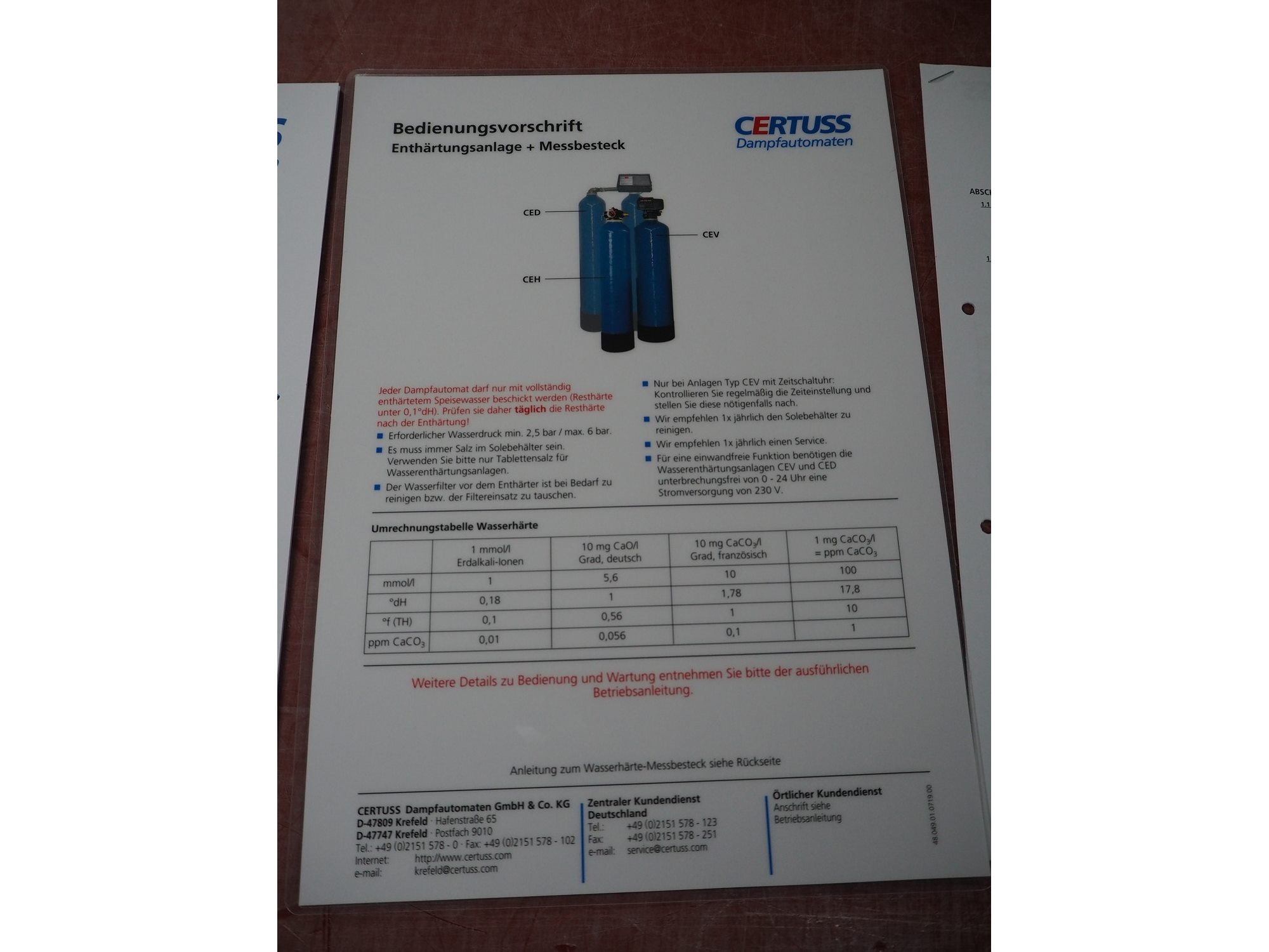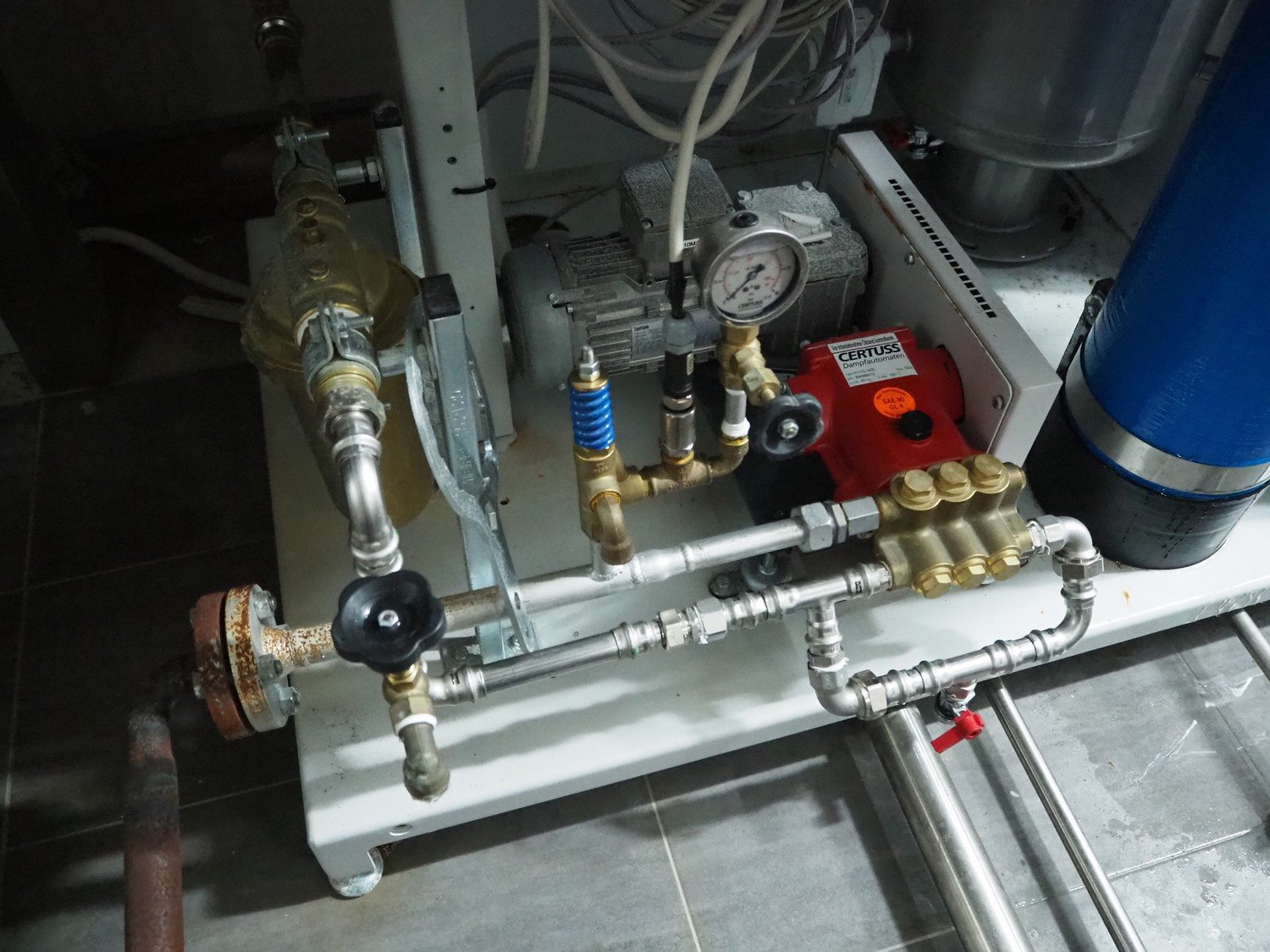 Certuss GmbH steam generator, model: CERTUSS Junior 300 TC, production number: SDE16509, year of construction: 2024, capacity: 300 kg per hour, maximum working pressure: 10 bar, maximum working temperature: 184˚C, volume in liter: 32.48 liter, test pressure: 57 bar, dimensions: 1000 mm x 1500 mm x 2000 mm, Certuss GmbH CVE package plant unit, type: CERTUSS CVE 300 TC, serial number CVE10308, year of construction: 2025, 230 V, 50 Hz, 16 A, 4.42 kVa, dimensions: 1500 mm x 1000 mm x 2000 mm.