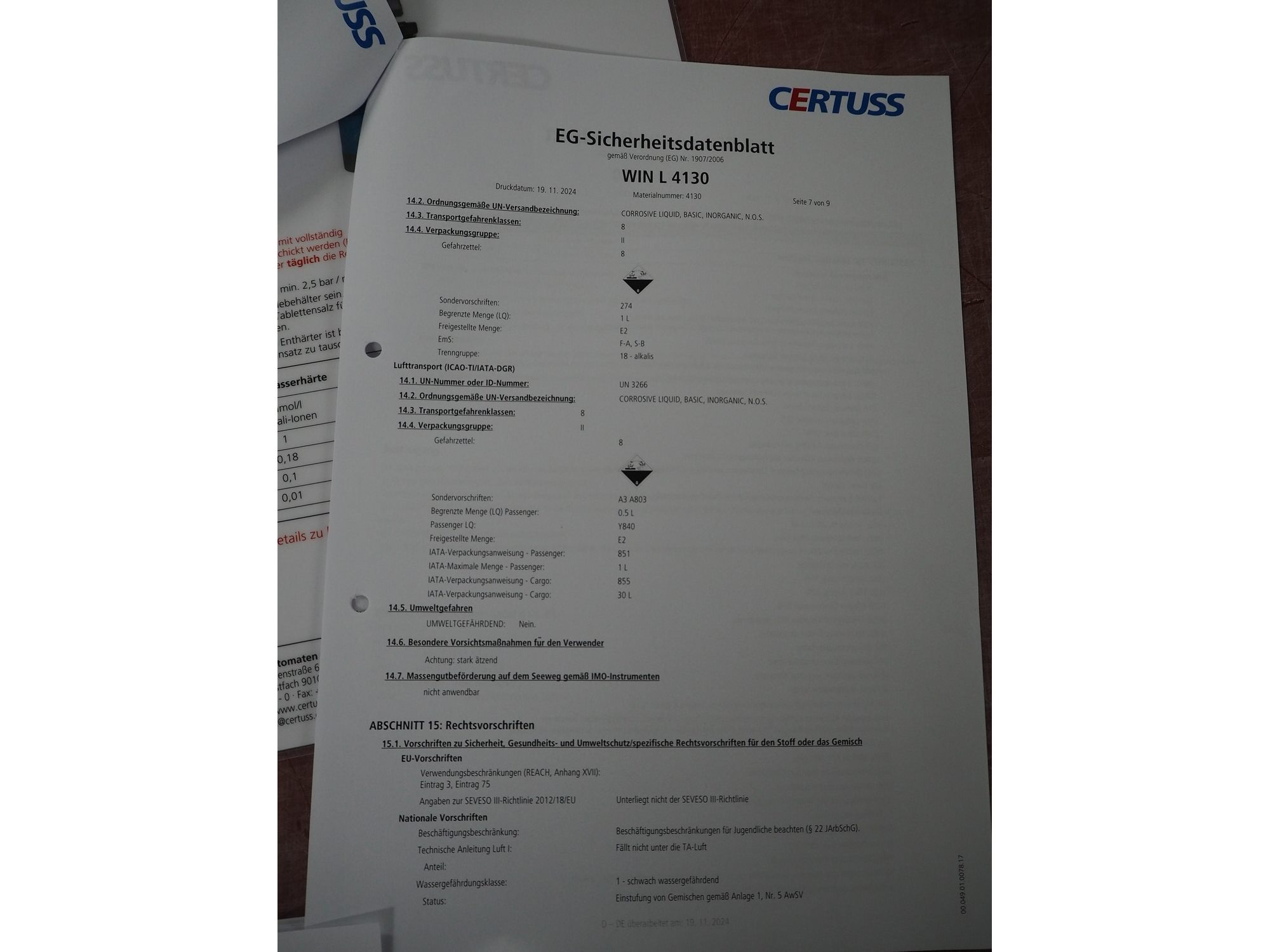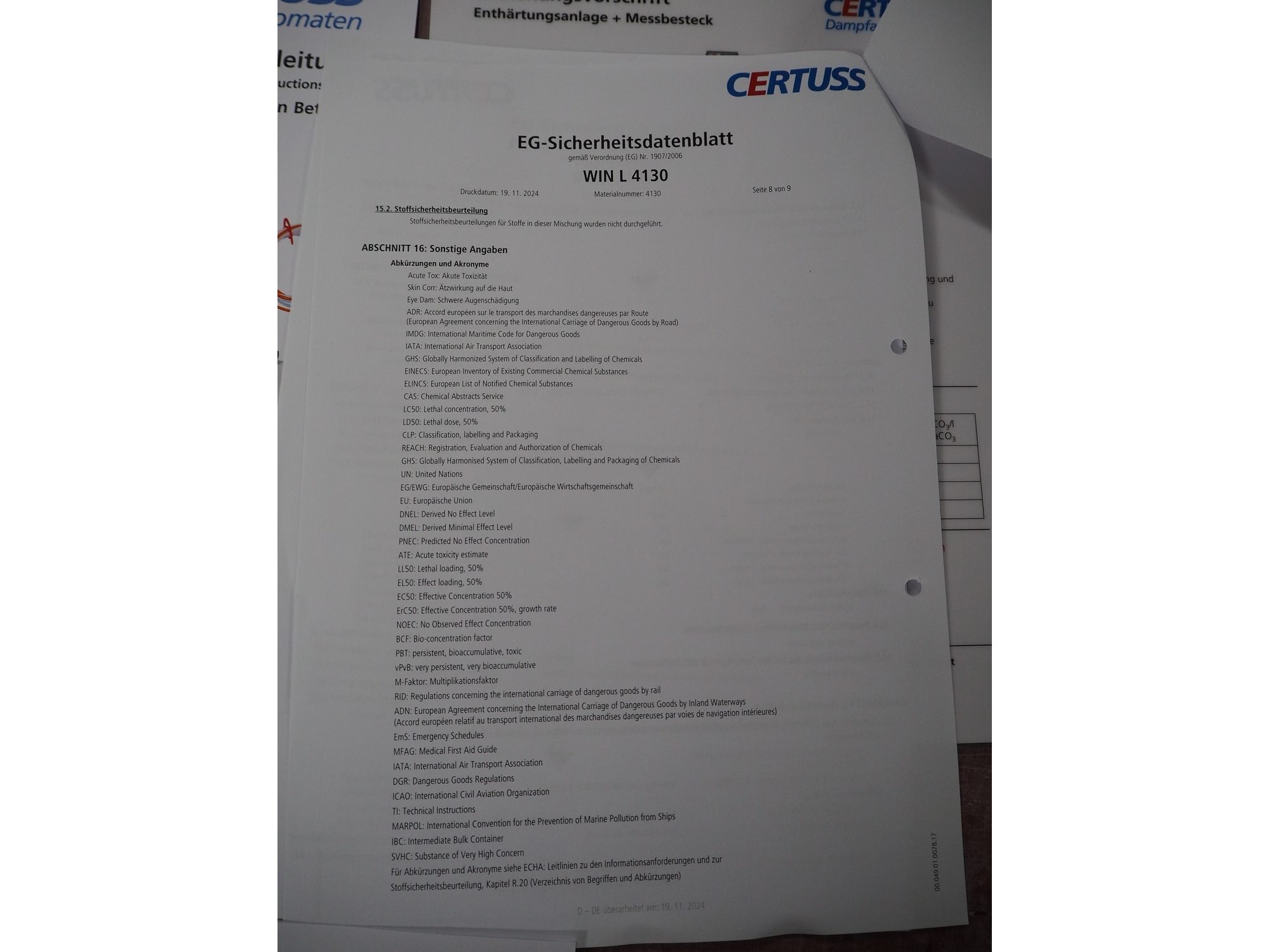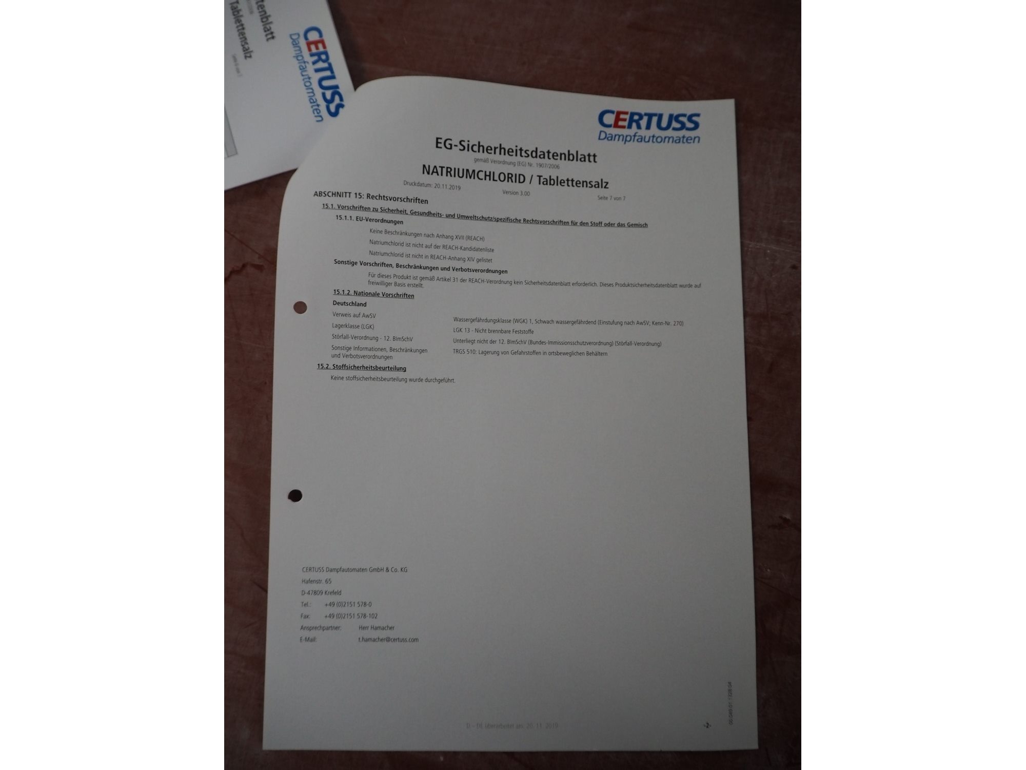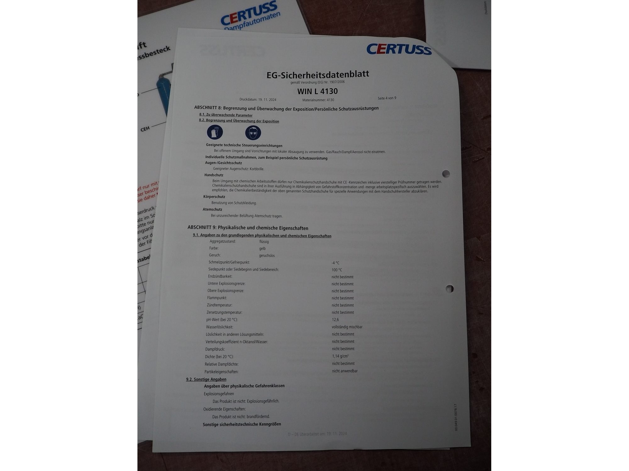 Certuss GmbH steam generator, model: CERTUSS Junior 300 TC, production number: SDE16509, year of construction: 2024, capacity: 300 kg per hour, maximum working pressure: 10 bar, maximum working temperature: 184˚C, volume in liter: 32.48 liter, test pressure: 57 bar, dimensions: 1000 mm x 1500 mm x 2000 mm, Certuss GmbH CVE package plant unit, type: CERTUSS CVE 300 TC, serial number CVE10308, year of construction: 2025, 230 V, 50 Hz, 16 A, 4.42 kVa, dimensions: 1500 mm x 1000 mm x 2000 mm.