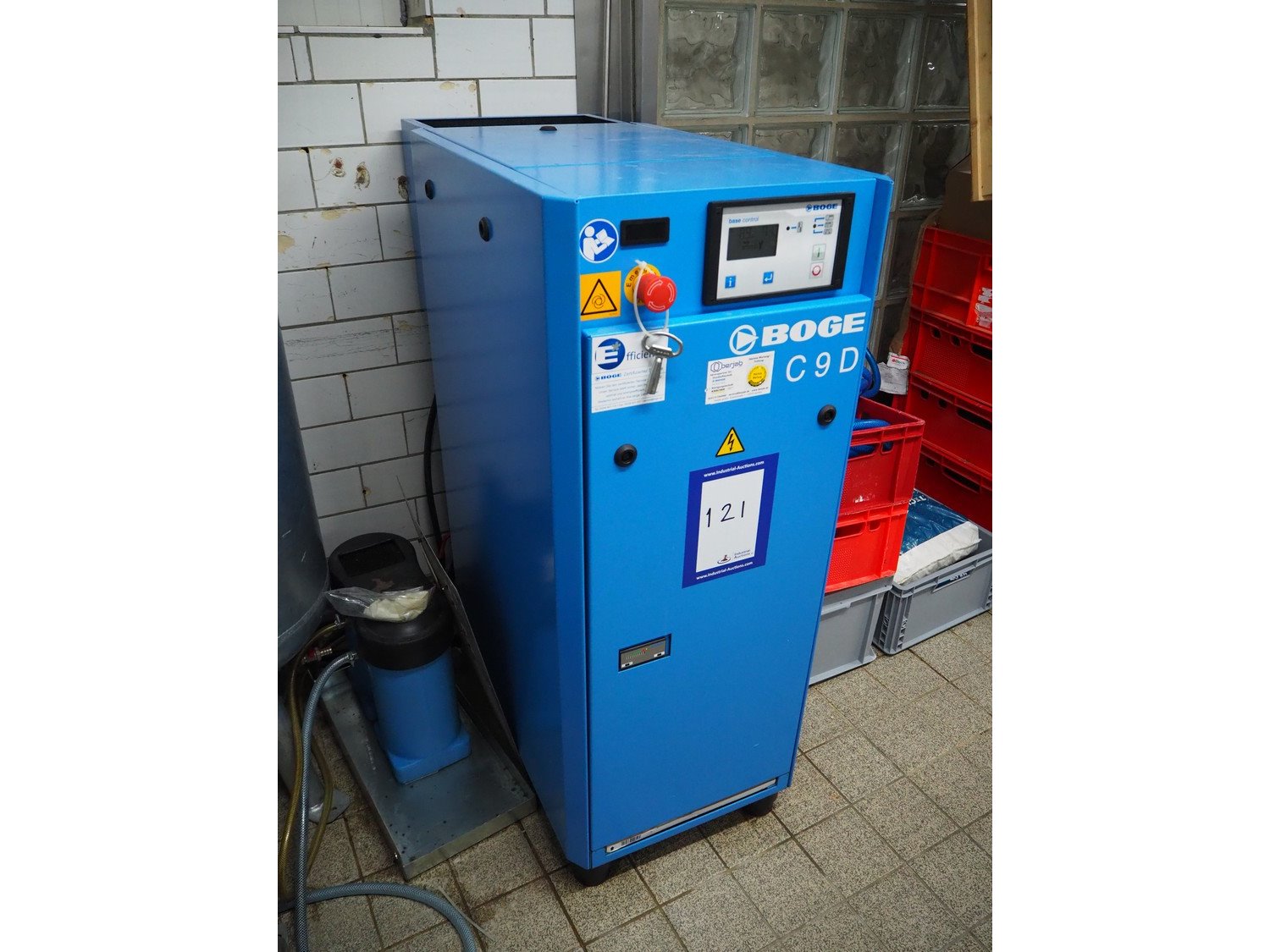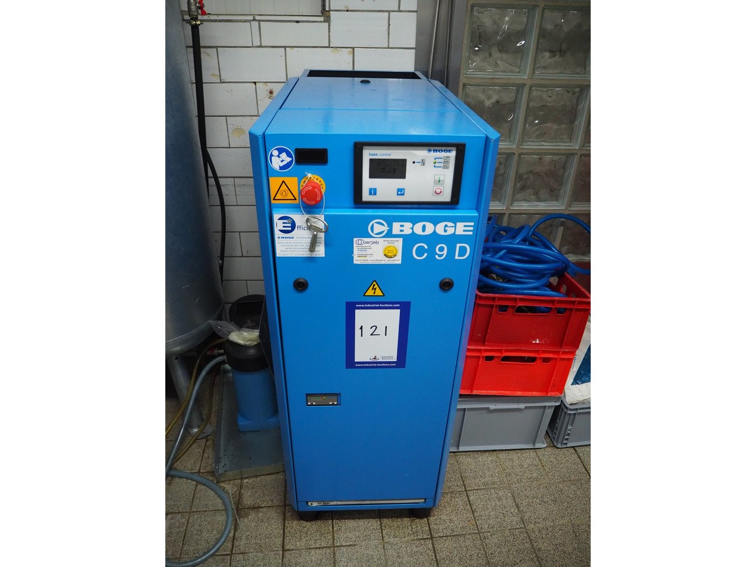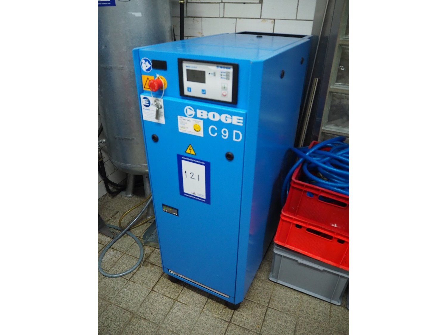 Boge Kompressoren air compressor, type: C 9 D, machine number: 5153071, year of construction: 09-2020, volume: 0.870 m³/min, pressure: 13 bar, motor: 3000 rates per minute, motor capacity: 7.5 kW, total dimensions: 500 mm x 1000 mm x 1250 mm.