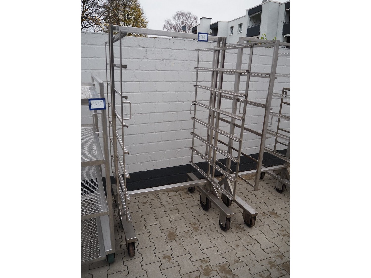 S/s smoke trolley, 8 floors, dimensions: (8x) 1020 mm x 970 mm, total dimensions: 1100 mm x 990 mm x 1920 mm.