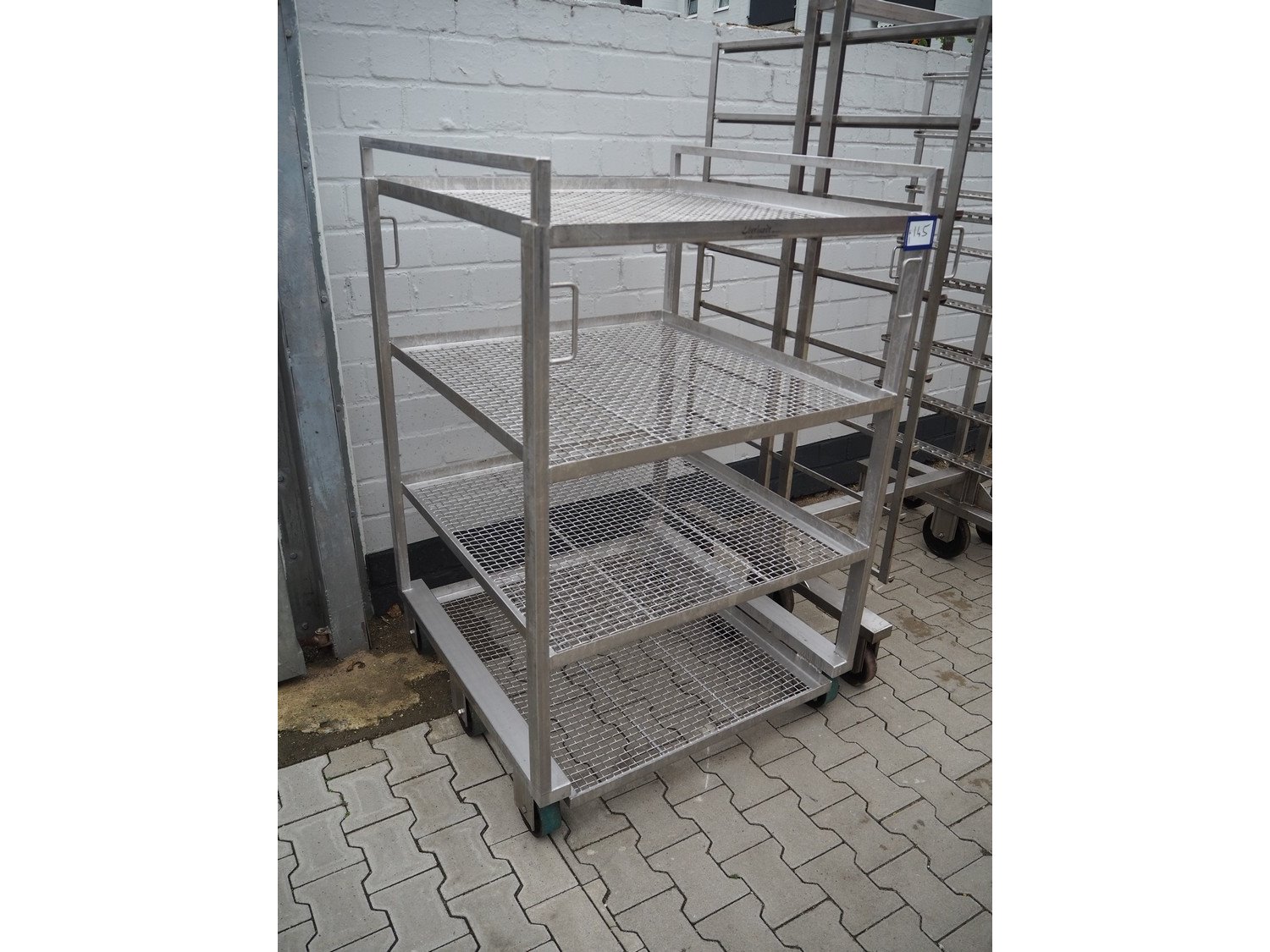 Eberhardt GmbH s/s cooking trolley, 4 floors, dimensions floors: (4x) 930 mm x 990 mm, total dimensions: 1000 mm x 1000 mm x 1510 mm.