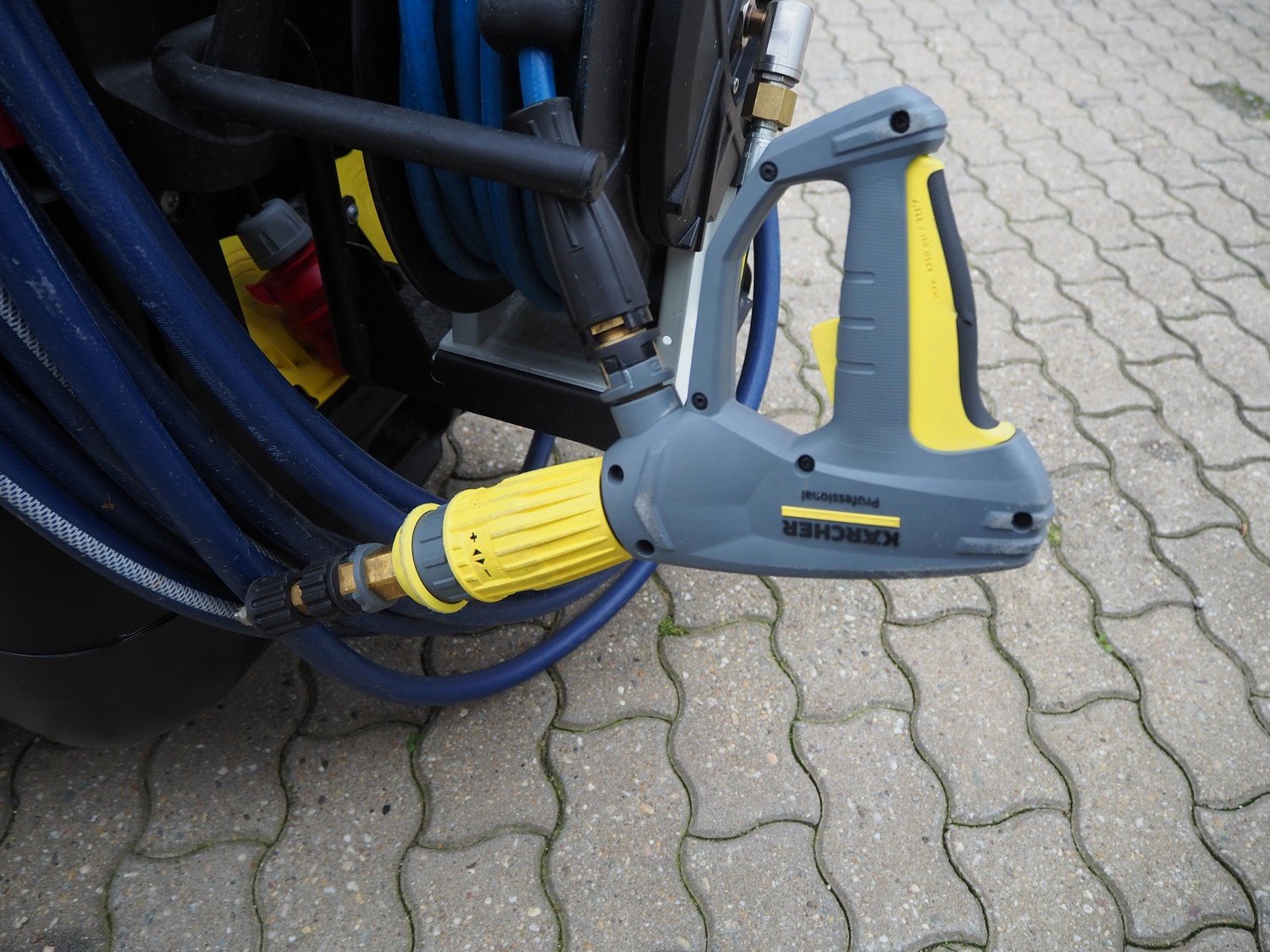 Kärcher high pressure cleaner including spraying gun, dimensions: 1600 mm x 800 mm x 1100 mm.
