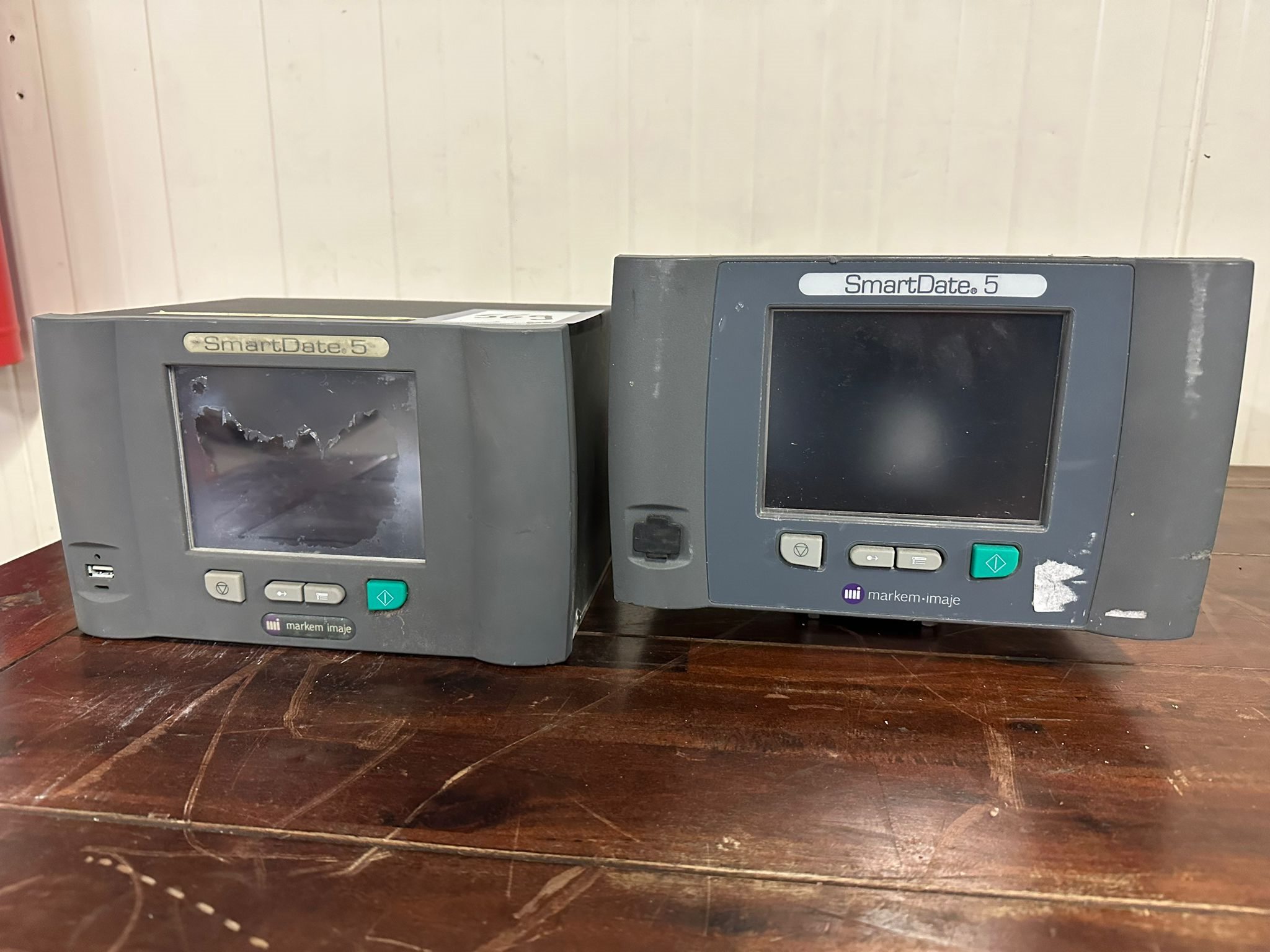 2 Markem-Imaje smartdate 5 displays, dimensions: 250 mm x 270 mm x 200 mm and 260 mm x 190 mm x 160 mm.