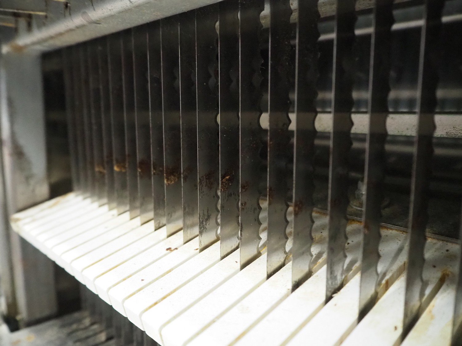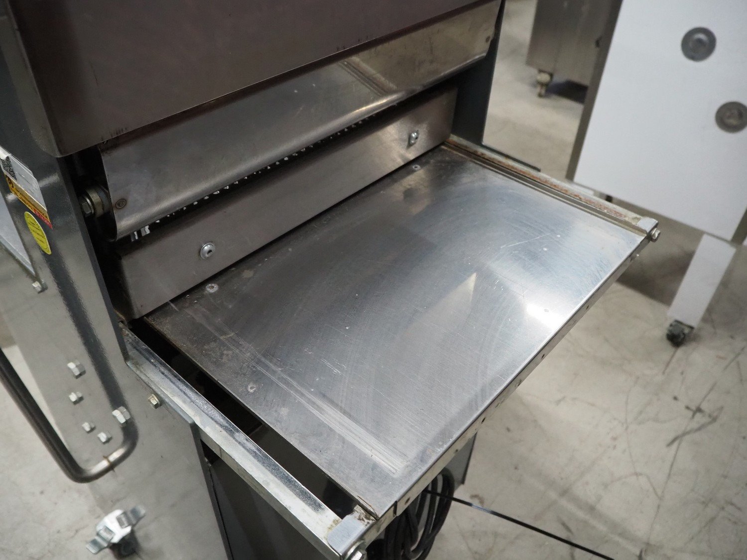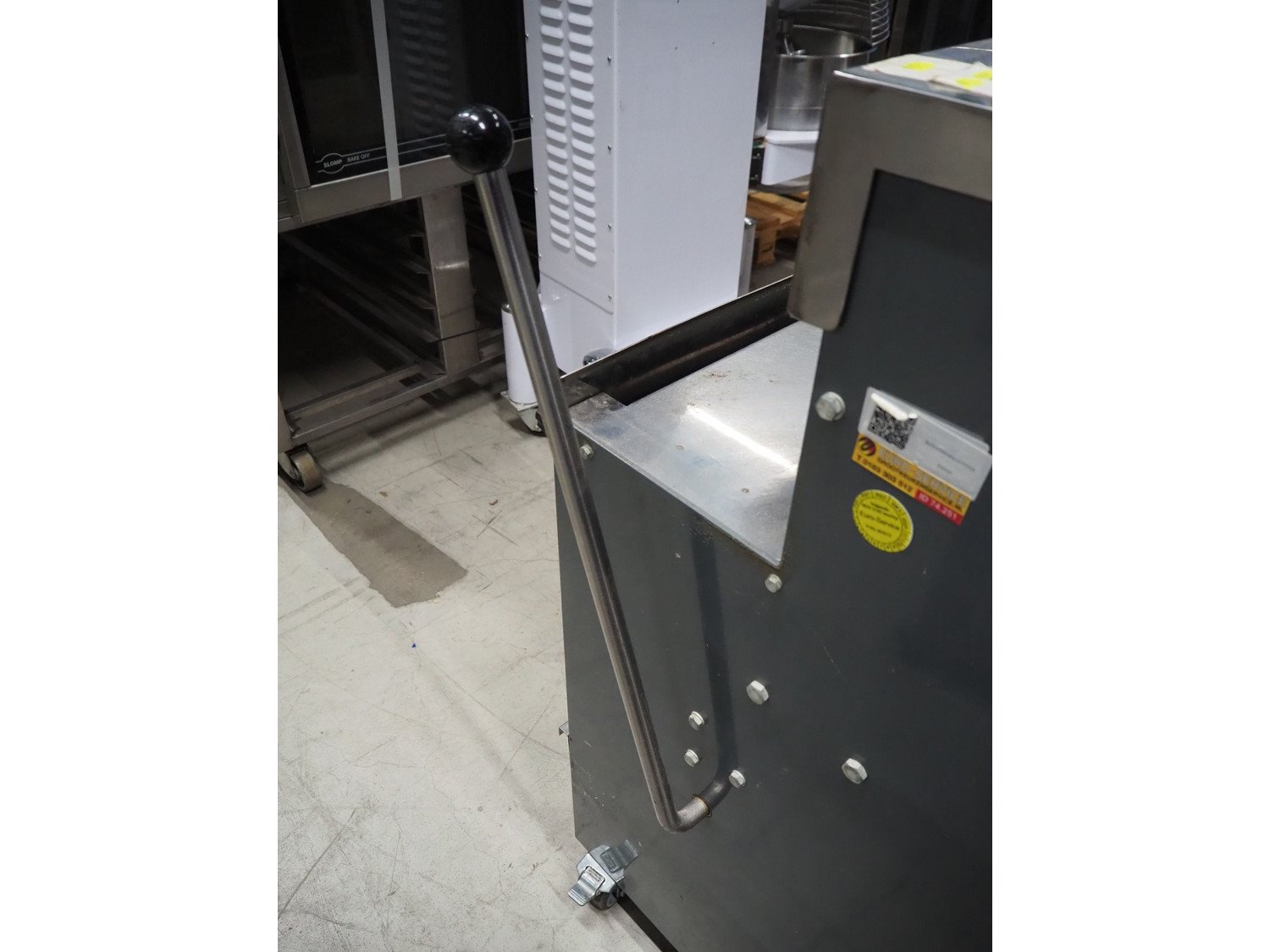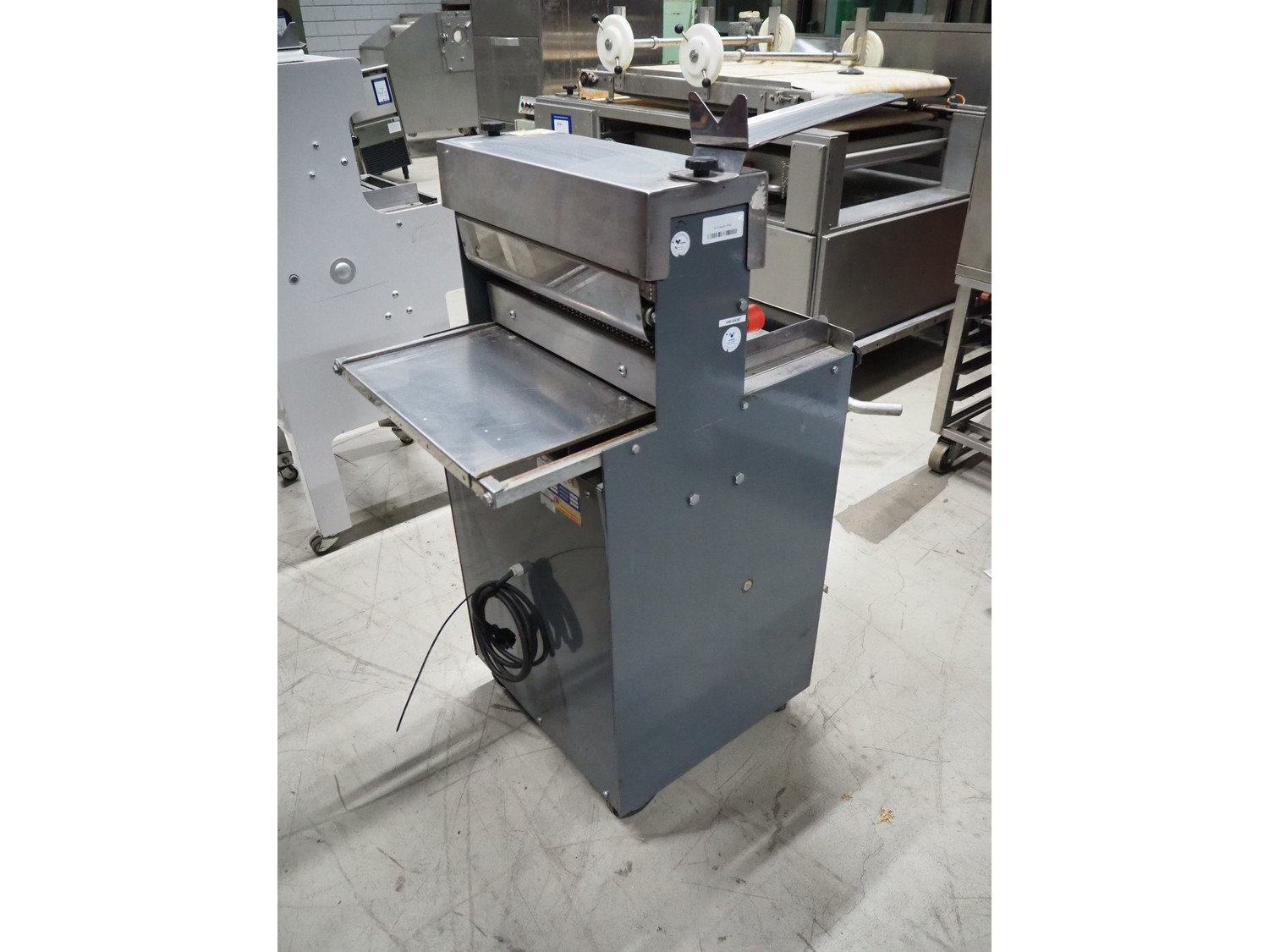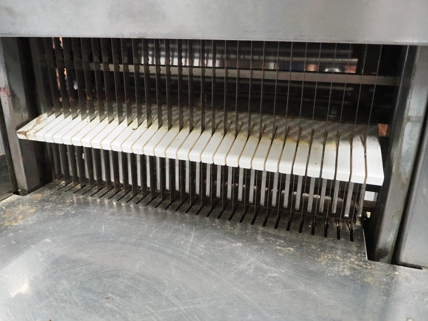 Herman bread slicer, type: De luxe, machine number: 108, year of construction: 2001, 230 V, 0.37 kW, weight: 125 kg, 30 knives, distance between knives: 12 mm, total dimensions: 700 mm x 660 mm x 1240 mm.