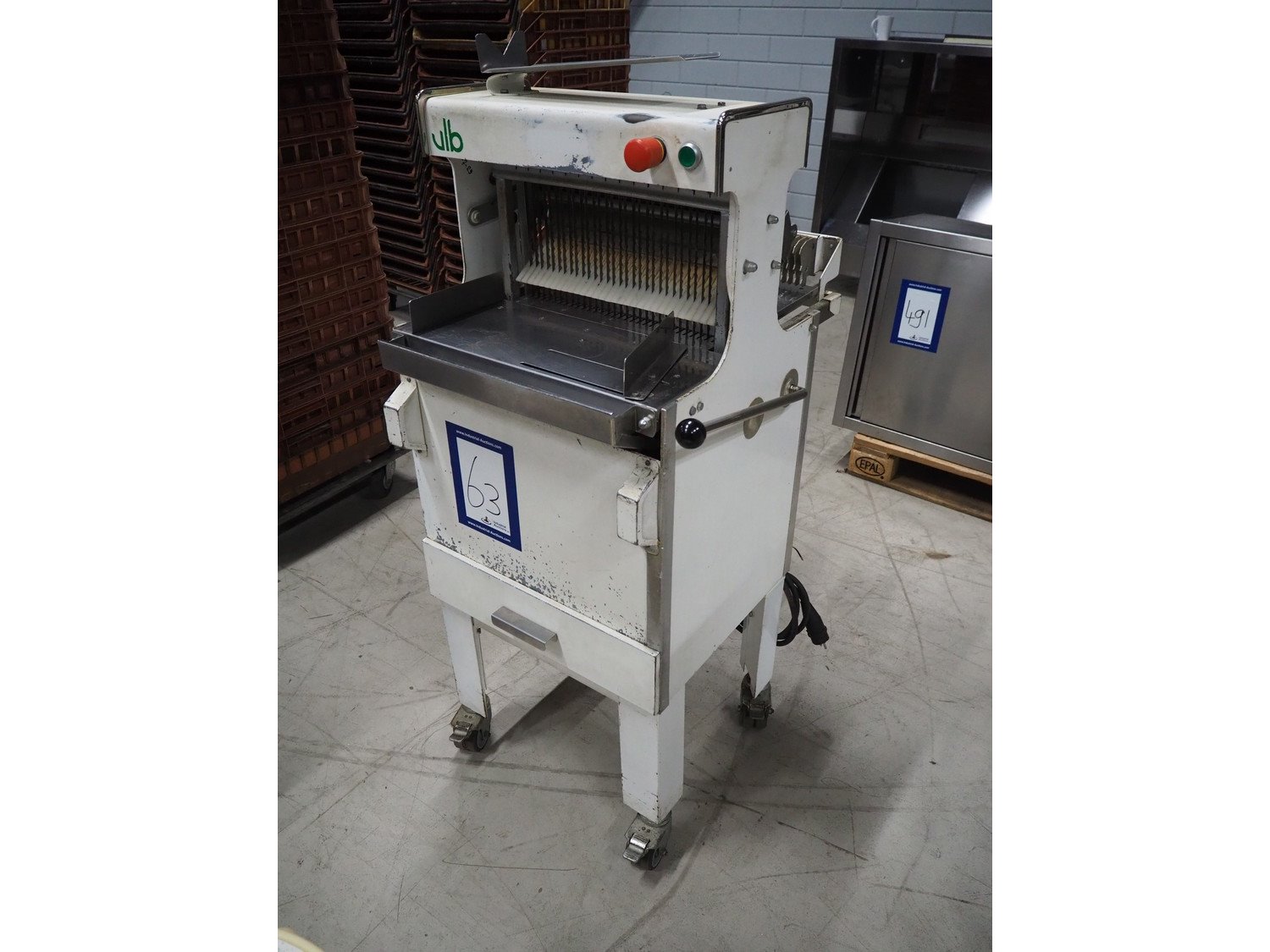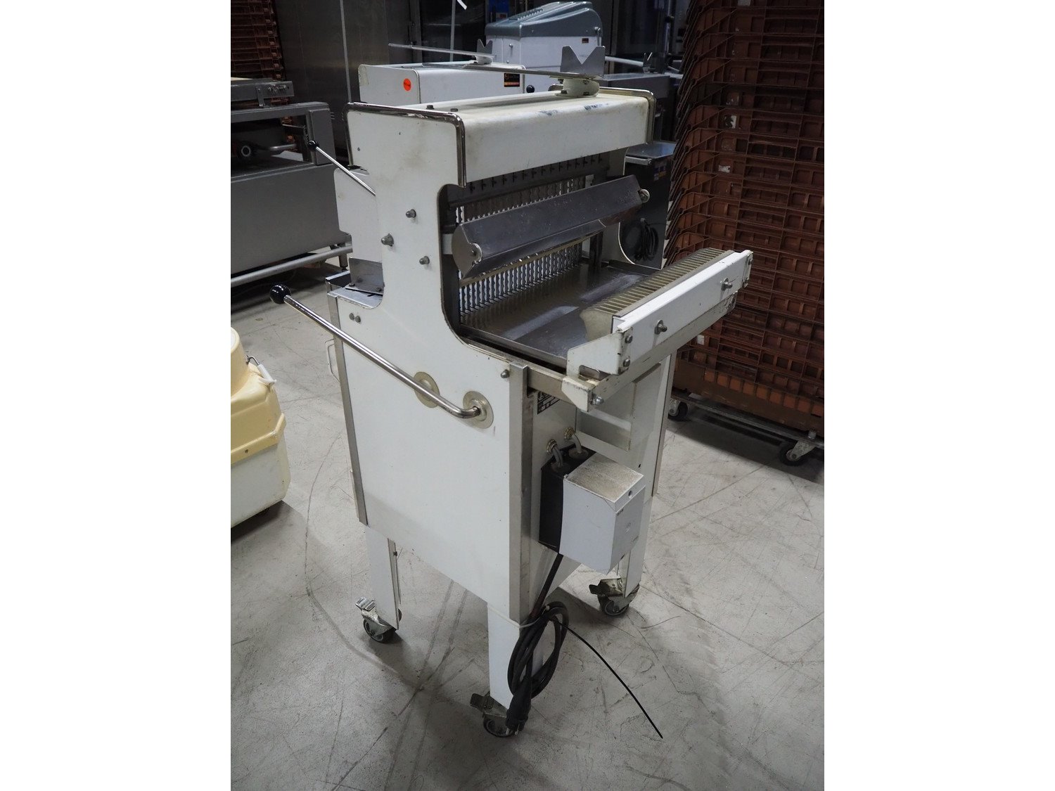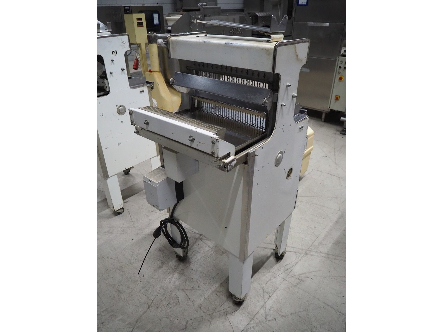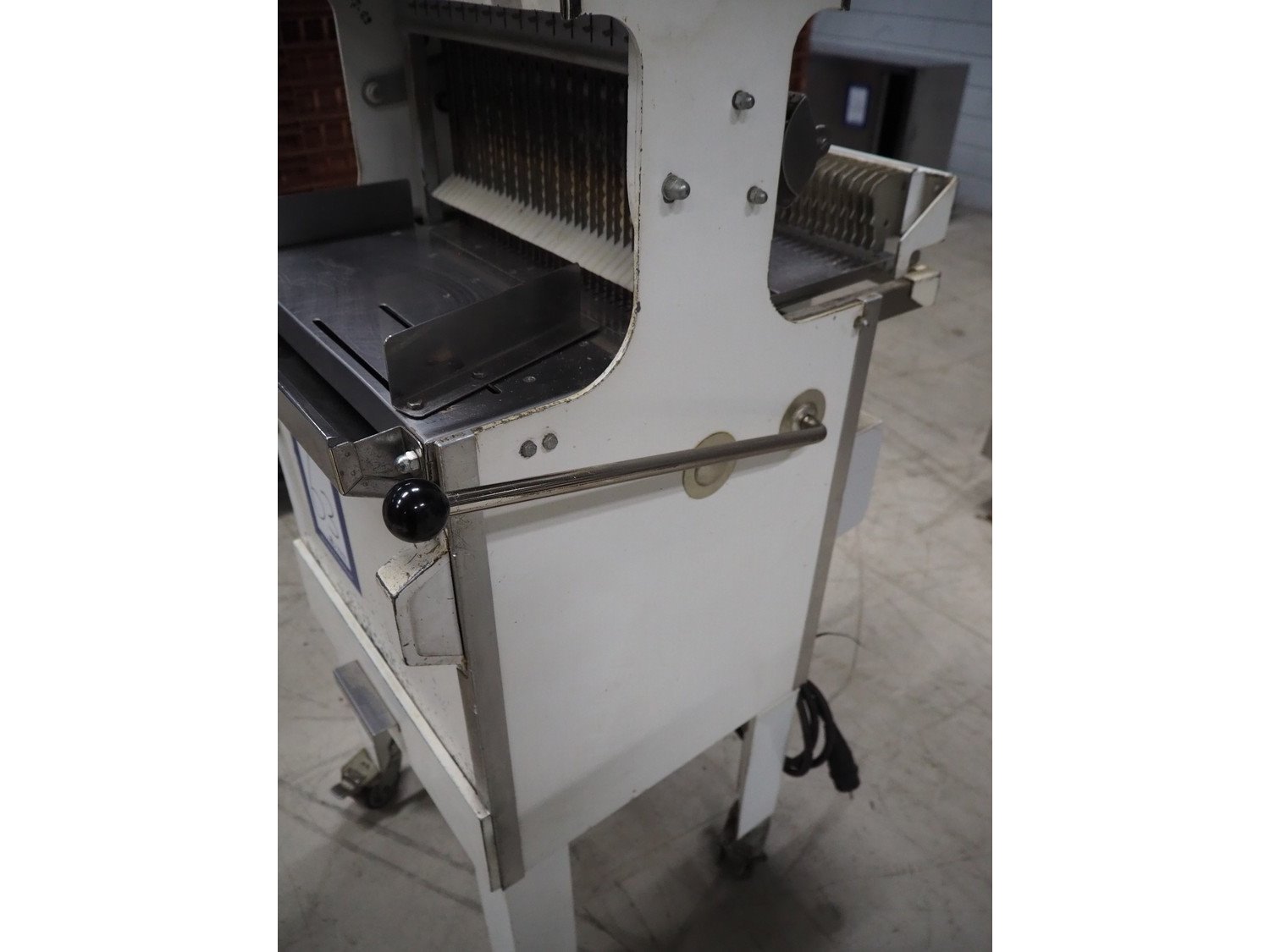 VLB bread slicer, type: VL-40/12.5, number: 94NA043, 220 V, 1 Ph, 50 Hz, 30 knives, distance between knives: 12 mm, total dimensions: 650 mm x 600 mm x 1320 mm.