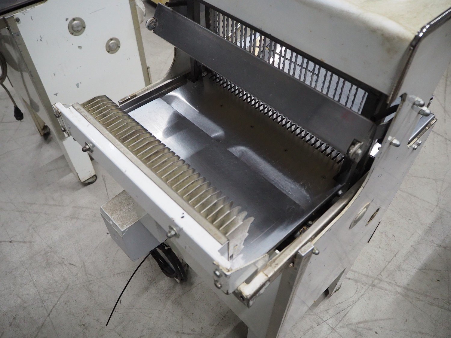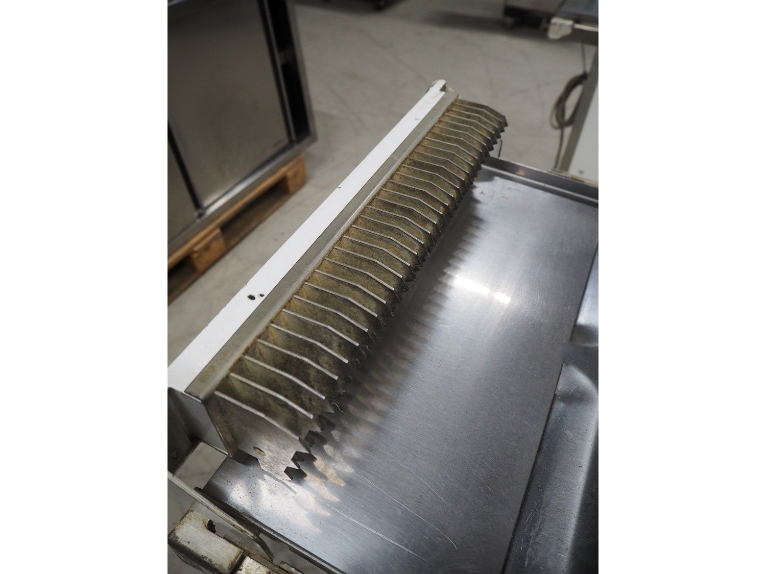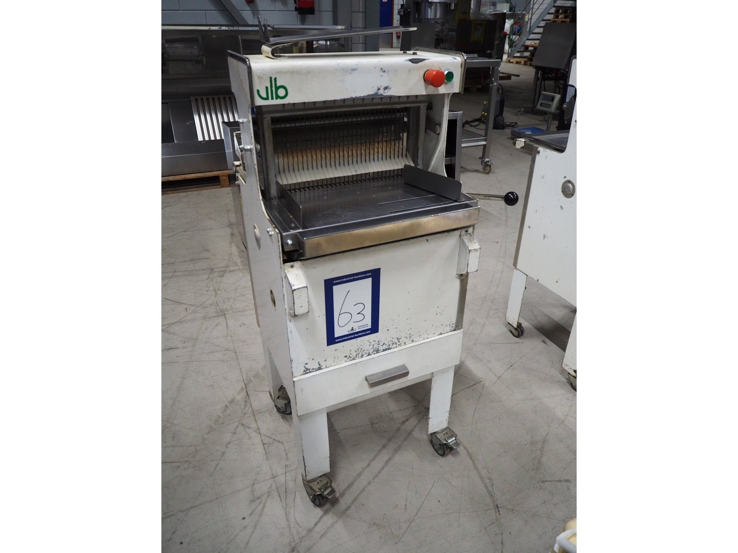 VLB bread slicer, type: VL-40/12.5, number: 94NA043, 220 V, 1 Ph, 50 Hz, 30 knives, distance between knives: 12 mm, total dimensions: 650 mm x 600 mm x 1320 mm.