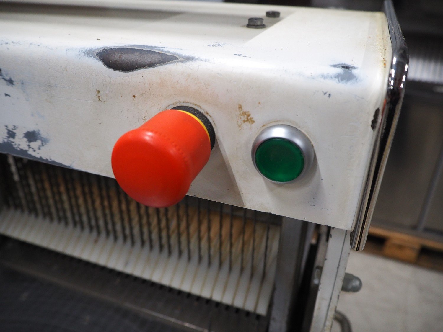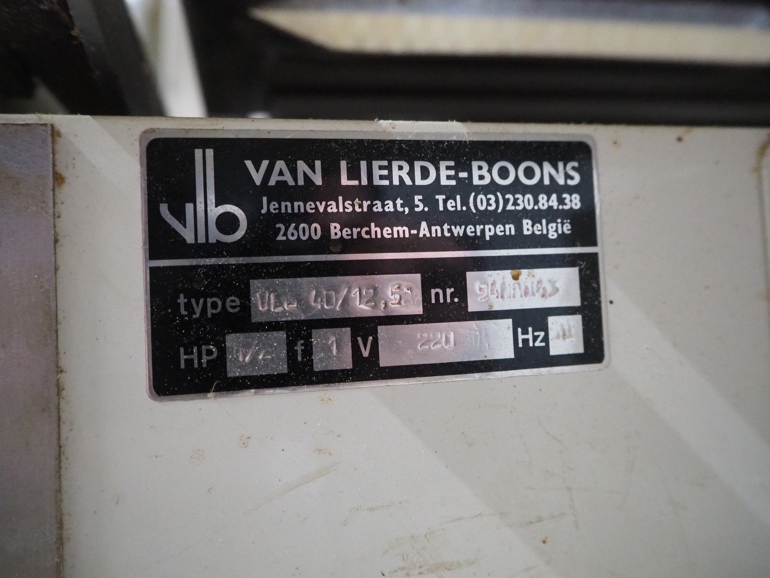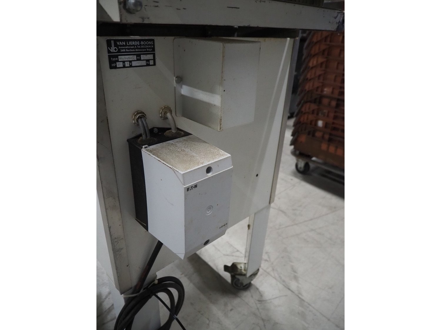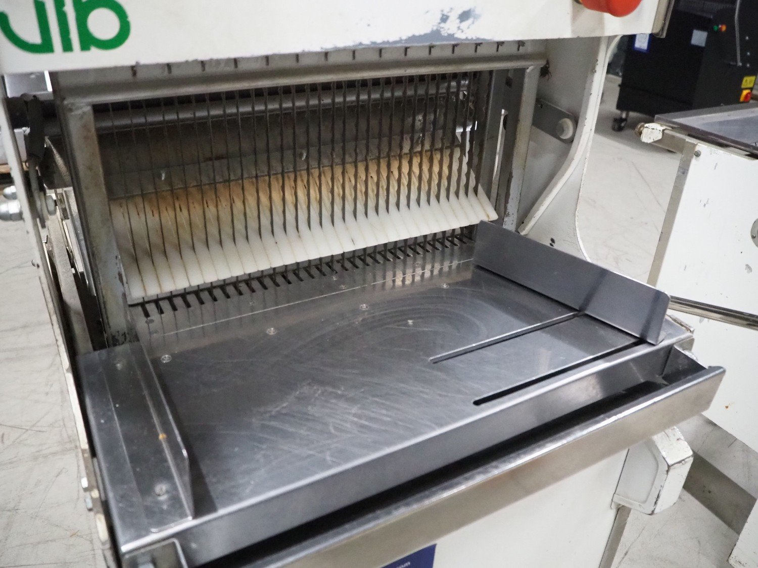 VLB bread slicer, type: VL-40/12.5, number: 94NA043, 220 V, 1 Ph, 50 Hz, 30 knives, distance between knives: 12 mm, total dimensions: 650 mm x 600 mm x 1320 mm.