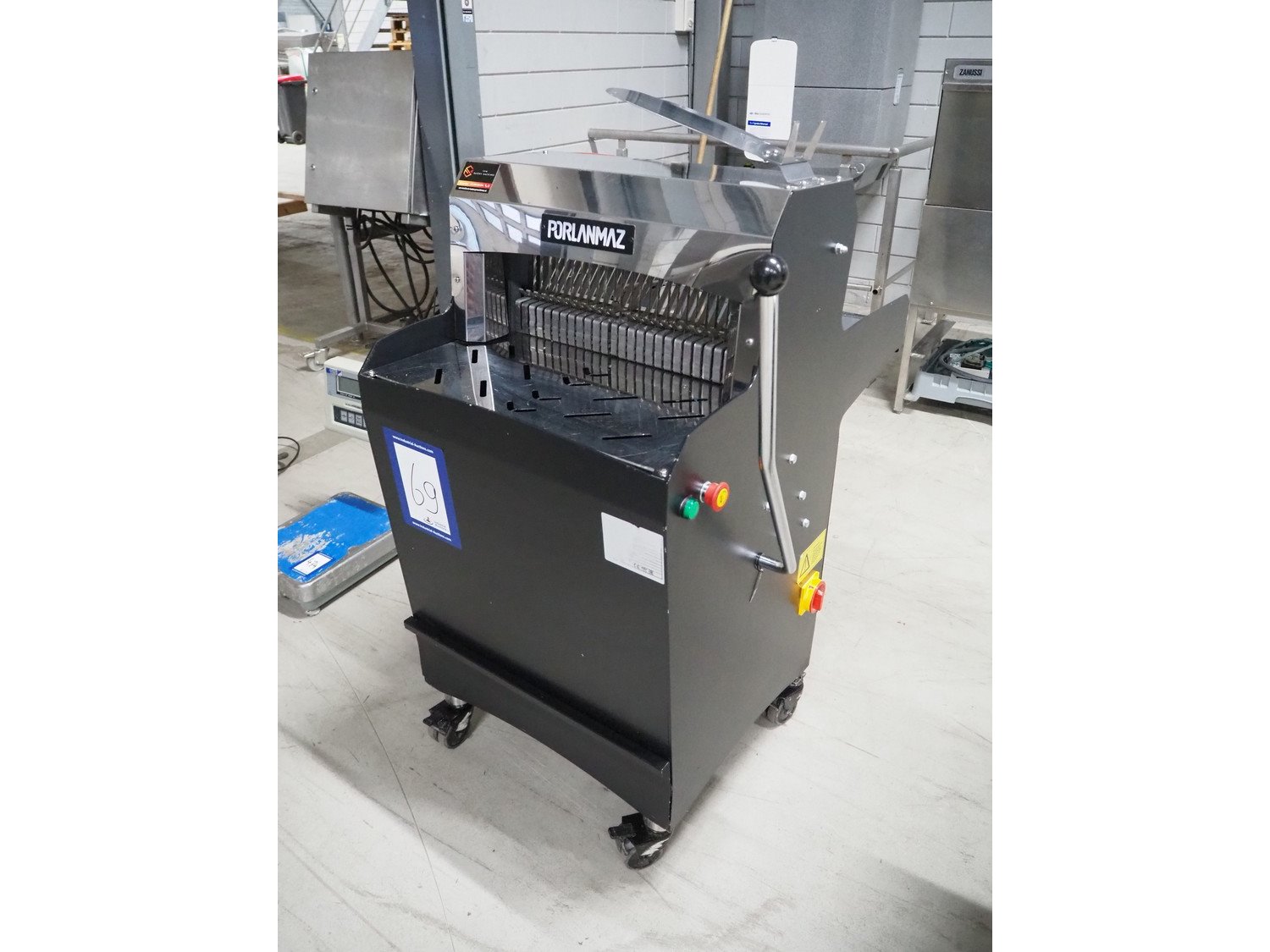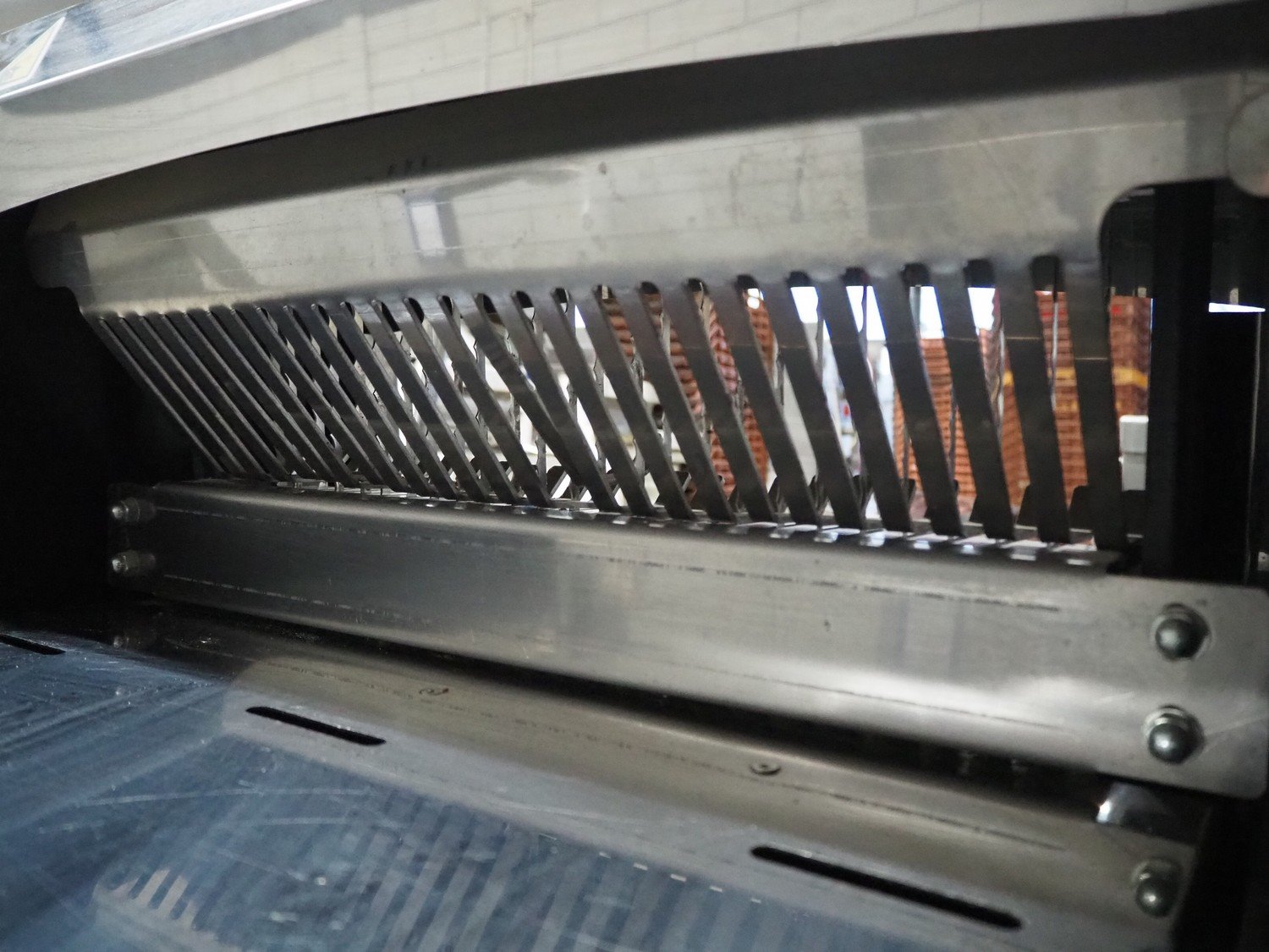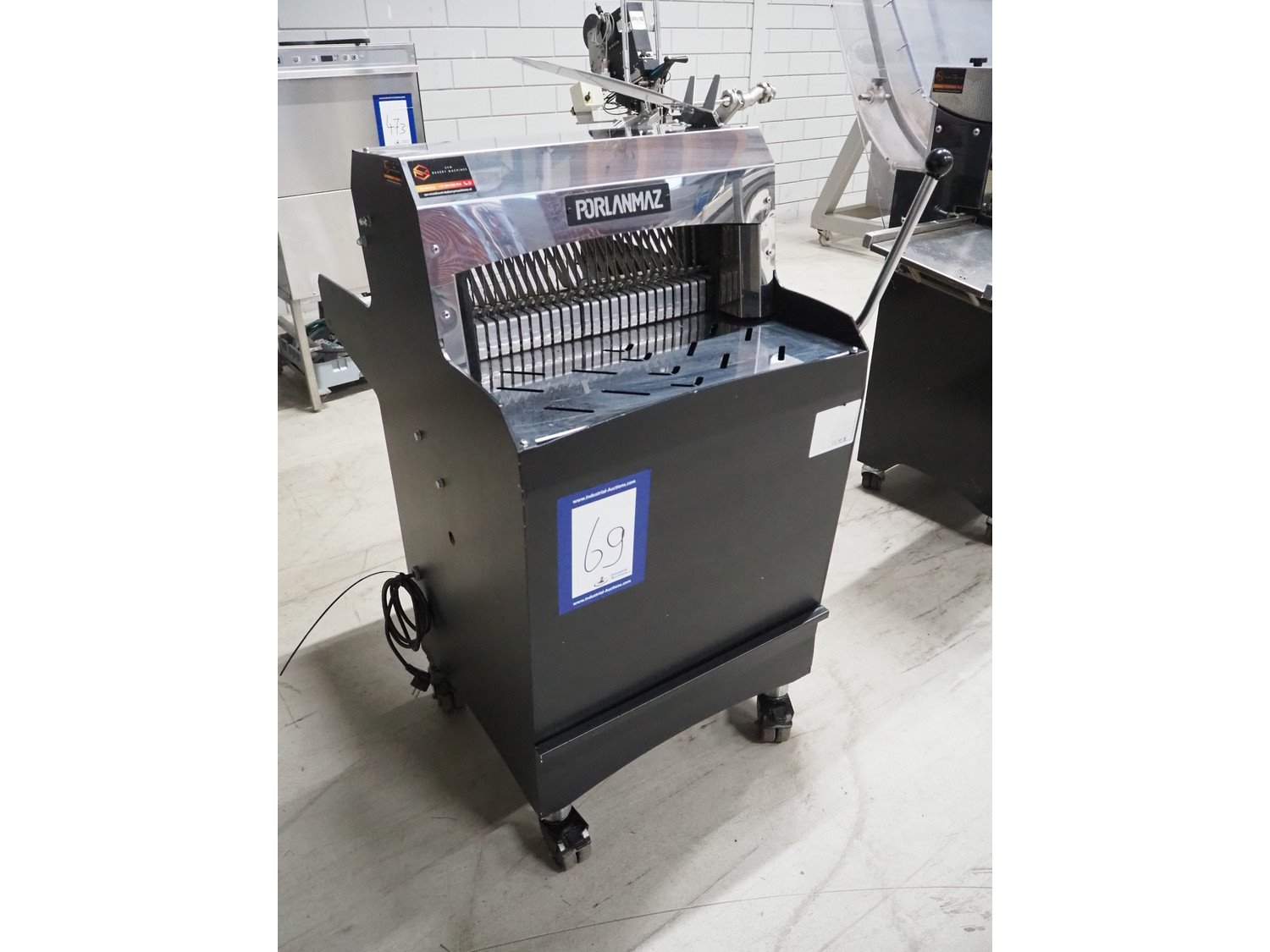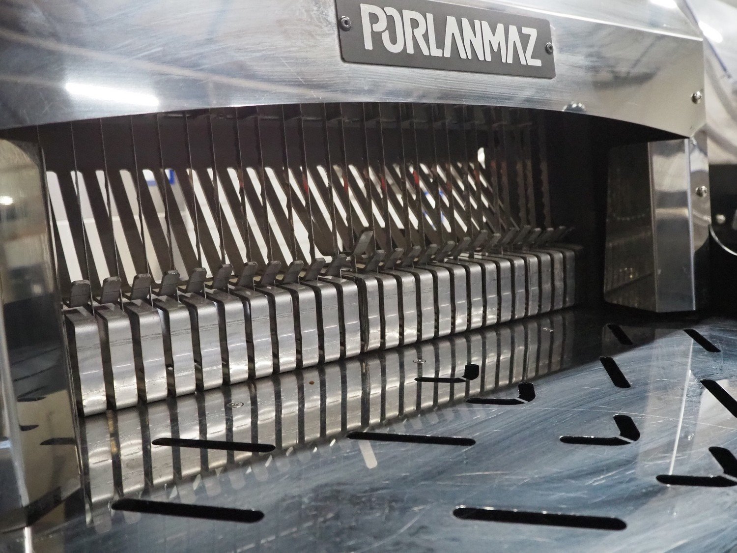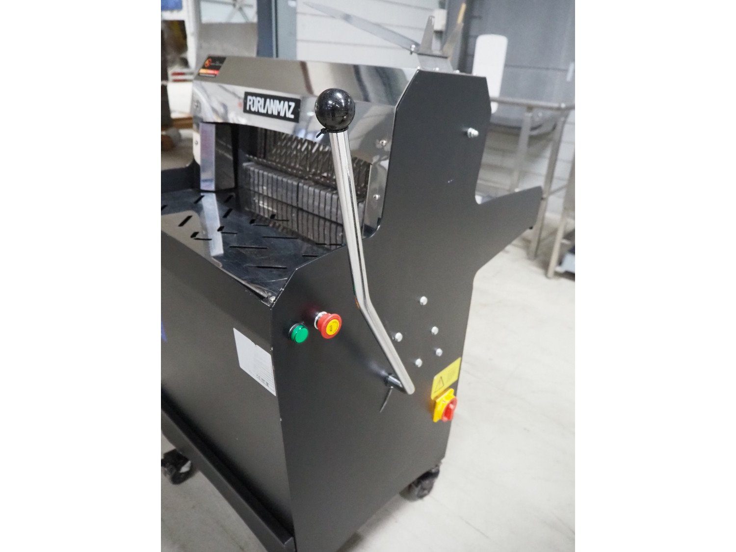 Porlanmaz bread slicer, 26 knives, distance between knives: 19 mm, total dimensions: 880 mm x 750 mm x 1250 mm.
