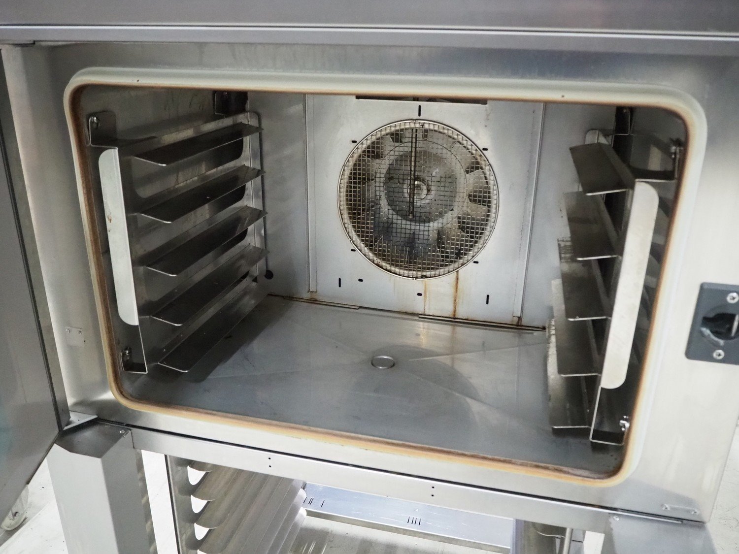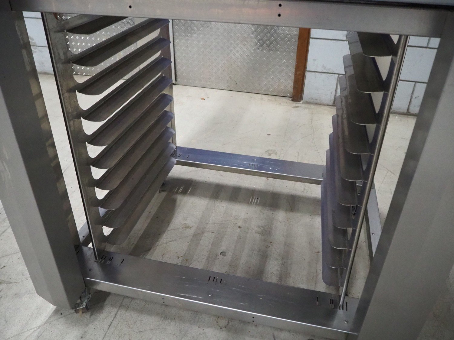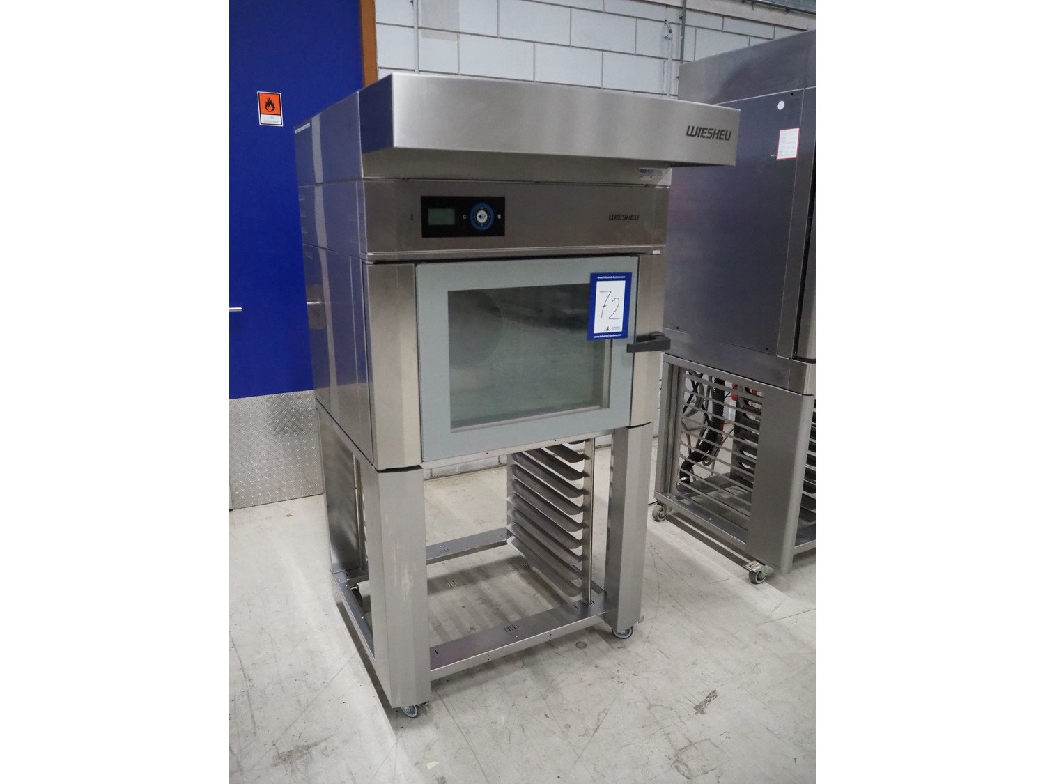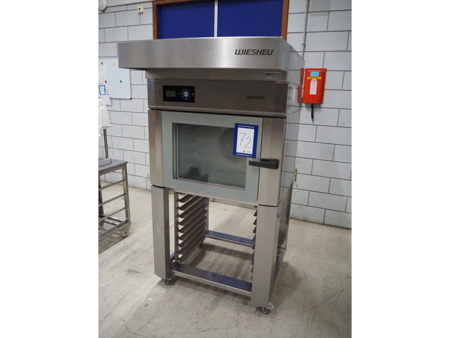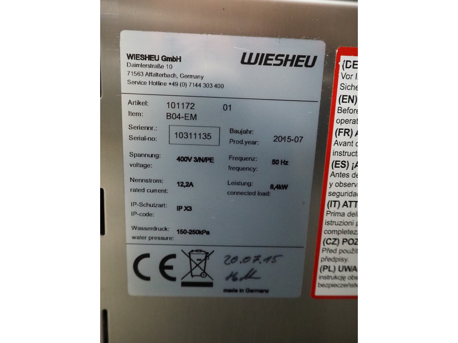 Wiesheu GmbH mobile oven, model: B04-EM, serial number: 10311135, year of construction: 07-2015, 400 V, 3 Ph, 50 Hz, 12.2 A, 8.4 kW, 5 floors, dimensions each floor: 610 mm x 400 mm, total dimensions: 1200 mm x 950 mm x 1800 mm.