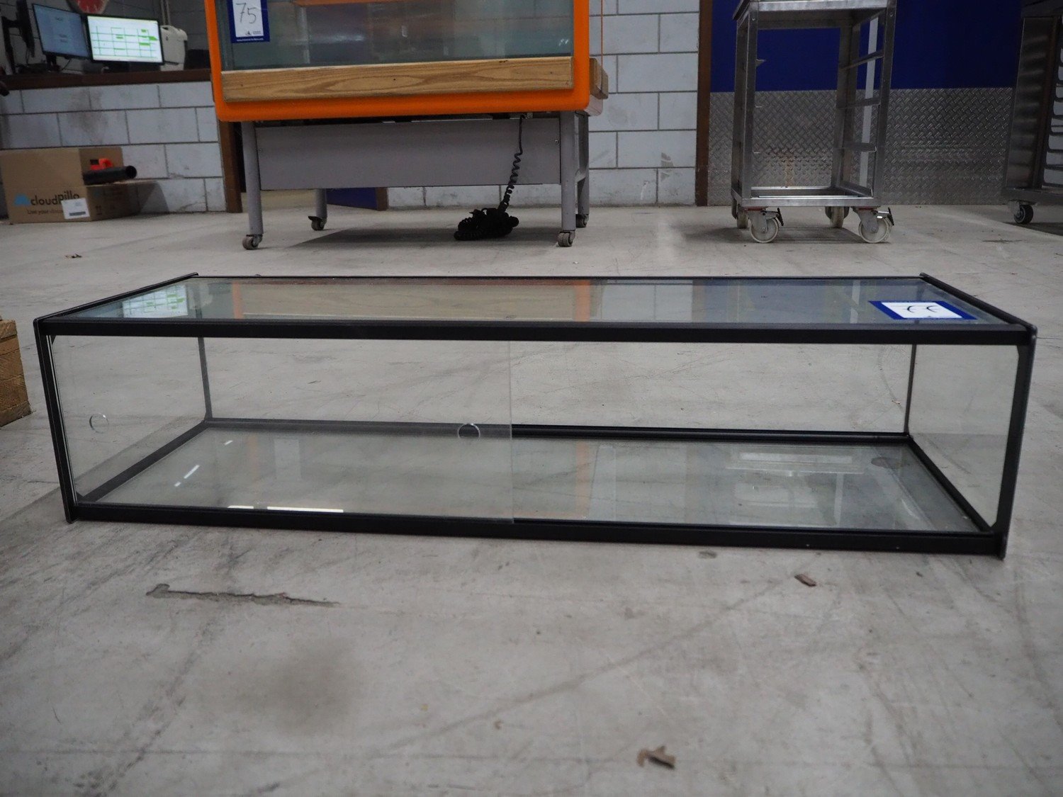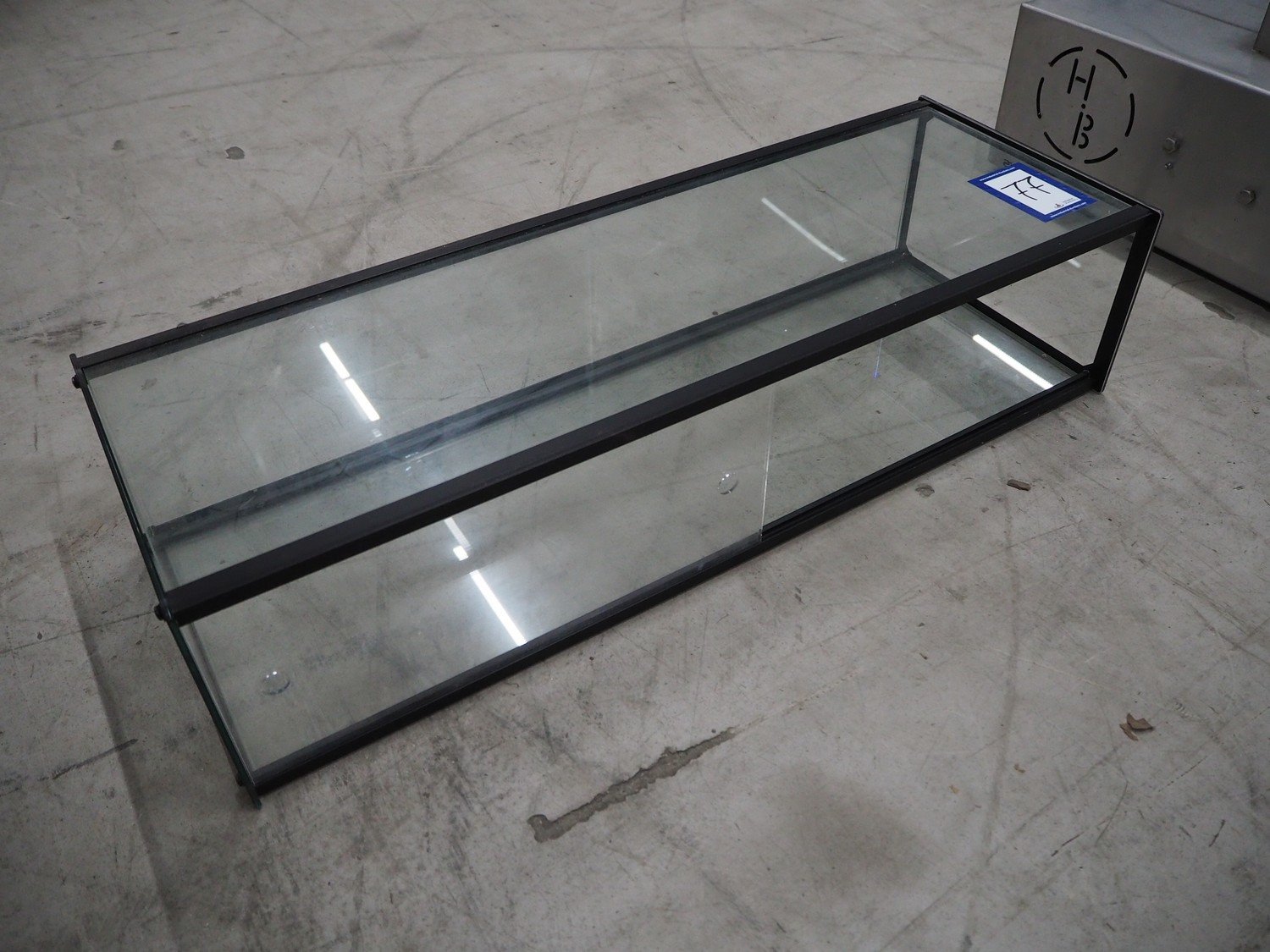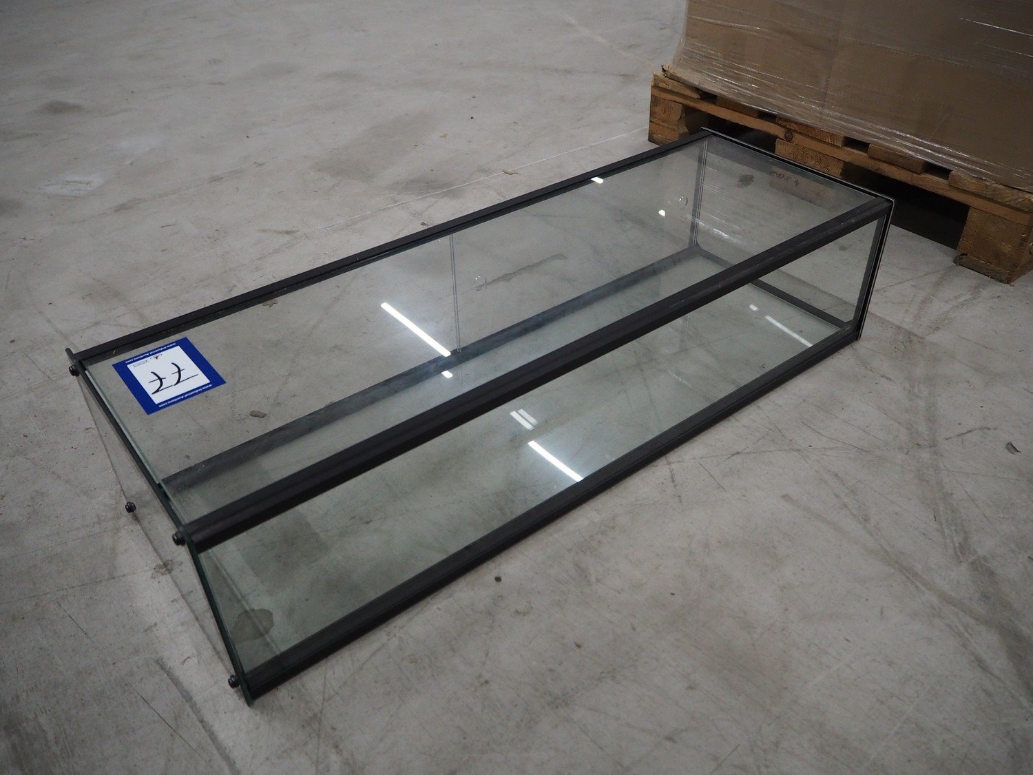 Glass showcase, dimensions: 920 mm x 330 mm x 220 mm.