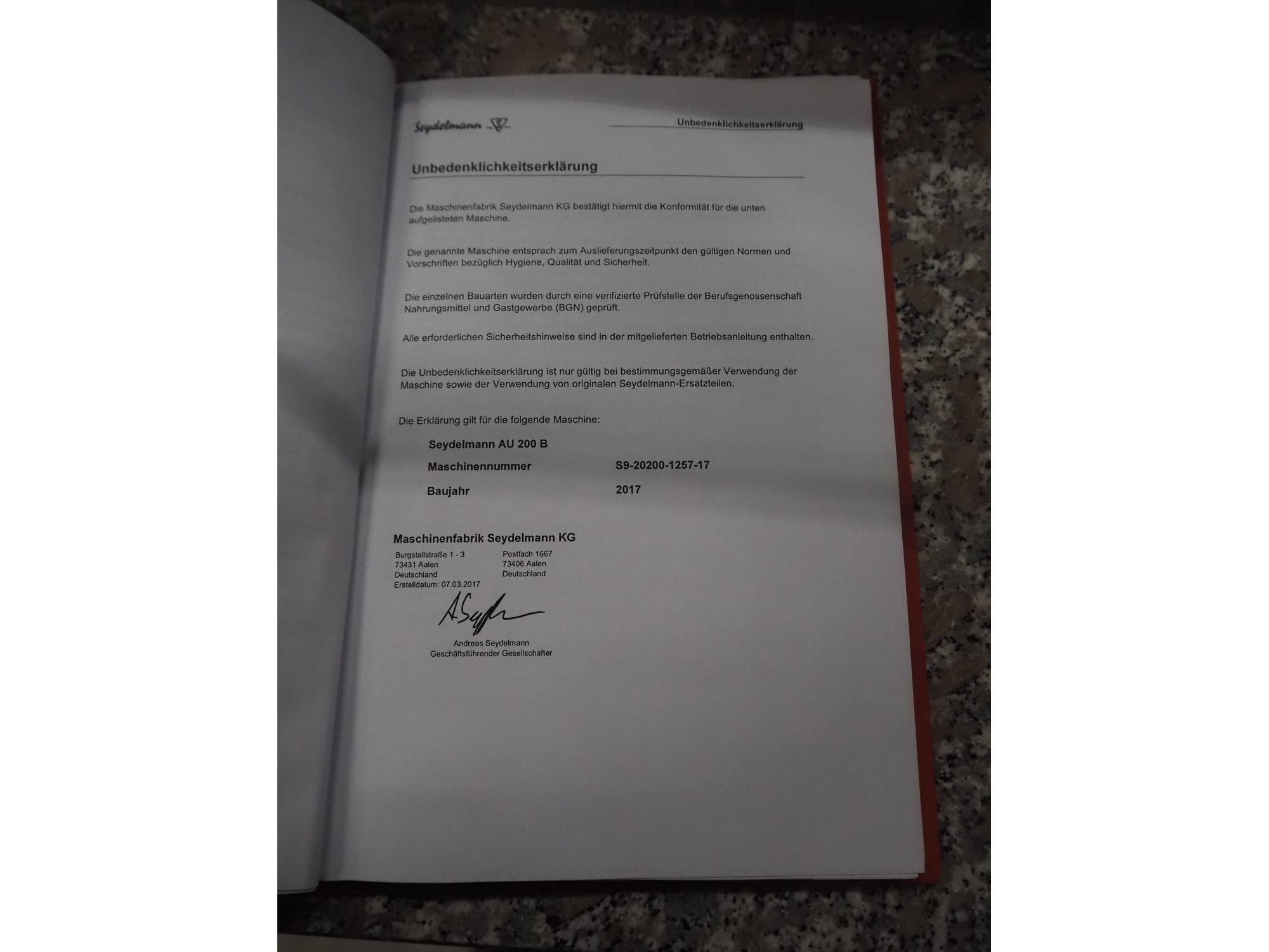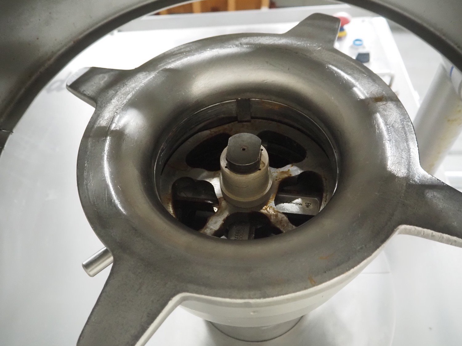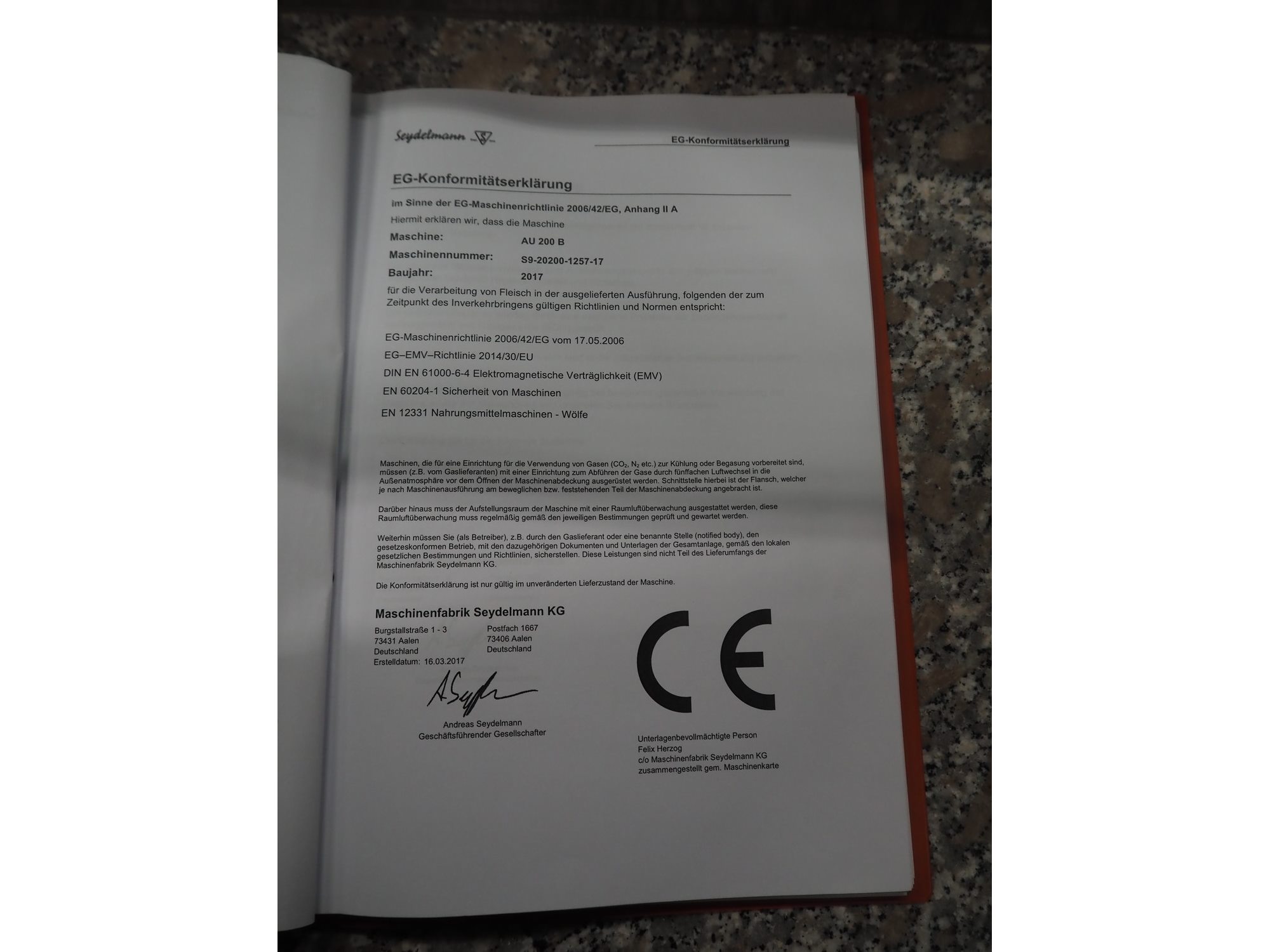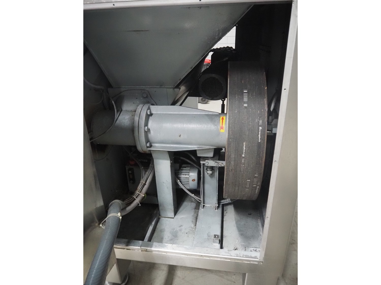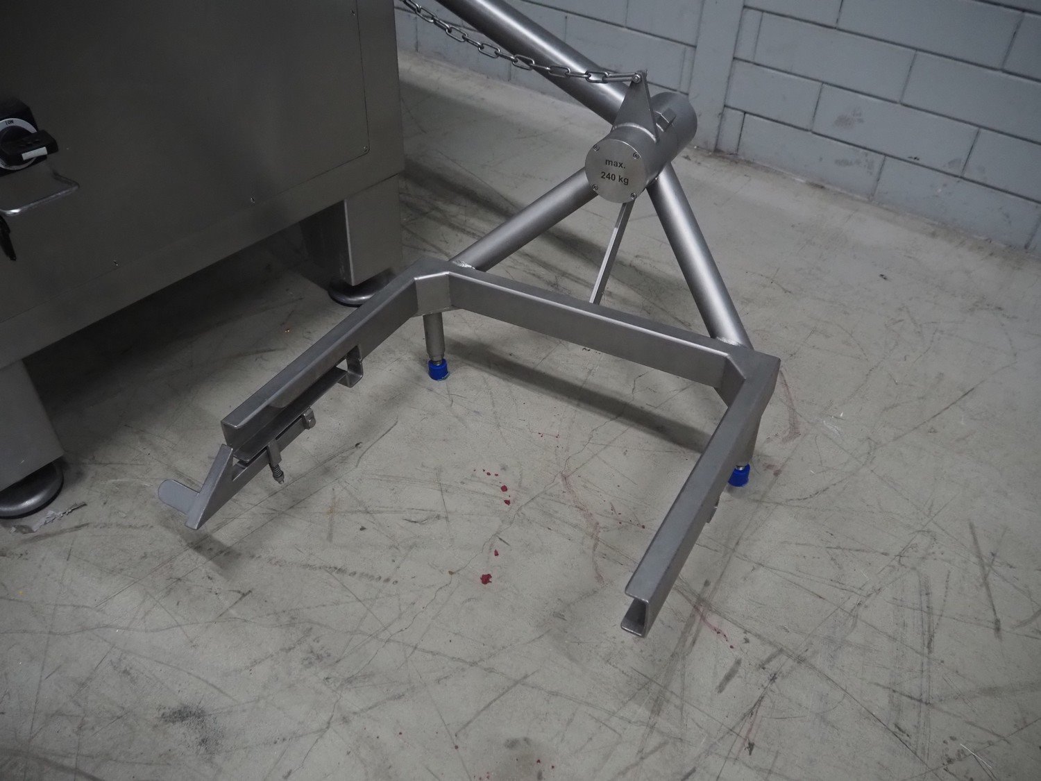 Seydelmann grinder with lifter for 200 liter meat bins, type: AU 200 B, machine number: S9-20200-1257-17, year of construction: 2017, 400 V, 50 Hz, 107 A, 57 kW, weight: 1900 kg, diameter plate: 200 mm, total dimensions: 2700 mm x 2130 mm x 1790 mm.
