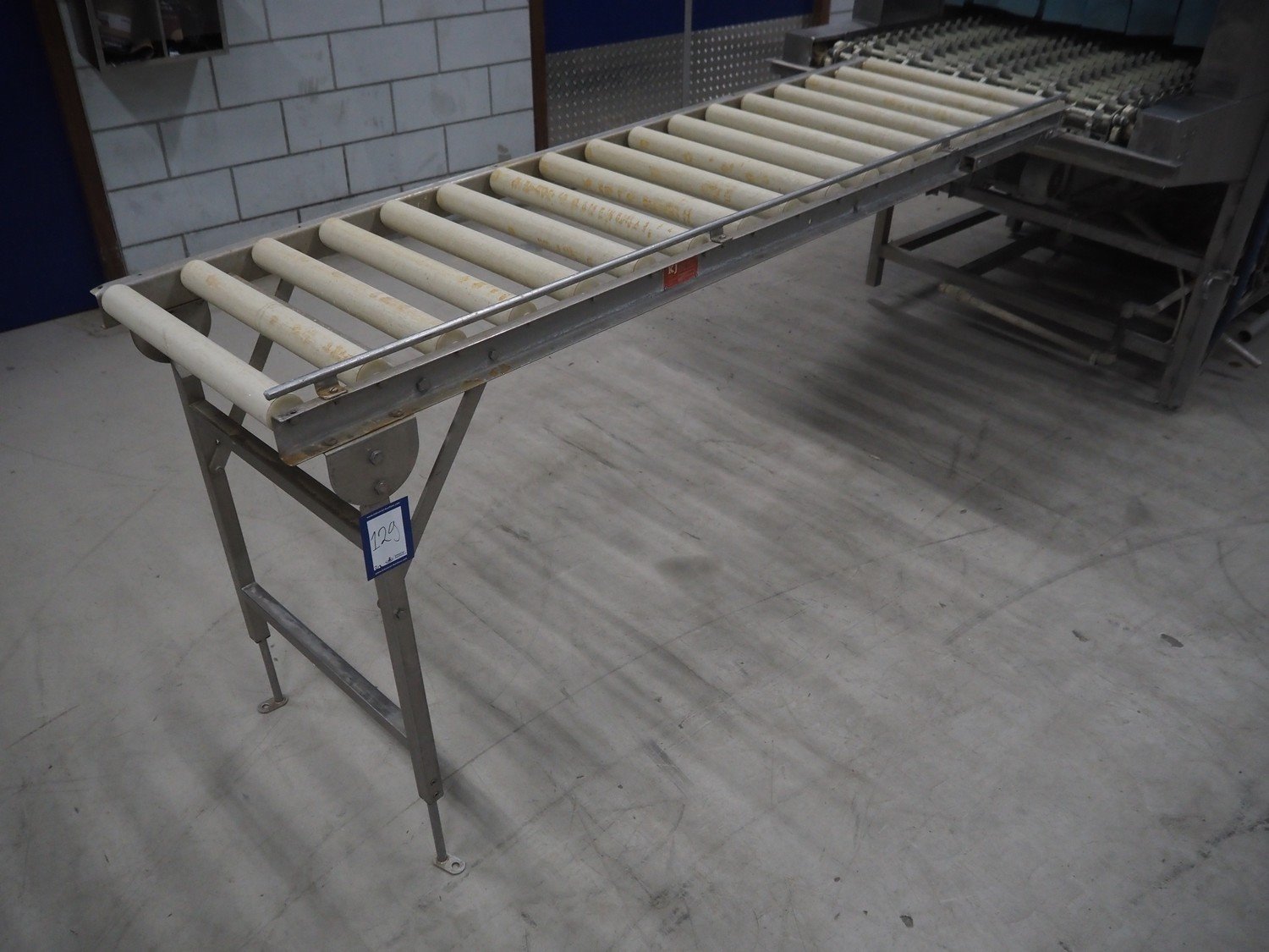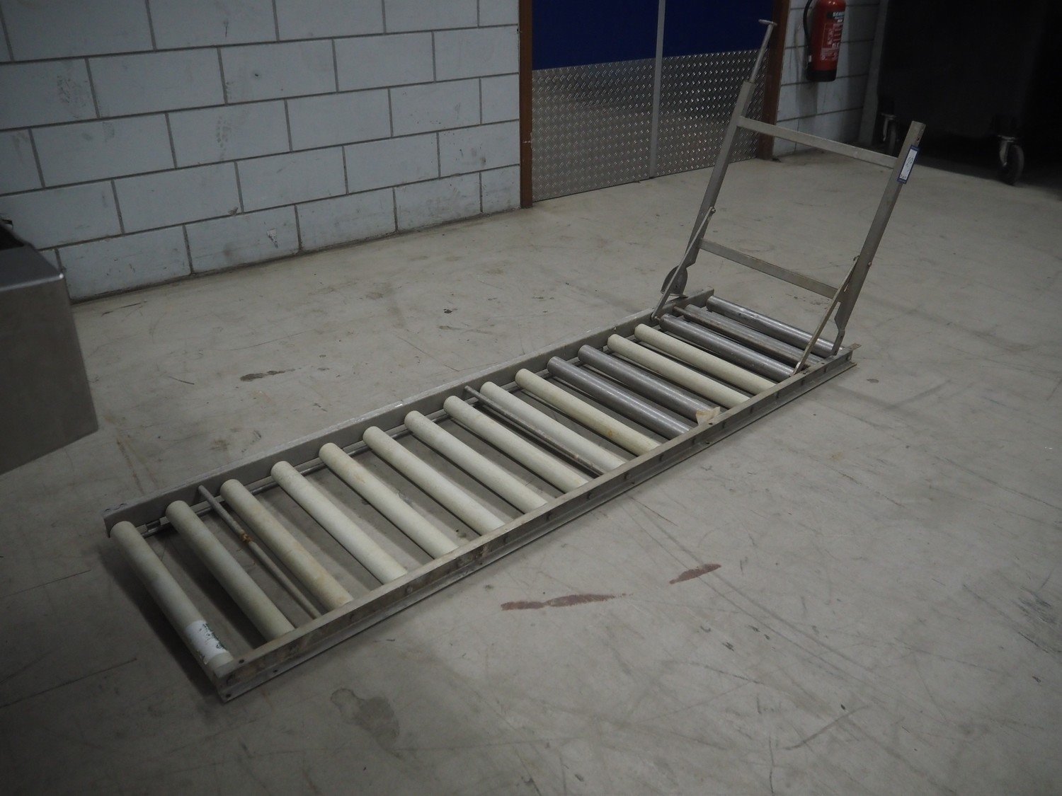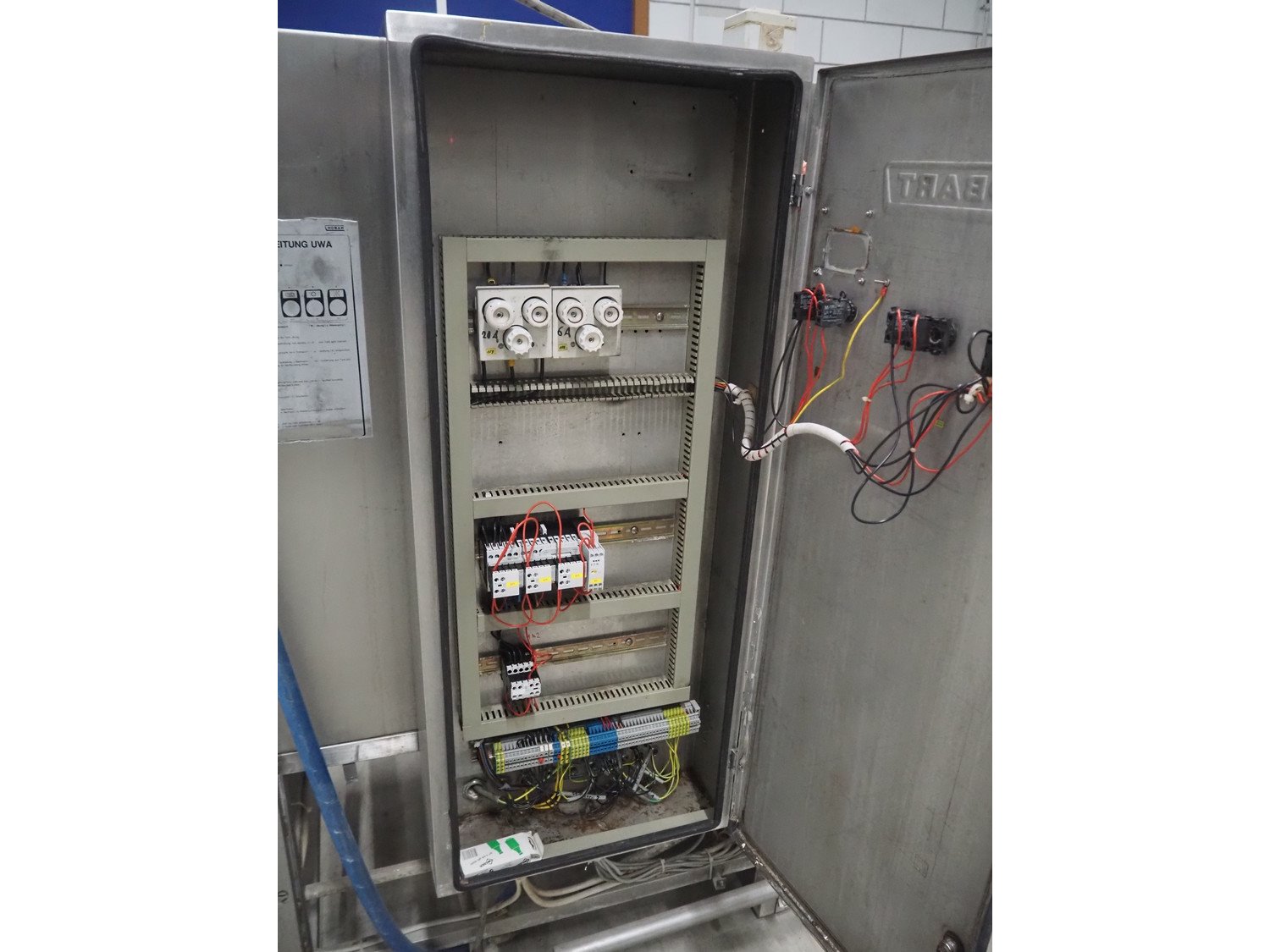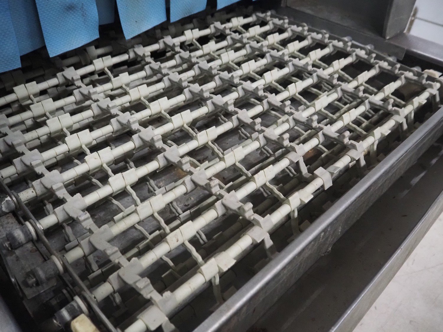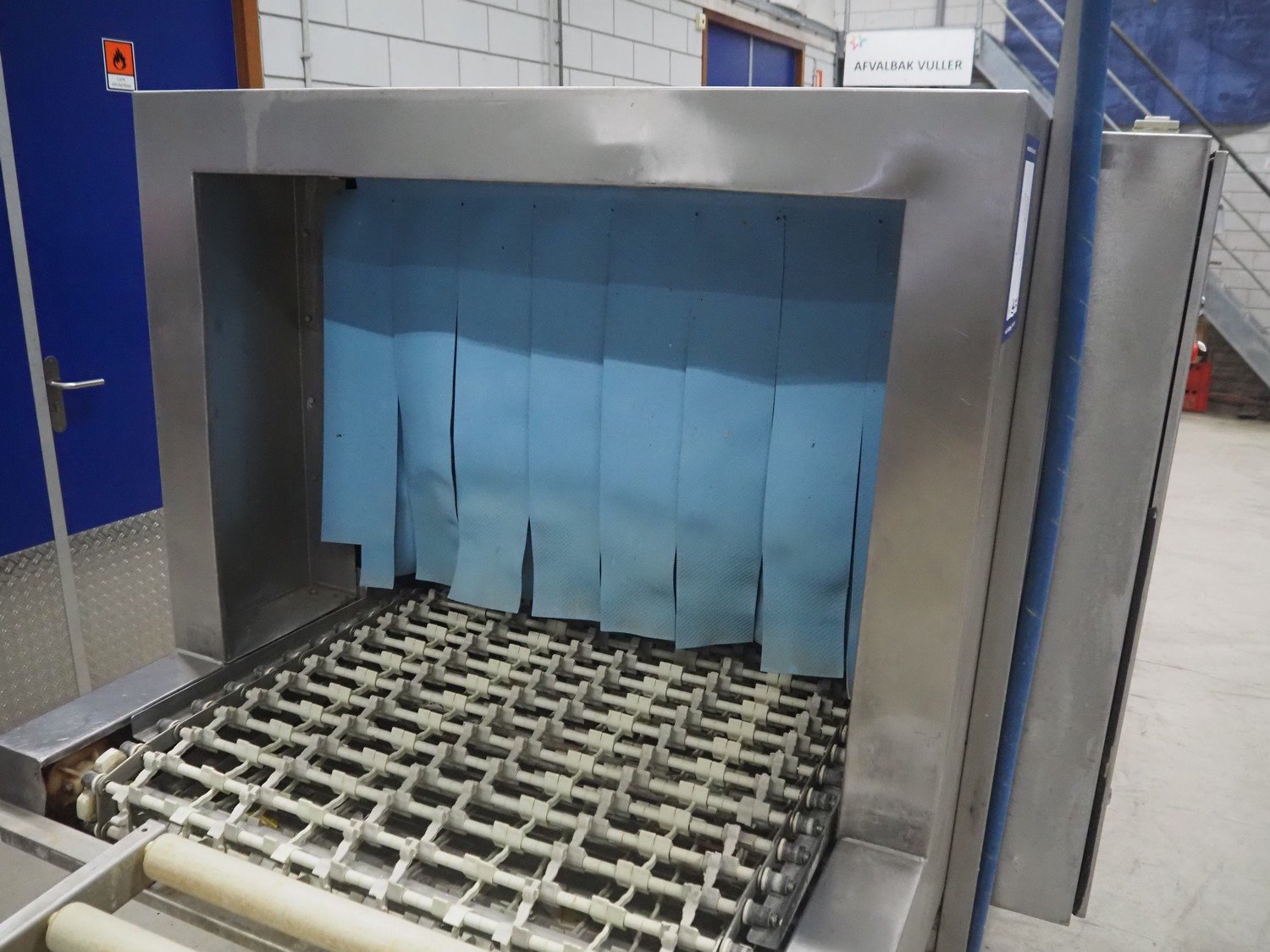 Hobart dishwasher, model: UWA 320, serial number: 86 16 0052, 380 V, 3 Ph, 50 Hz, 15.8 A, 7.75 kW, plastic belt, belt width: 770 mm, clearance: 900 mm x 660 mm, total dimensions: 3250 mm x 1340 mm x 1930 mm. Including in- and outfeed roller conveyor, plastic rollers, roller width: 500 mm, total dimensions roller conveyors: (2x) 2000 mm x 600 mm x 930 mm.