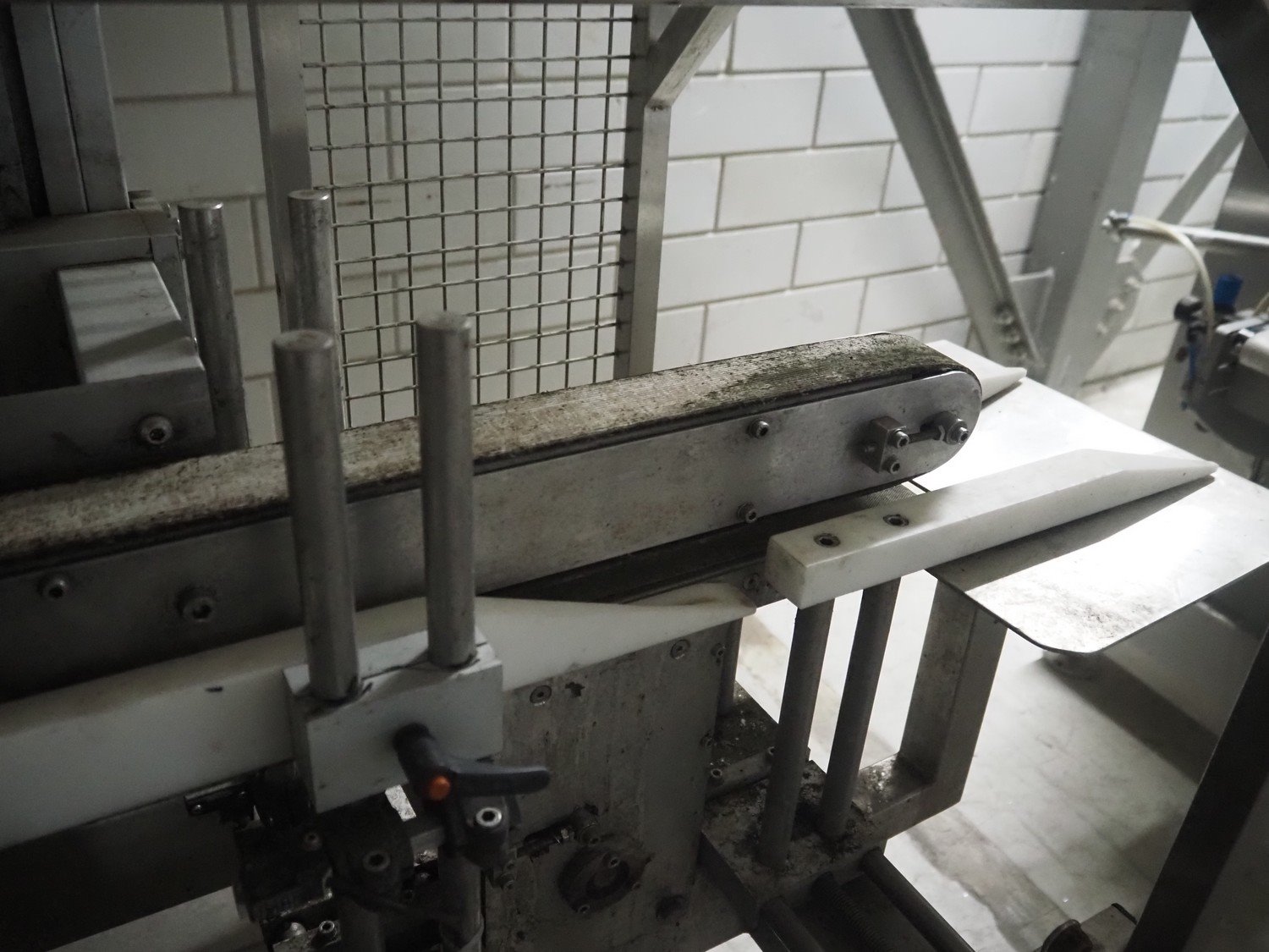 Herbert Industrial LTD pouch press, plastic belts, belt width: (2x) 45 mm and 300 mm, total dimensions: 1450 mm x 740 mm x 1850 mm.