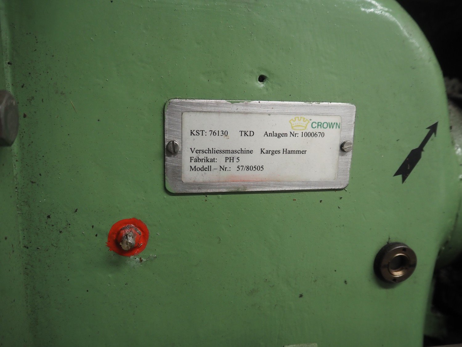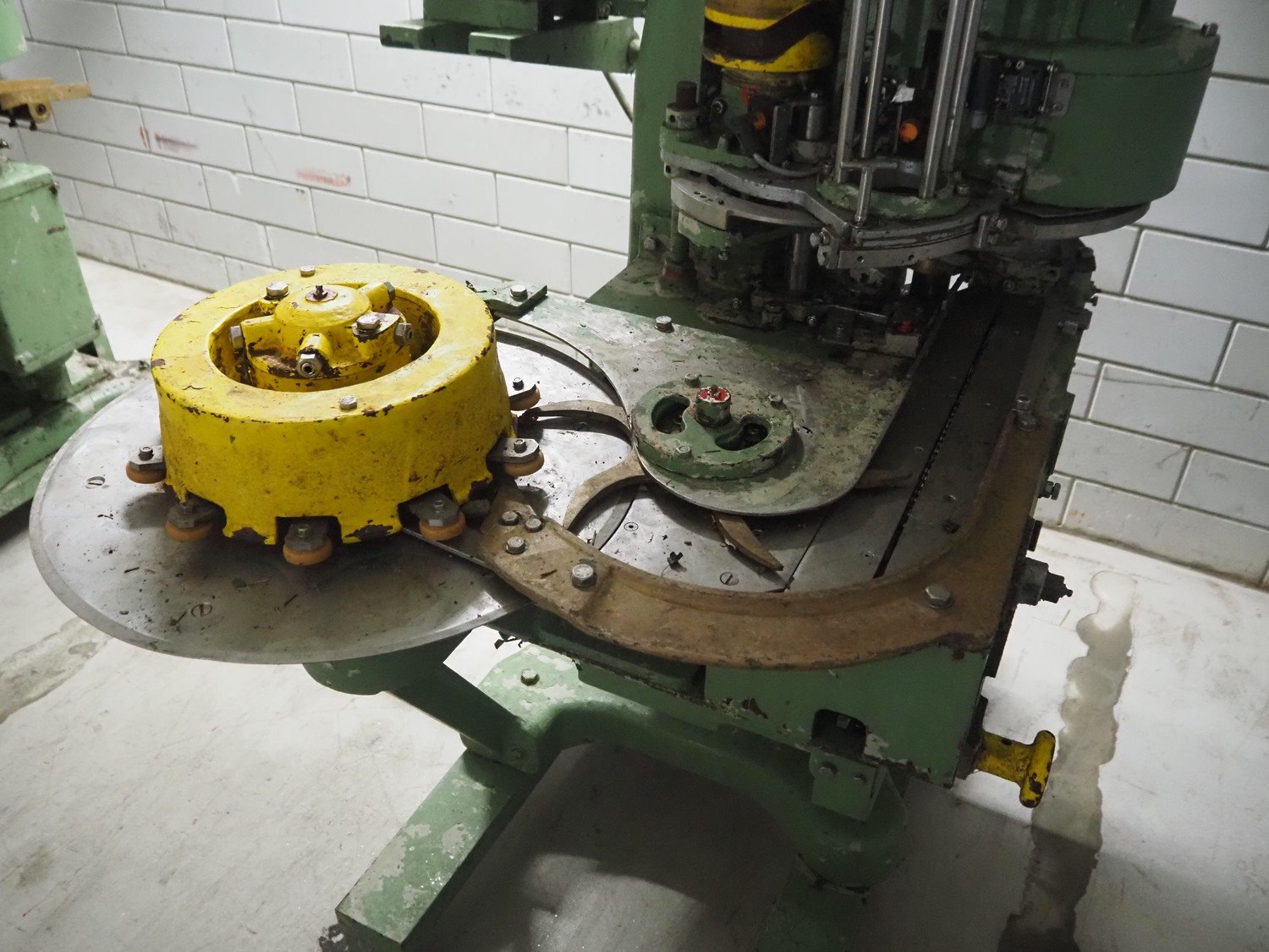 Krages Hammer can seamer, machine number: 57/80505/2, diameter lids: 110, total dimensions: 110 mm x 1450 mm x 2100 mm.