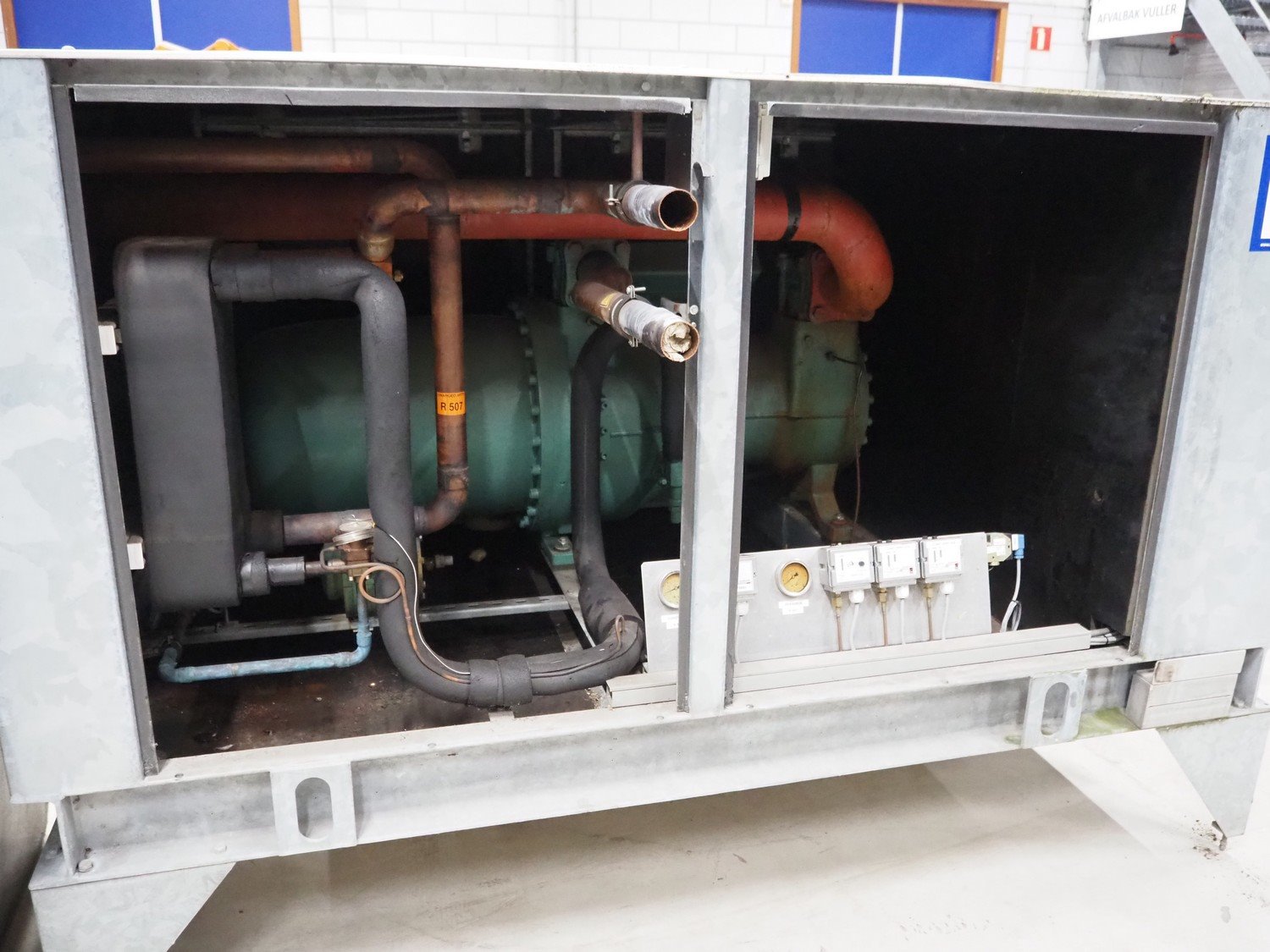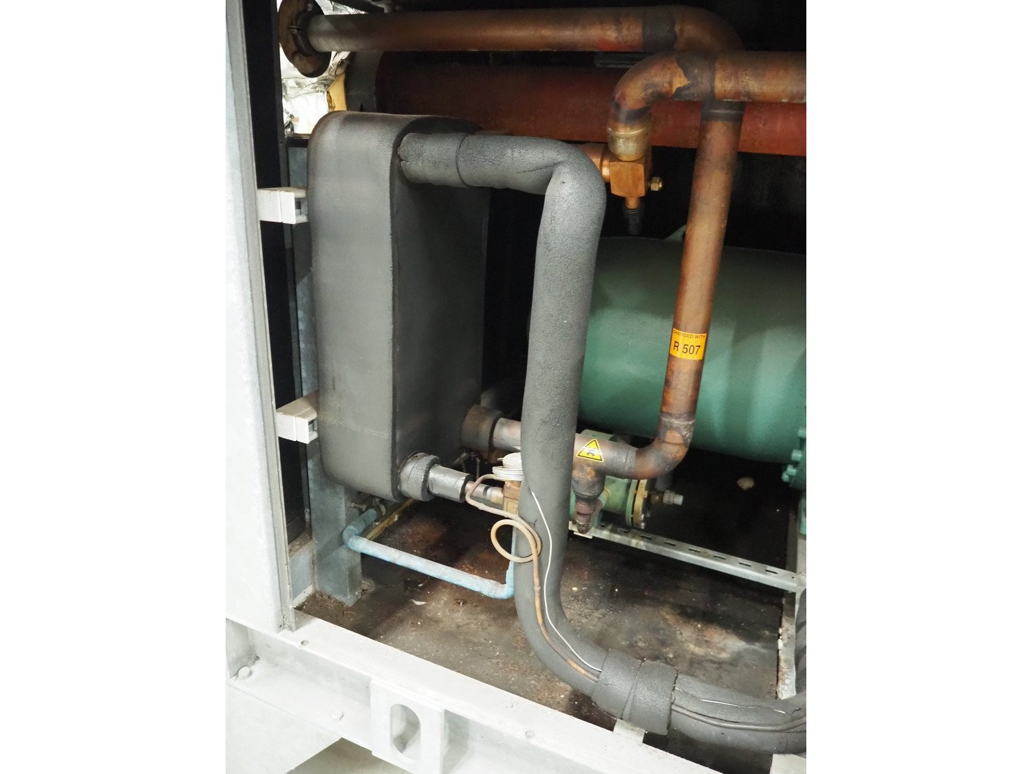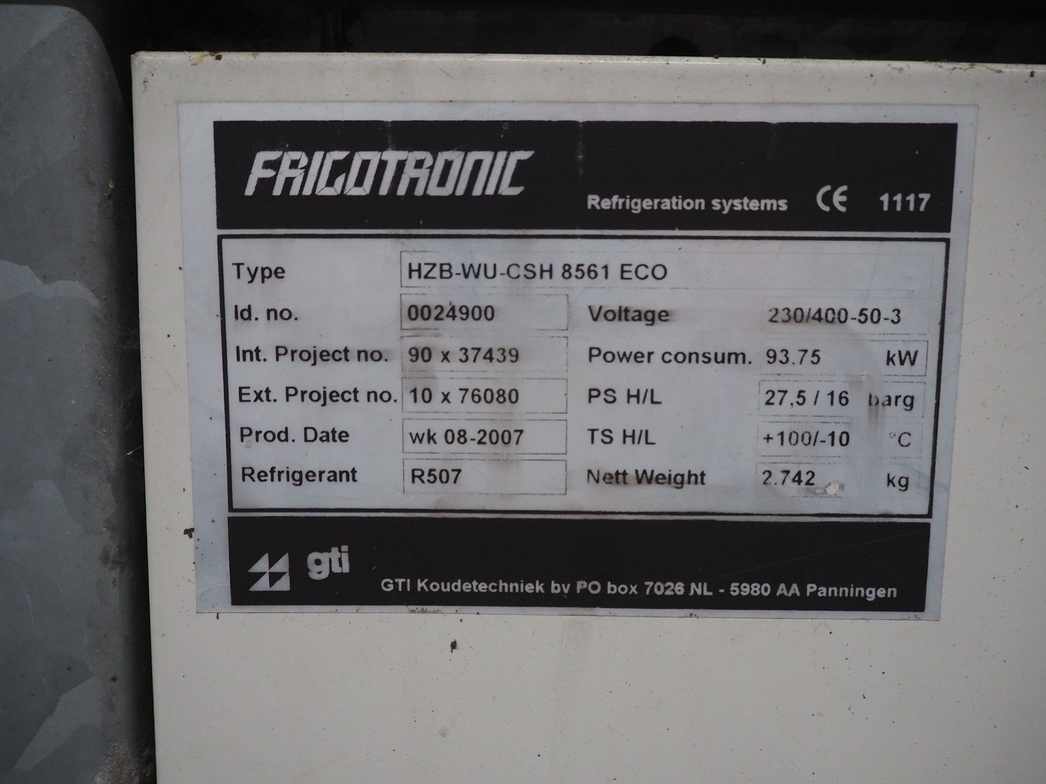 Frigotronic chiller, type: HZB-WU-CSH 8561 ECO, number: 0024900, year of construction: 08/2007, 230/400 V, 3 Ph, 50 Hz, 93.75 kW, weight: 2.742 kg, refrigerant: R507/247.65 kg, dimensions: 2500 mm x 1500 mm x 1550 mm.