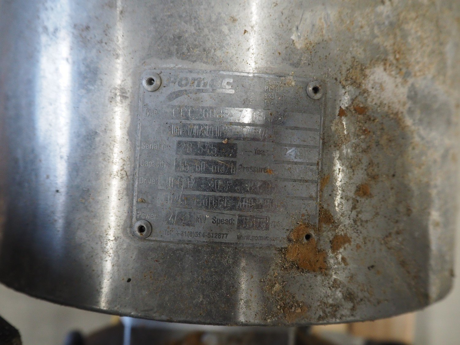 Pomac centrifugal pump, dimensions: 600 mm x 350 mm x 450 mm.