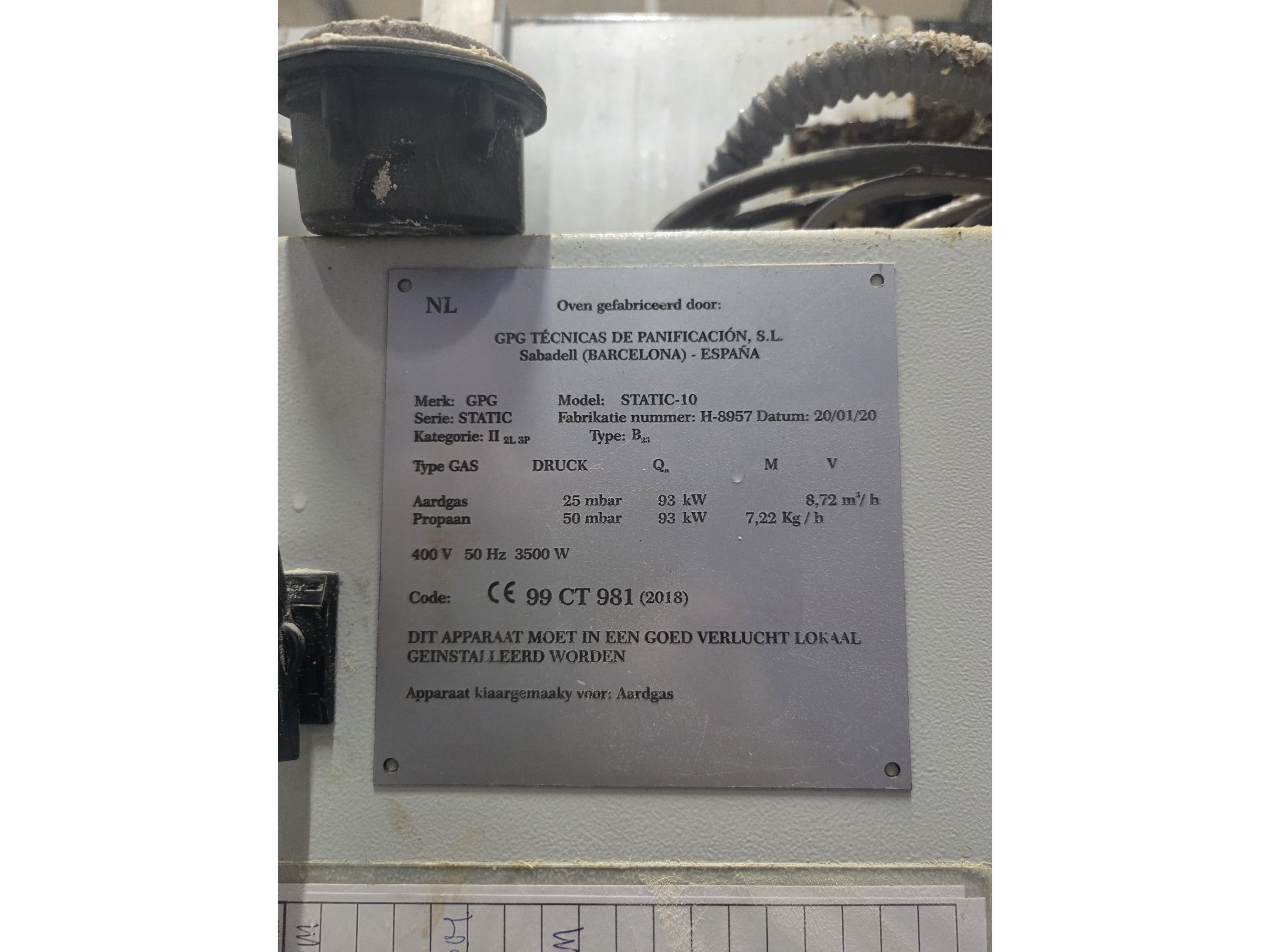 Grupo Prat Gouet oil-fired multi deck oven, model: STATIC-10, number: H-8957, year of construction: 20/01/20, 400 V, 50 Hz, 3500 W, 10 decks, dimensions decks: 1280 mm x 850 mm, Weishaupt oil burner, model: WG20N/1-C Z-LN, serial number: 4057303720, capacity: 35-200 kW, dimensions oil burner: 1650 mm x 1400 mm x 2500 mm, total dimensions: 2400 mm x 1470 mm x 2300 mm. Including various part and oil vessel.