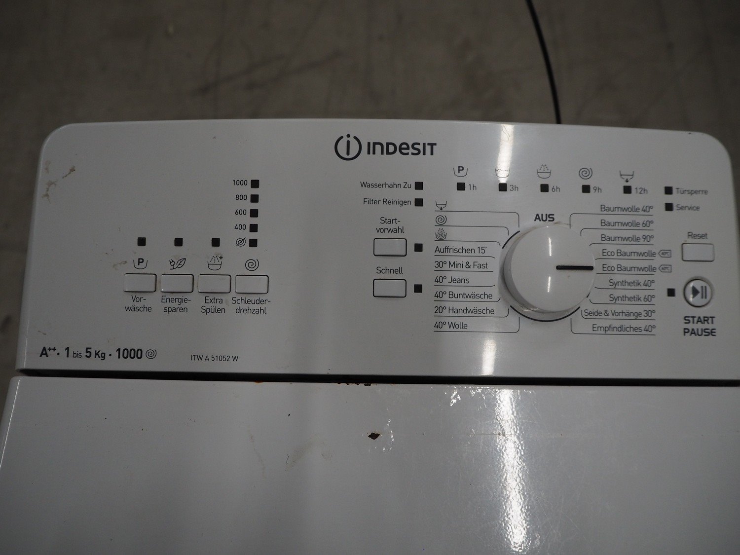 Indesit washing machine, model: ITWA 51052 W, serial number: 503190012, washing capacity: 5 kg, drum volume: 42 liter, 220-230 V, 50 Hz, 2100 W, dimensions: 650 mm x 400 mm x 900 mm.