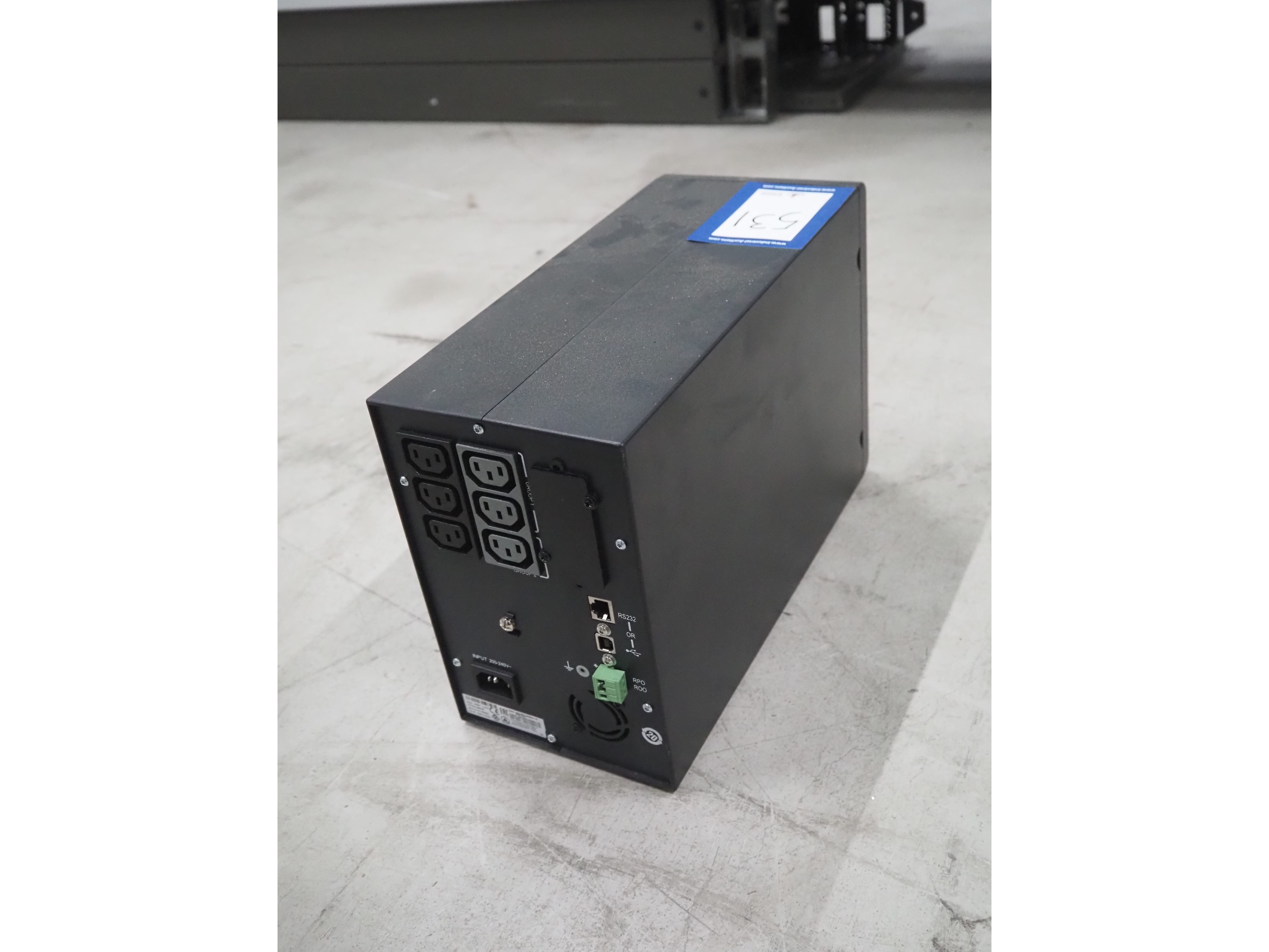 Eaton uninterruptible power supply, model: 5P850i, serial number: G111G04044, 200-240 V, 50/60 Hz, dimensions: 350 mm x 150 mm x 230 mm.