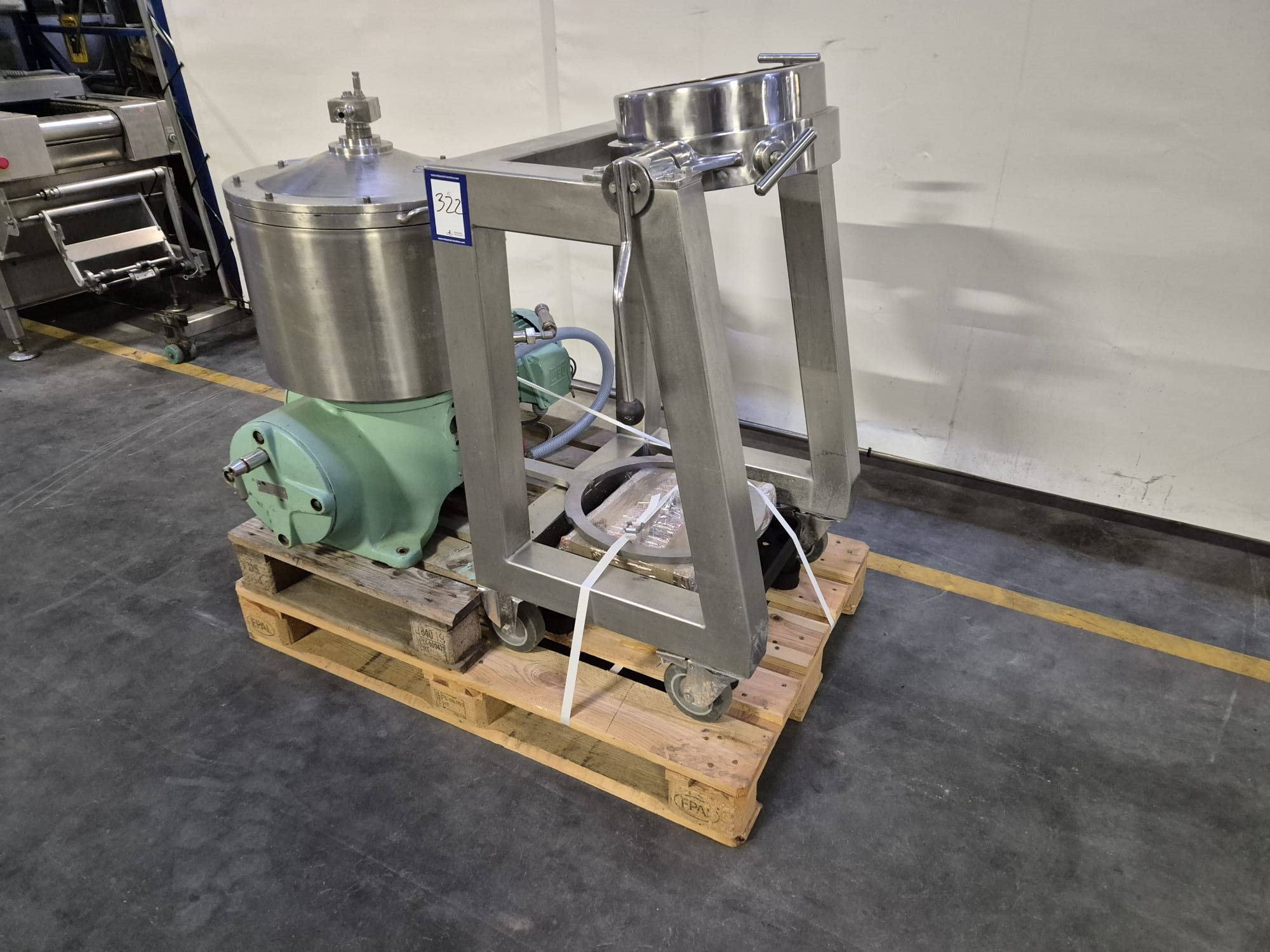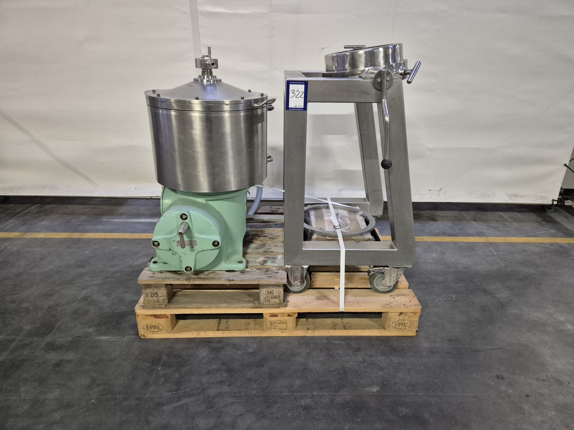 Westfalia separator, inside dimensions: 360 mm x 280 mm, total dimensions: 1000 mm x 500 mm x 1000 mm. With trolley, dimensions: 550 mm x 650 mm x 1200 mm.