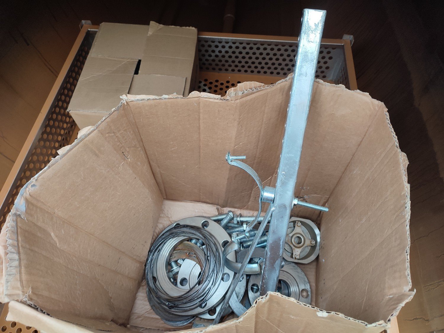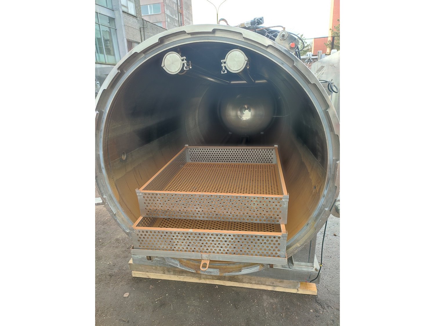 Zhucheng Tianshun Machinery Co., Ltd. autoclave, number: R2022-309, year of construction: 01.06.2022, pressure: 0.35 Mpa, temperature: 147°C, volume: 4,47 m³, weight: 1100 kg, top tank dimensions: 4200 mm x 1700 mm x 1950 mm, bottom tank dimensions: 4300 mm x 1600 mm x 1800 mm, s/s tank dimensions: 1800 mm x 1800 mm x 3000 mm. Including pallet with parts, dimensions: 2700 mm x 3000 mm x 1000 mm.
