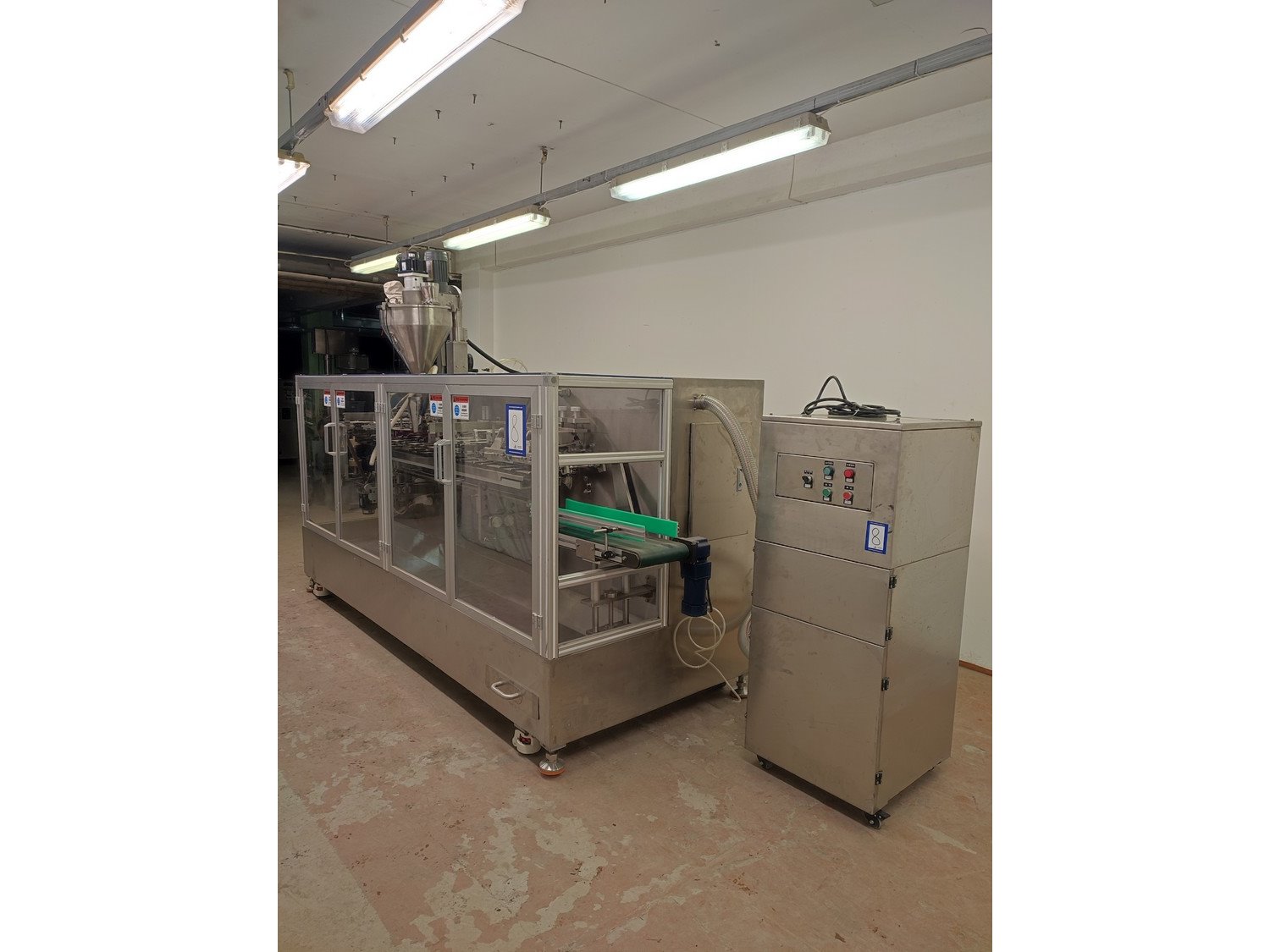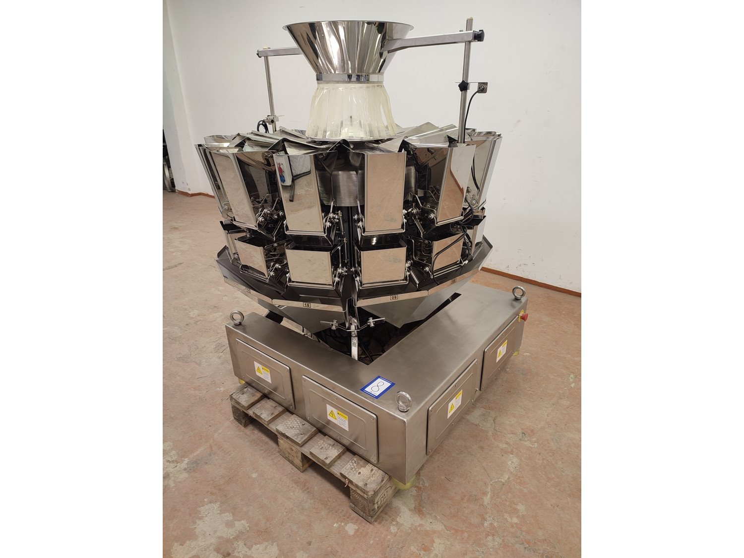 Shanghai Chengting Packing Machine Co.,Ltd weiging- and packaging line, consisting of: Elevating belt, dimensions: 2000 mm x 900 mm x 3850 mm; Multihead weigher dimensions: 1300 mm x 1300 mm x 1500 mm; S/s platform, dimensions: 2000 mm x 3100 mm x 2600 mm; Dispenser, dimensions: 1200 mm x 530 mm x 1180 mm; Shanghai Chengting Packing Machine Co.,Ltd horizontal packing machine, type: CTS2600, year of construction: 2022.7.30, 380 V, weight: 4 T, speed: 20-40 r/min, dimensions: (1x) 2450 mm x 1300 mm x 1500 mm, (1x): 3700 mm x 1300 mm x 2200 mm, (1x): 3450 mm x 1300 mm x 2300 mm; Dust collector, dimensions: 650 mm x 650 mm x 1400 mm.