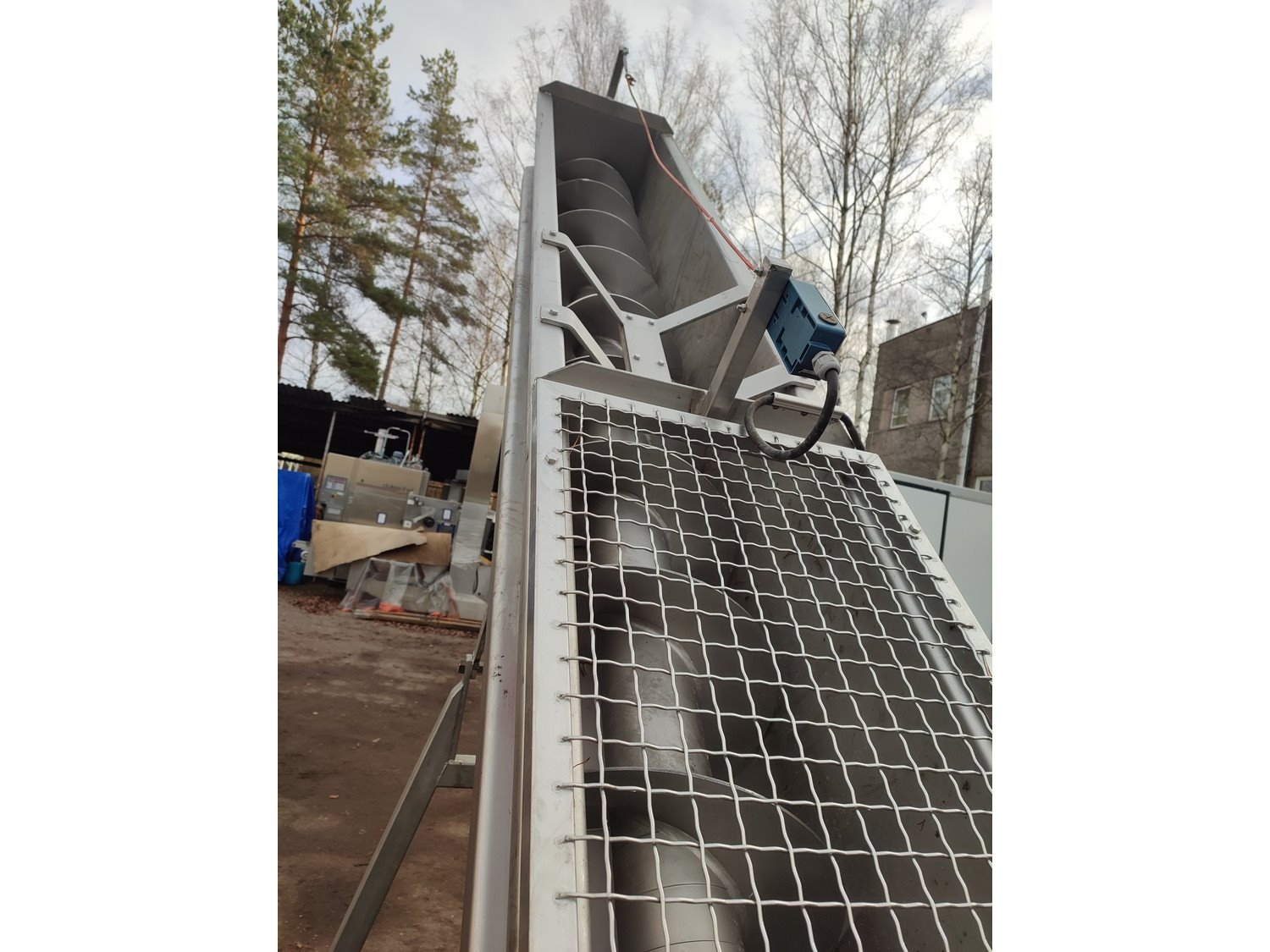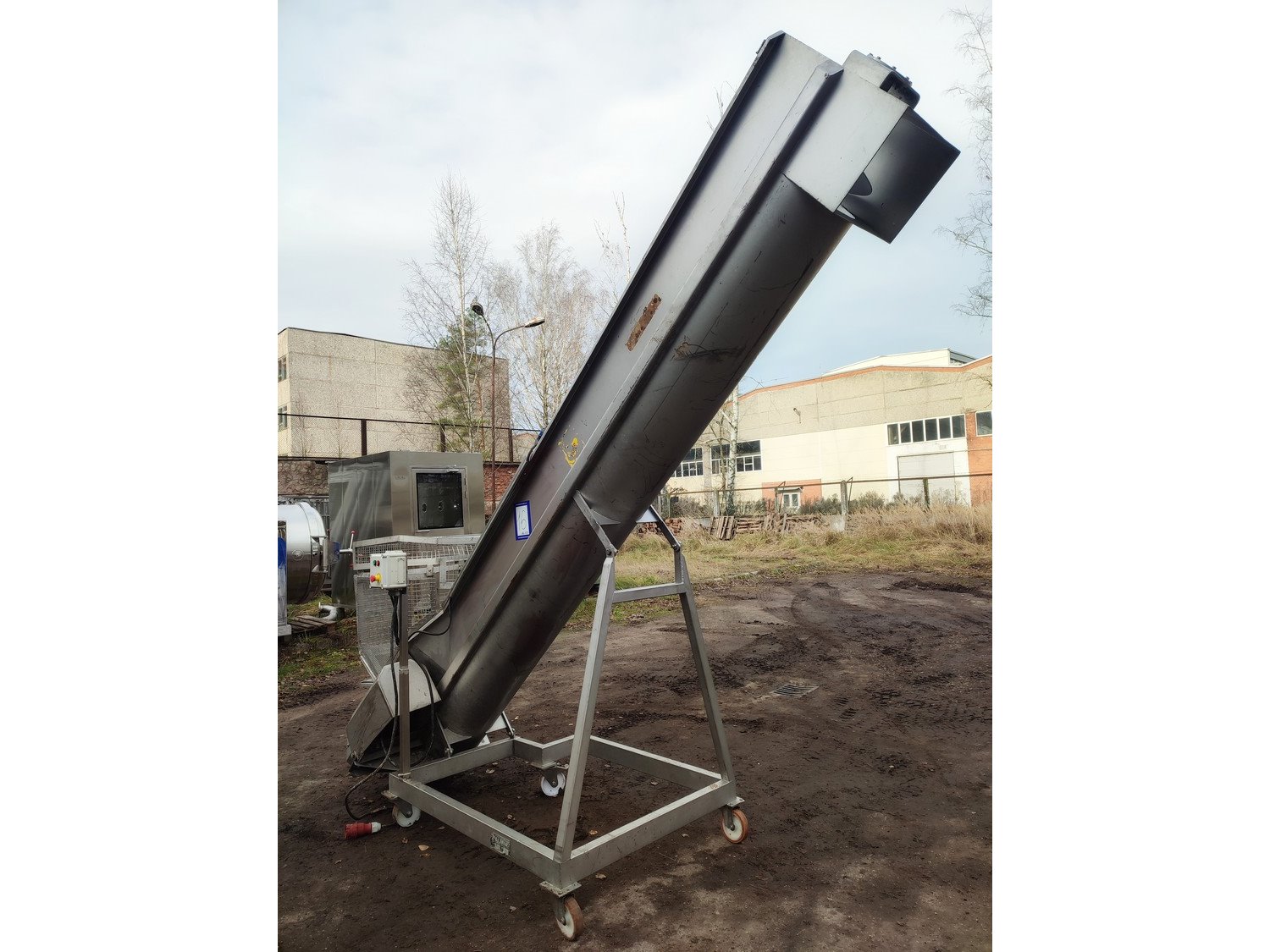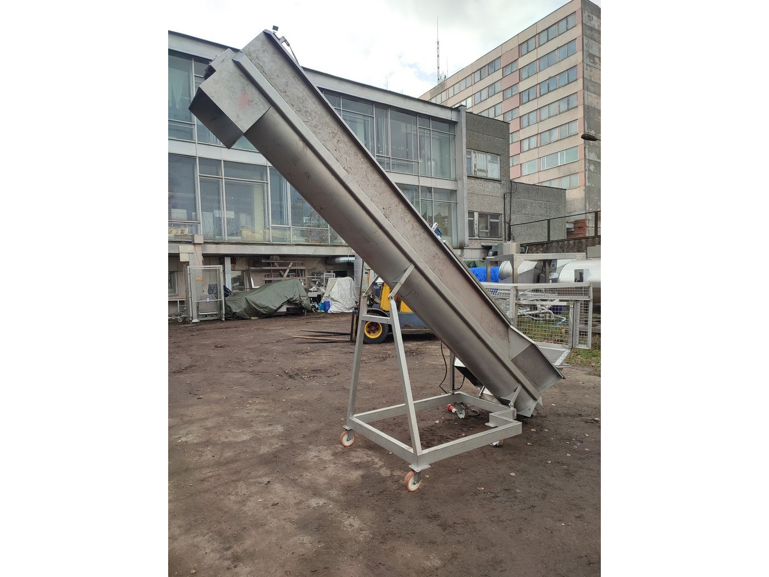Palmia mobile elevating screw, type: SKIT 400, number: 4930, s/s screw, screw diameter: 400 mm, elevating height: 2600 mm, total dimensions: 3900 mm x 1300 mm x 3400 mm.