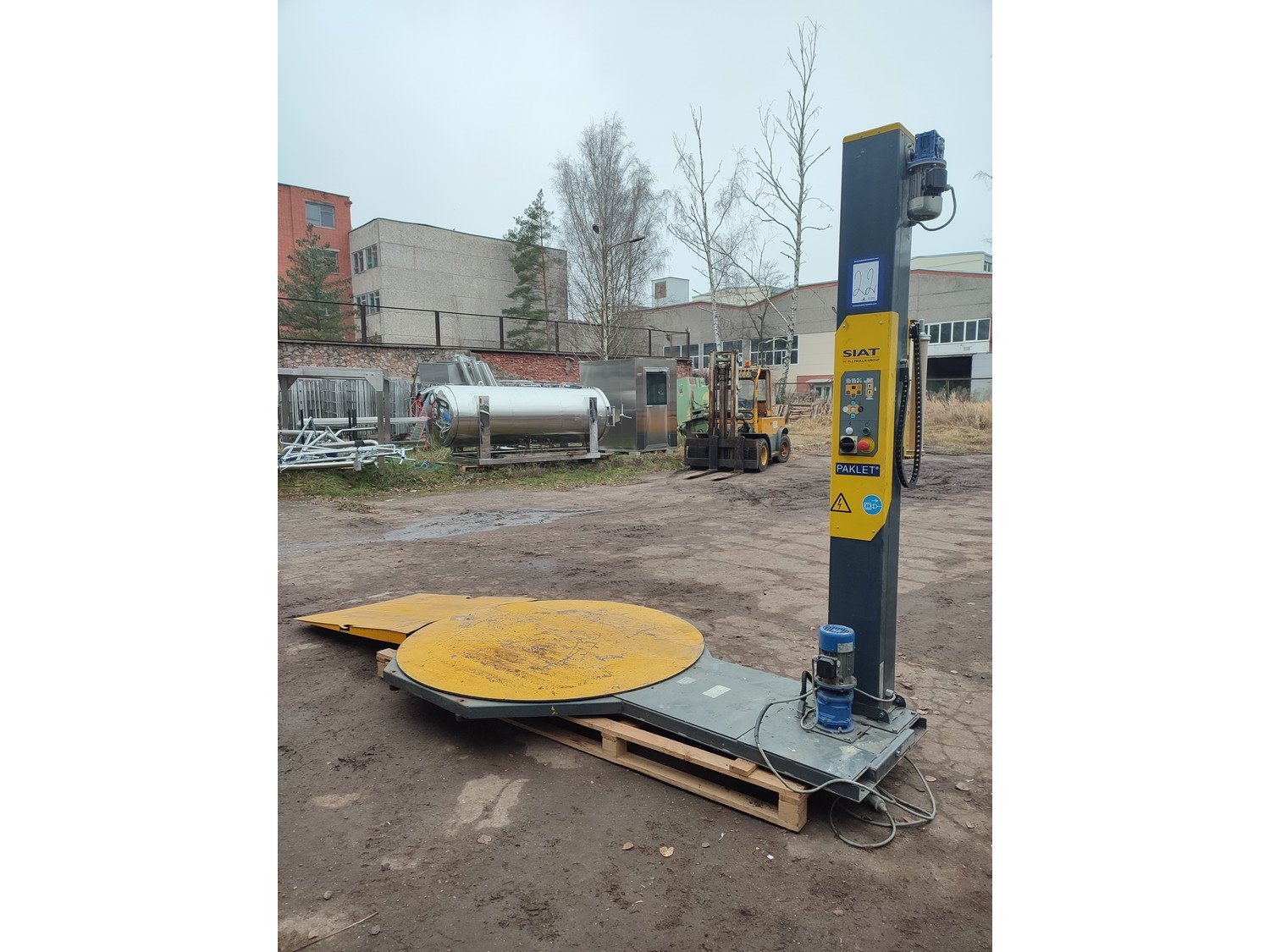 Siat pallet wrapper, model: SW1, type: 16-M-2BF, serial number: 52322, year of construction: 2004, 400 V, 3 Ph, 50 Hz, 2 A, 600 W, dimensions: 4020 mm x 1650 mm x 2410 mm.
