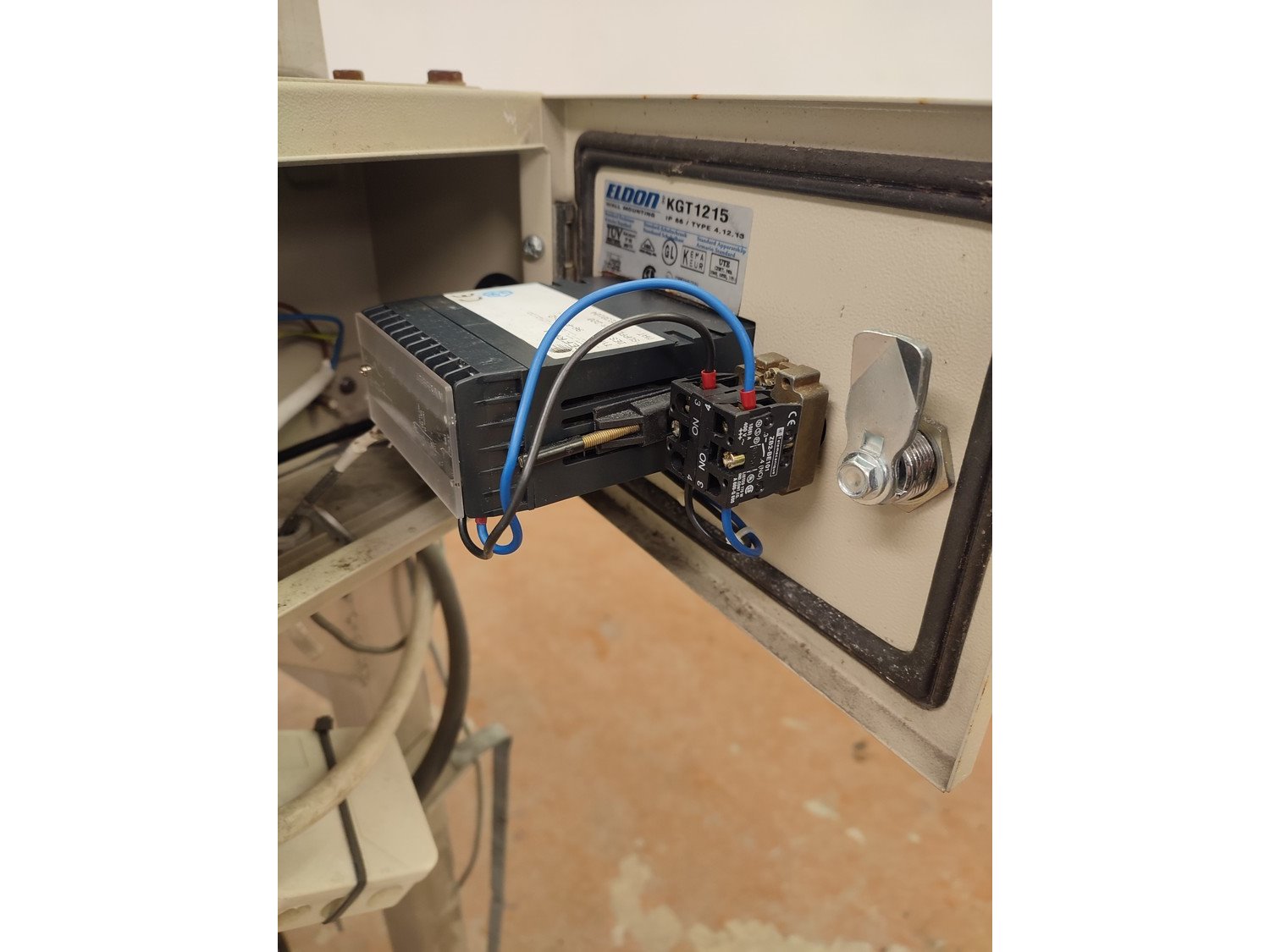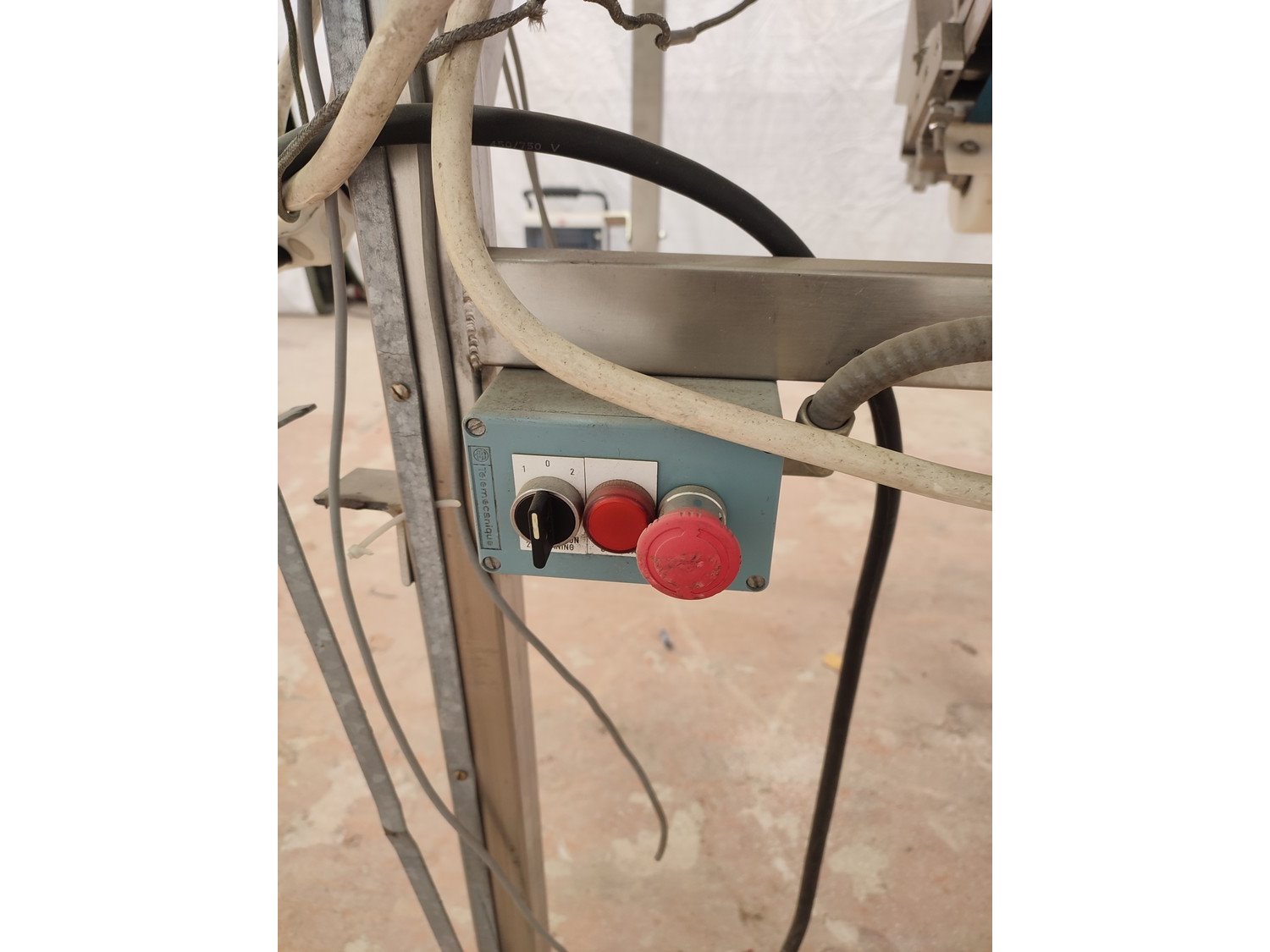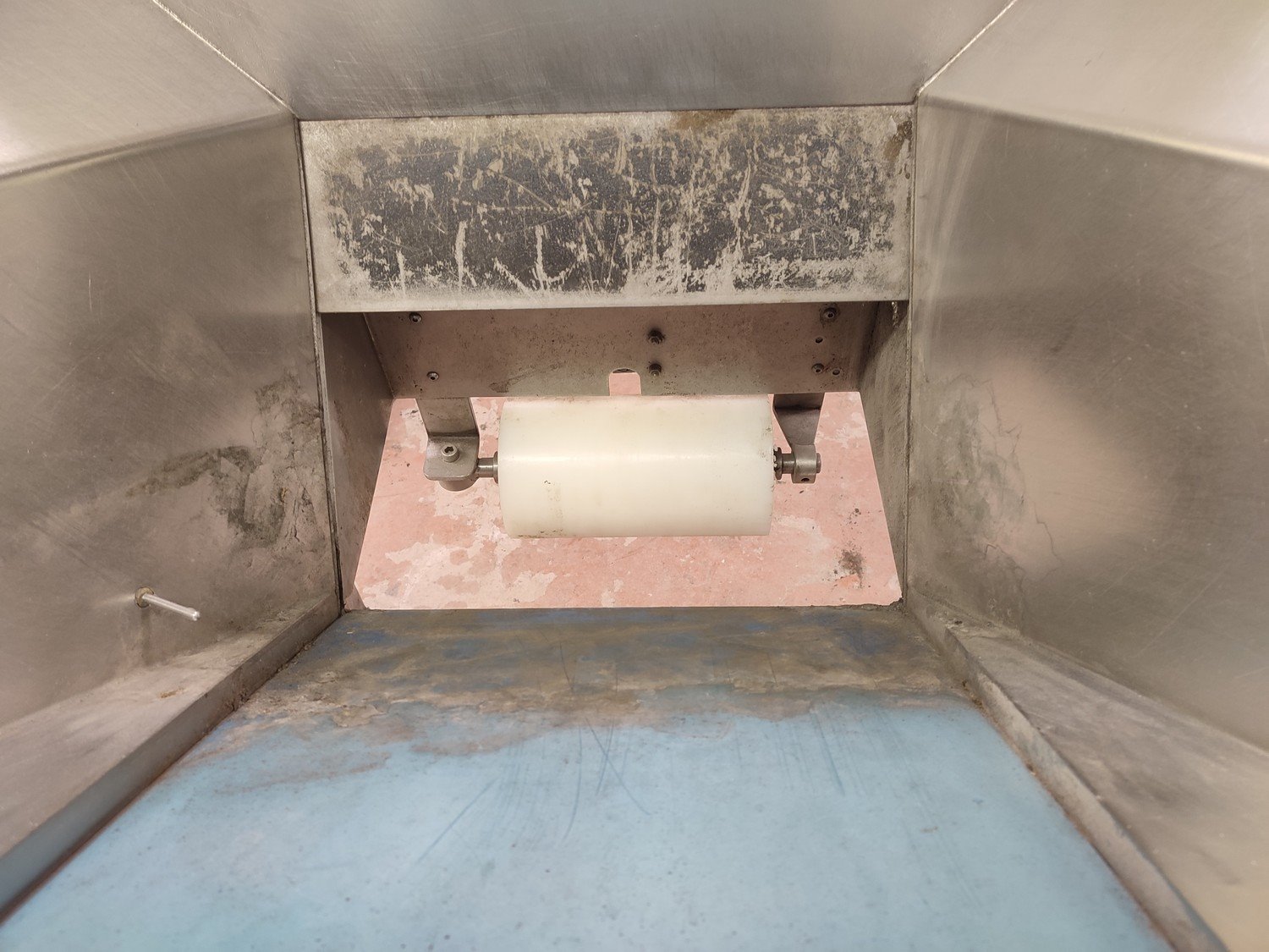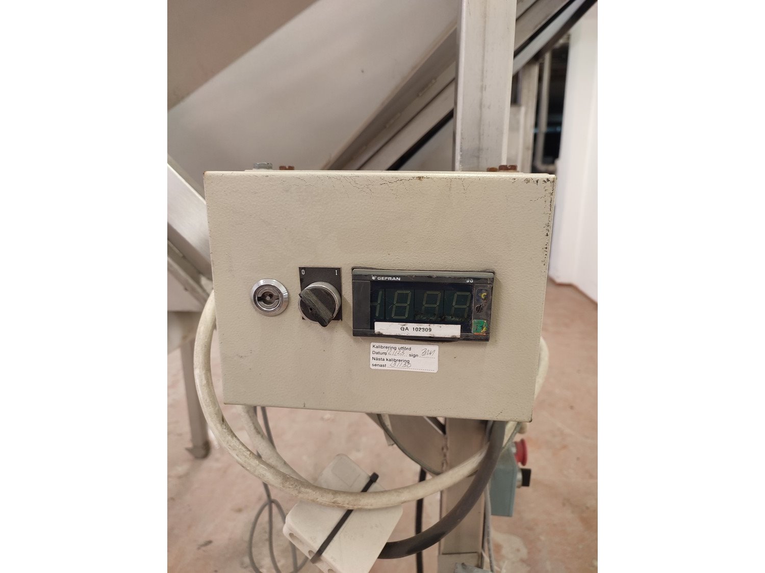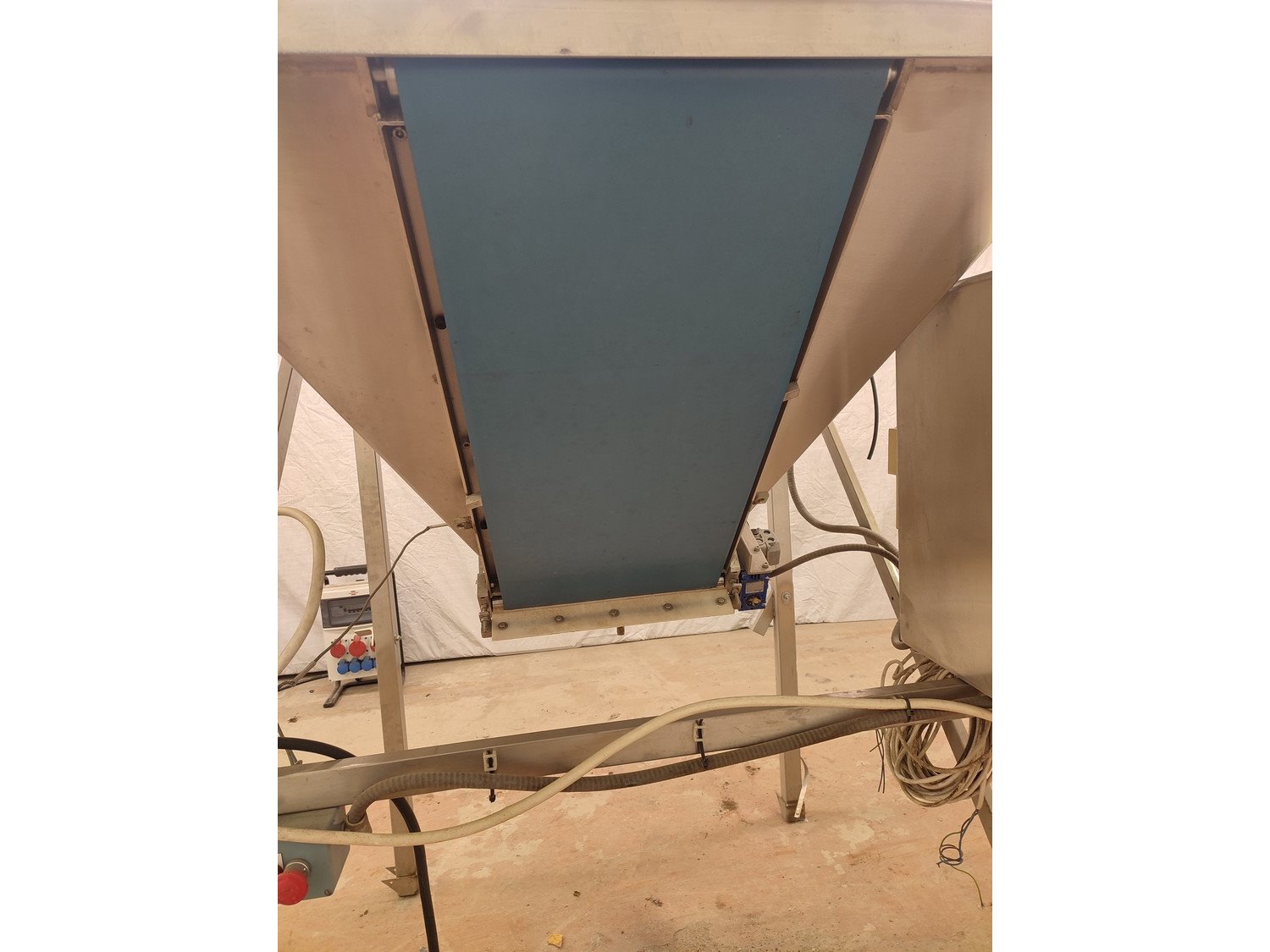Seewer Rondo hopper with transport belt, model: HWTS, machine number: A72222018, belt width: 415 mm, dimensions: 1400 mm x 1600 mm x 1840 mm.
