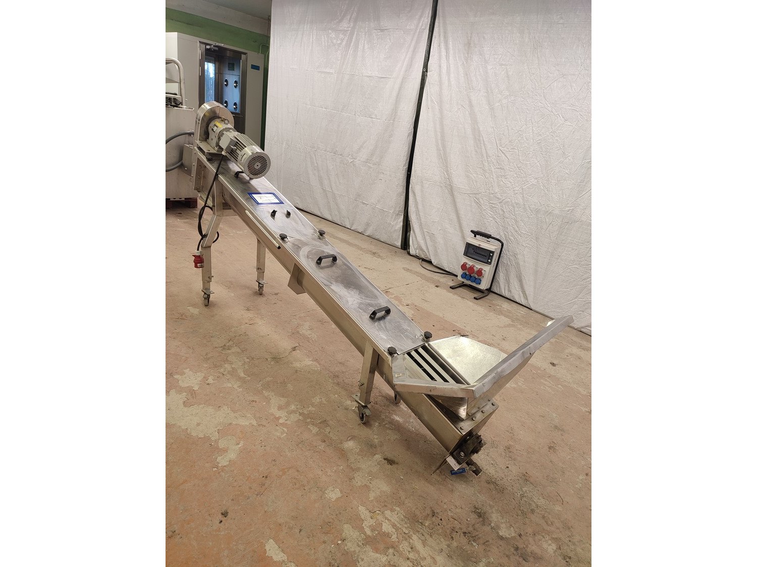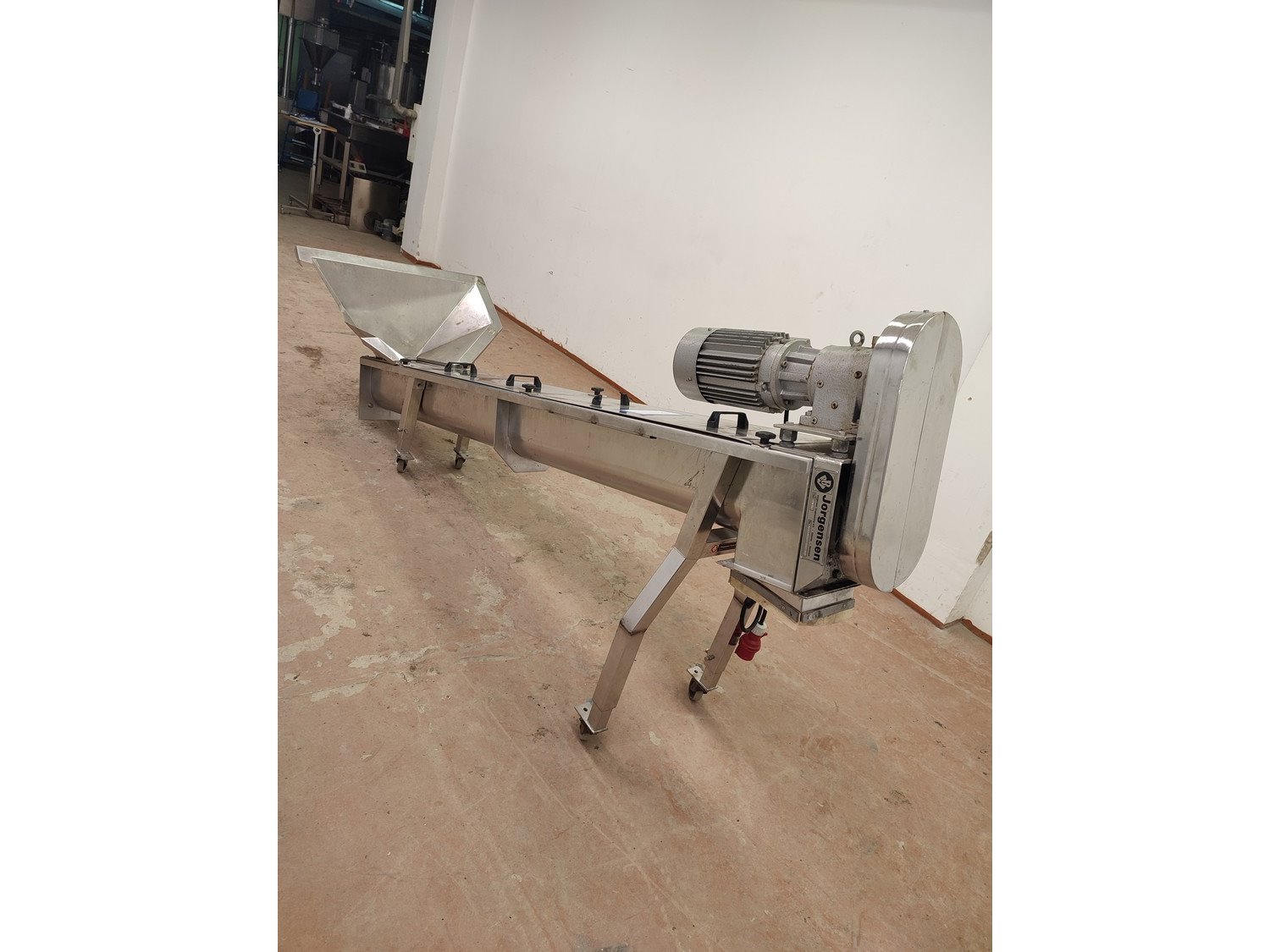 Jorgense mobile elevating screw, number: 60850/2 282 01, s/s screw, screw diameter: 200 mm, total dimensions: 2800 mm x 880 mm x 1430 mm.