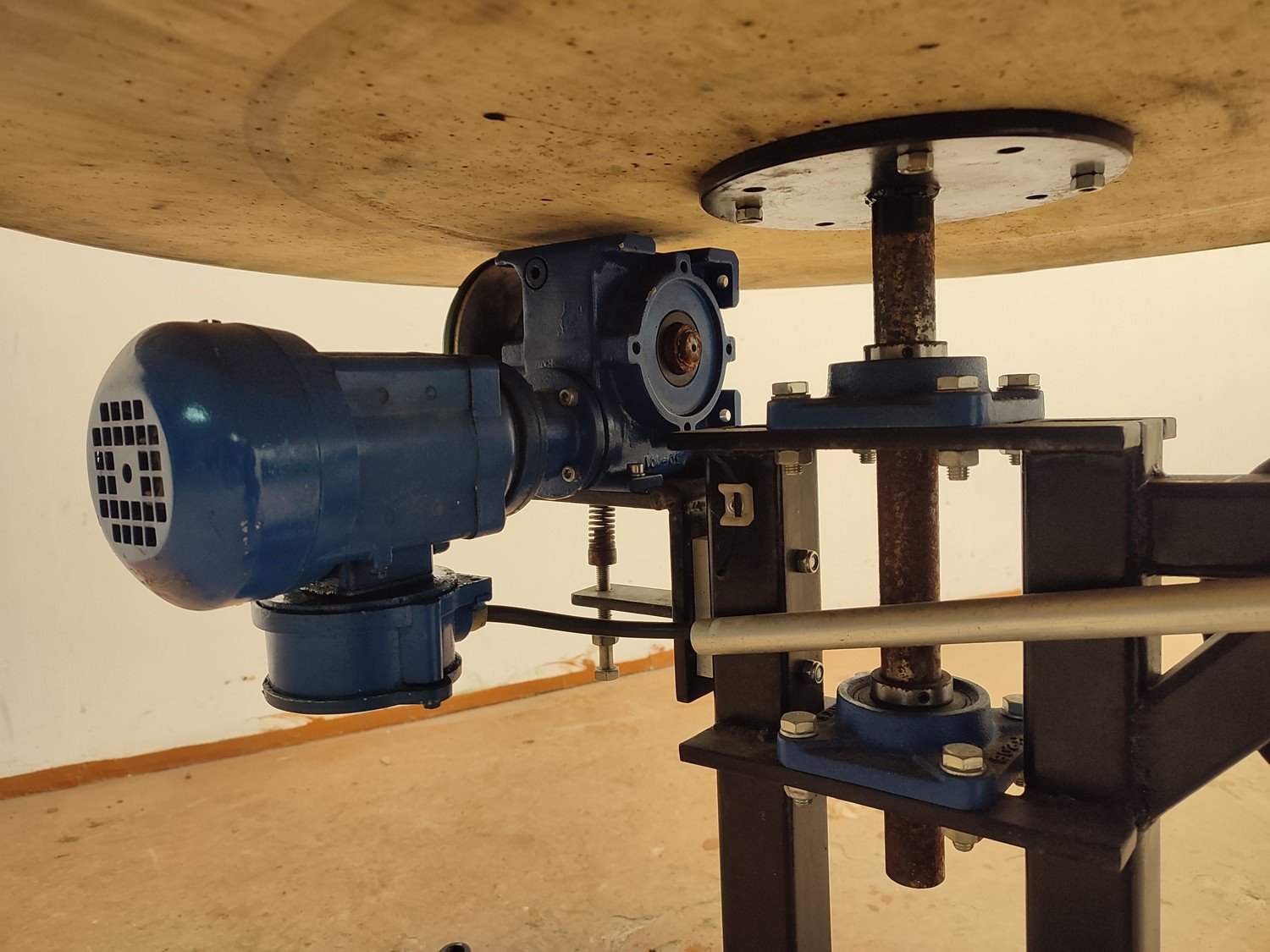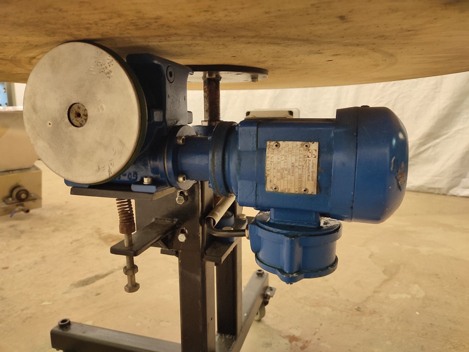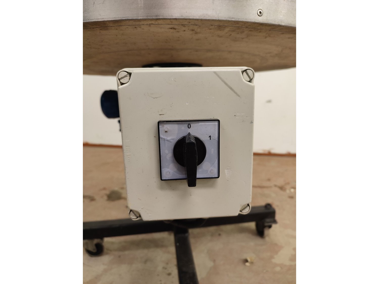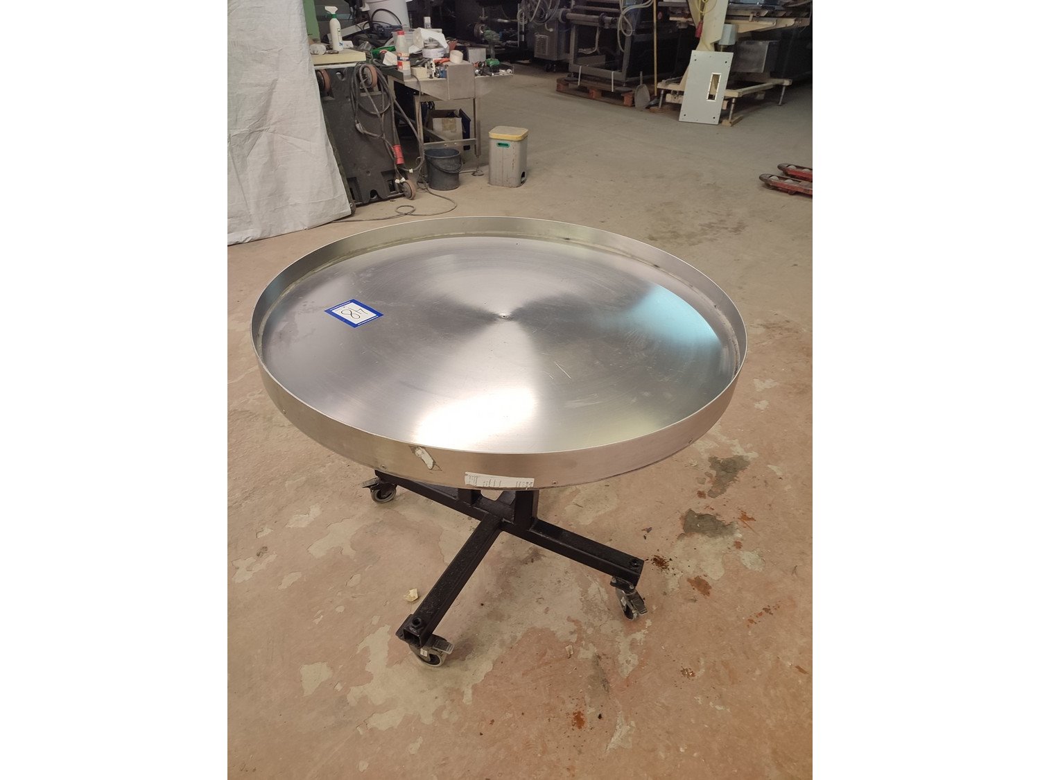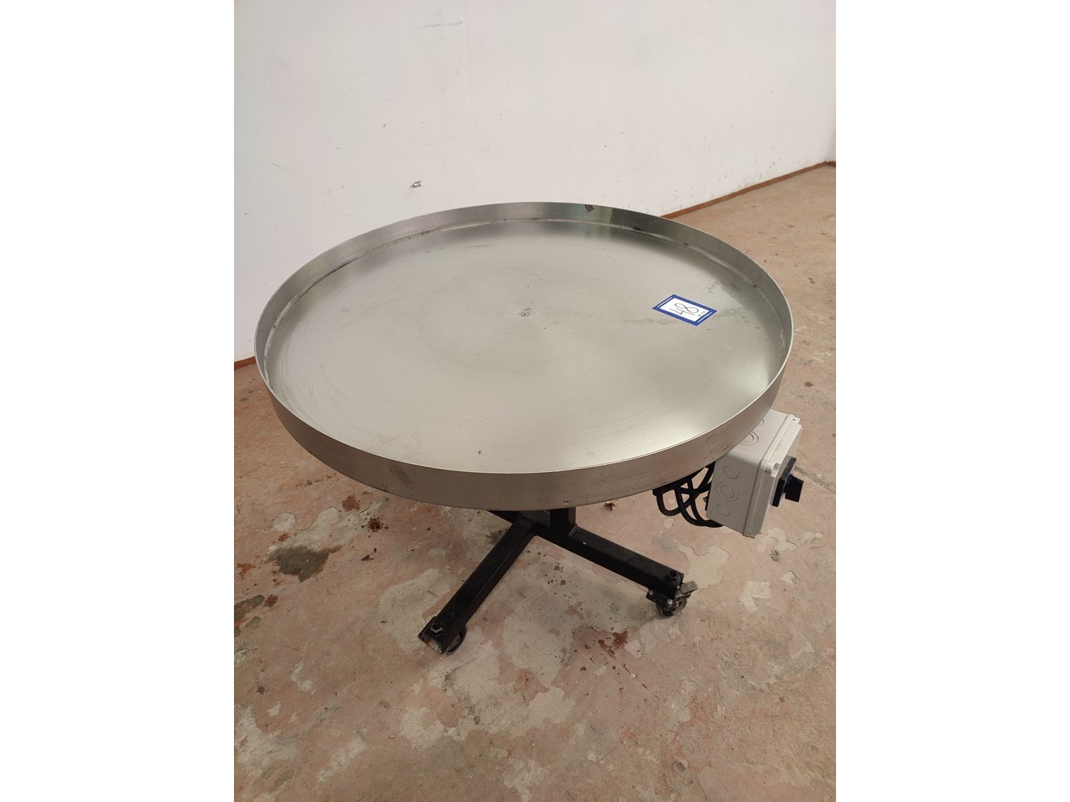 S/s turning table, diameter top: 950 mm, total dimensions: 950 mm x 1050 mm x 775 mm.