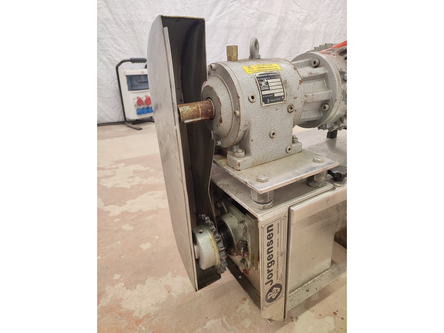 Jorgense elevating screw, number: 60850/1 282-01, year of construction: 1989, s/s screw, screw diameter: 200 mm, total dimensions: 2900 mm x 900 mm x 950 mm. Incomplete.