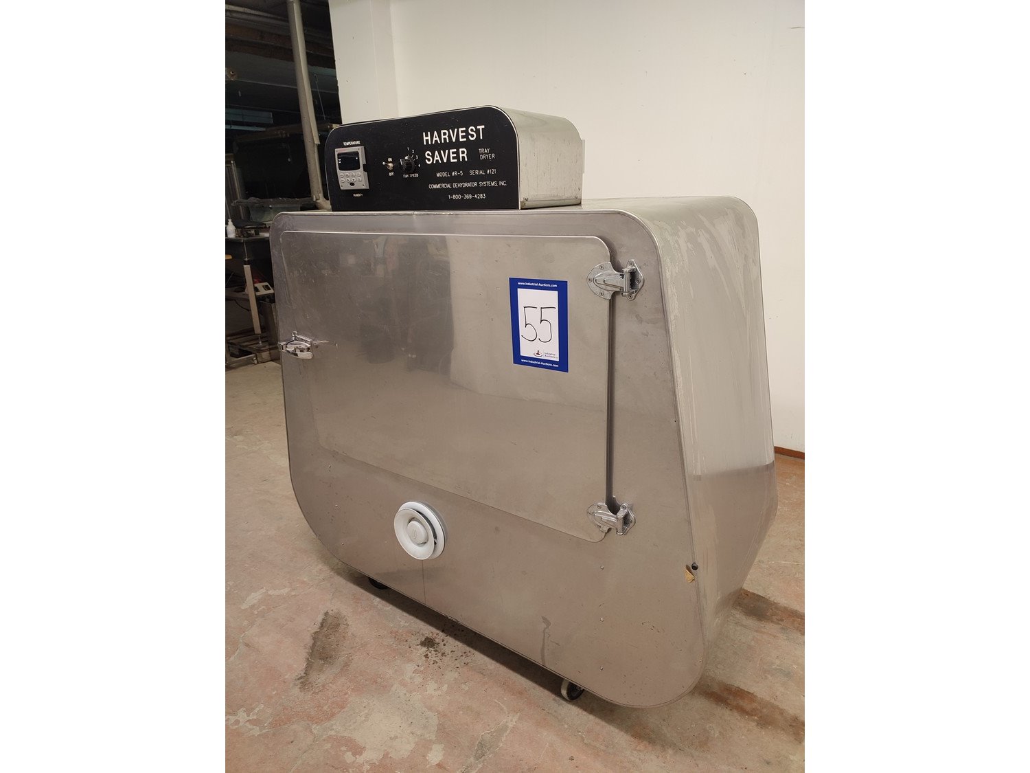 Harvest Saver tray dryer, model: #R-5, serial number: #121, 15 floors, floor dimensions: 980 mm x 610 mm x 45 mm, total dimensions: 1530 mm x 850 mm x 1550 mm.