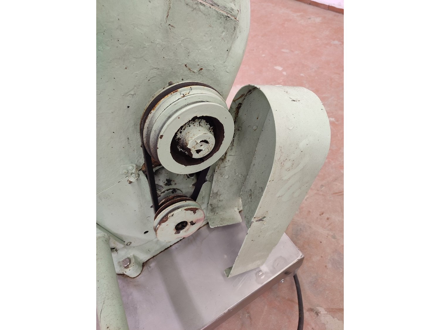 Dragex 4 coating pan, inside dimensions: Ø 900 mm x 450 mm, total dimensions: 1200 mm x 1100 mm x 1750 mm.